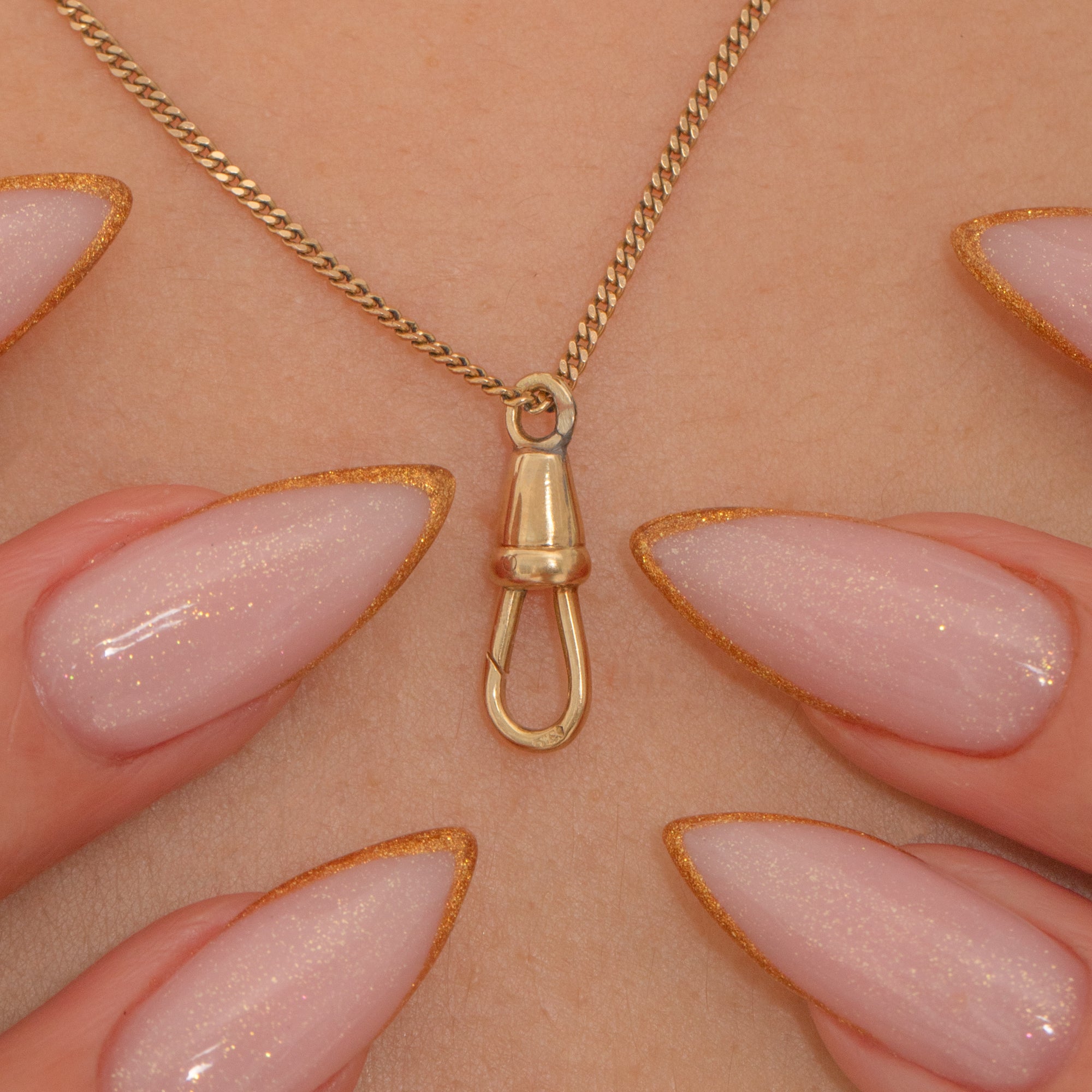 This late Art Deco 14ct Gold dog clip is a refined example of 1930s craftsmanship. Simple, elegant and beautifully engineered, it’s ideal for attaching pendants, fobs or charms to your favourite chain.