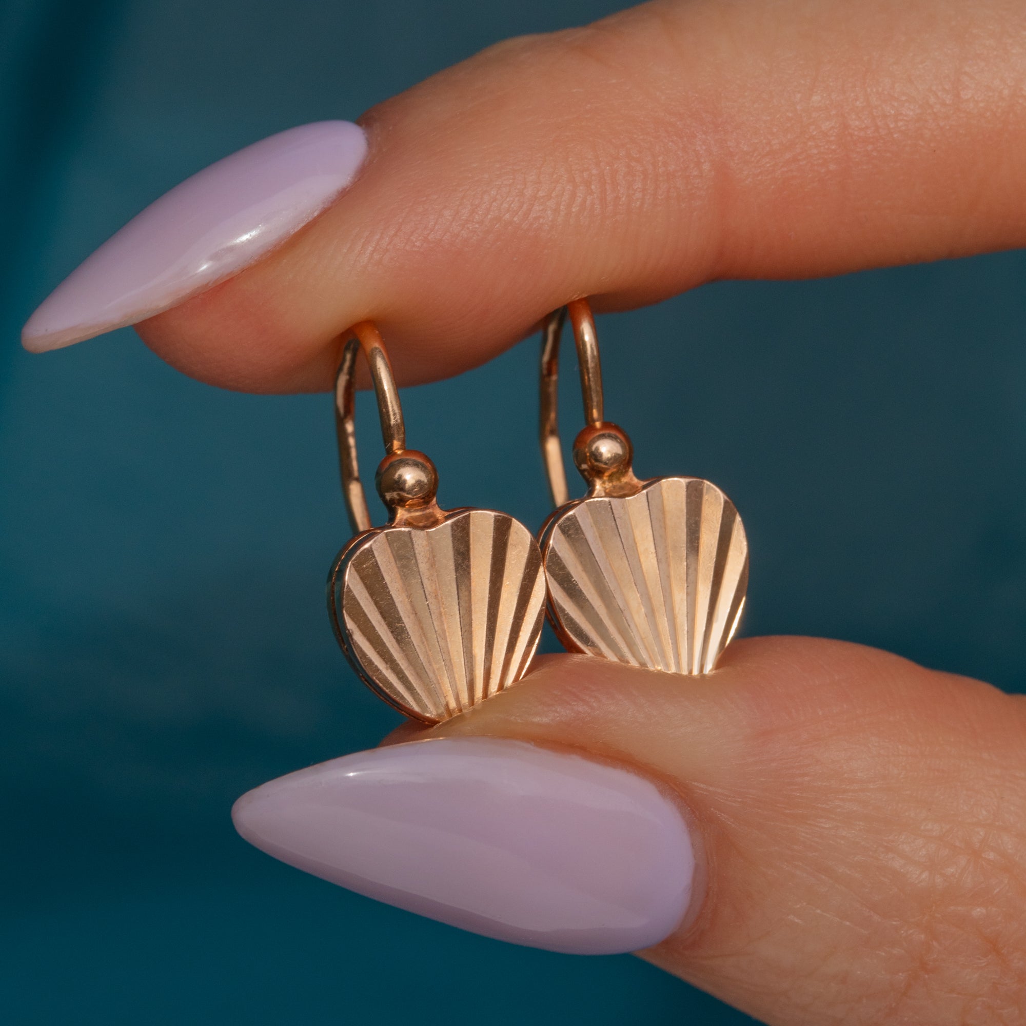 If you're looking for the perfect pair for daily wear, then look no further than these cute 14ct Gold heart Dormeuse earrings! Crafted from solid 14ct Gold, each heart boasts striking ridged details that catch the light beautifully.