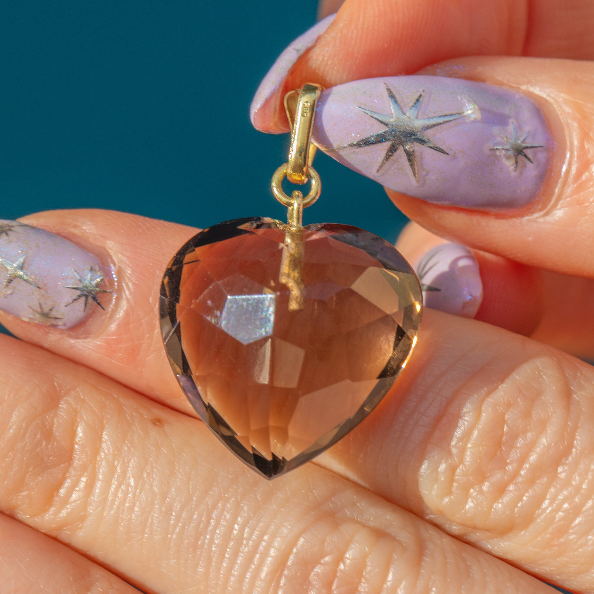 If you're looking for the perfect love token, this 14ct Gold Smokey Quartz heart pendant would make a superb choice! The 24.43ct Quartz has been exquisitely faceted and glimmers with sultry caramel hues as it catches the light.