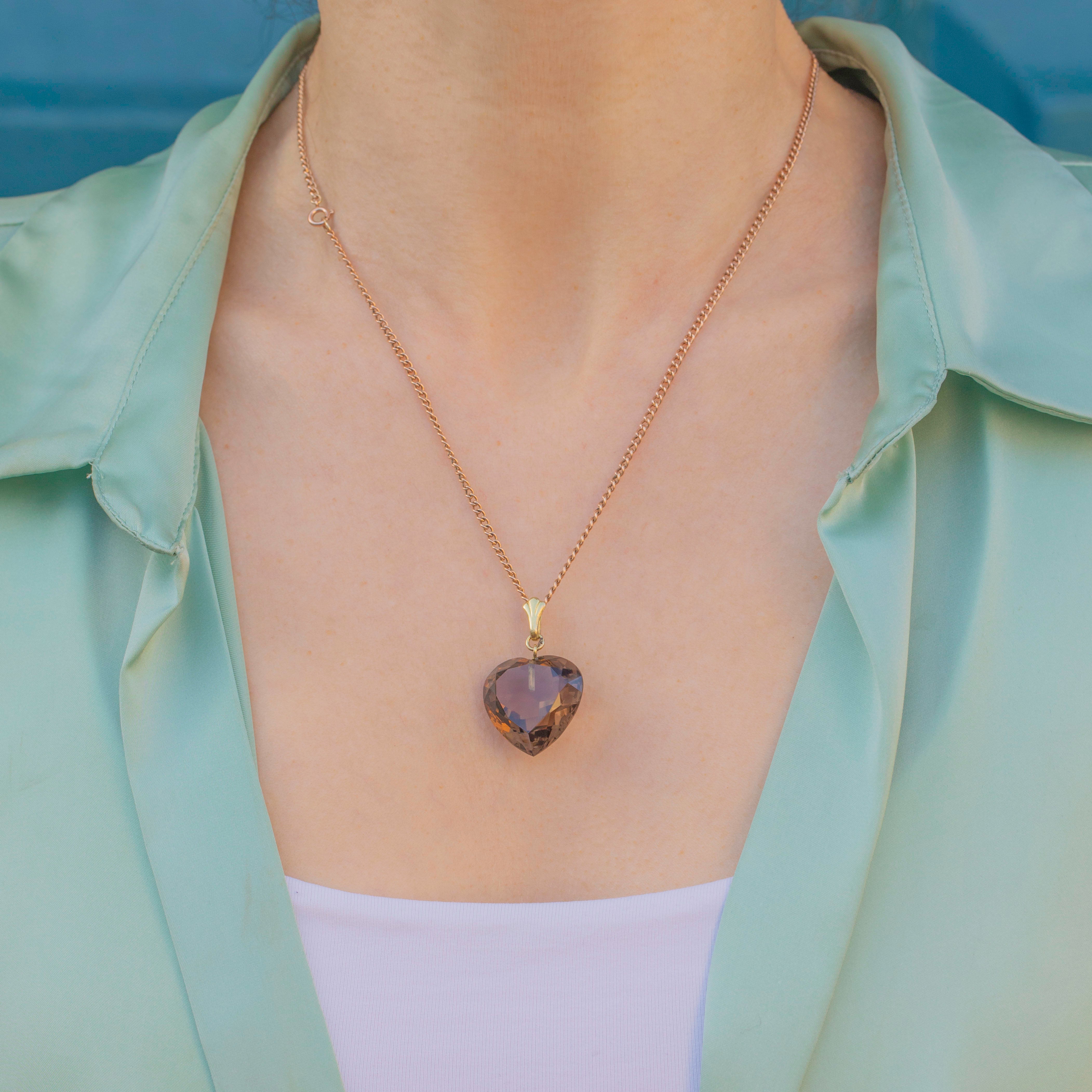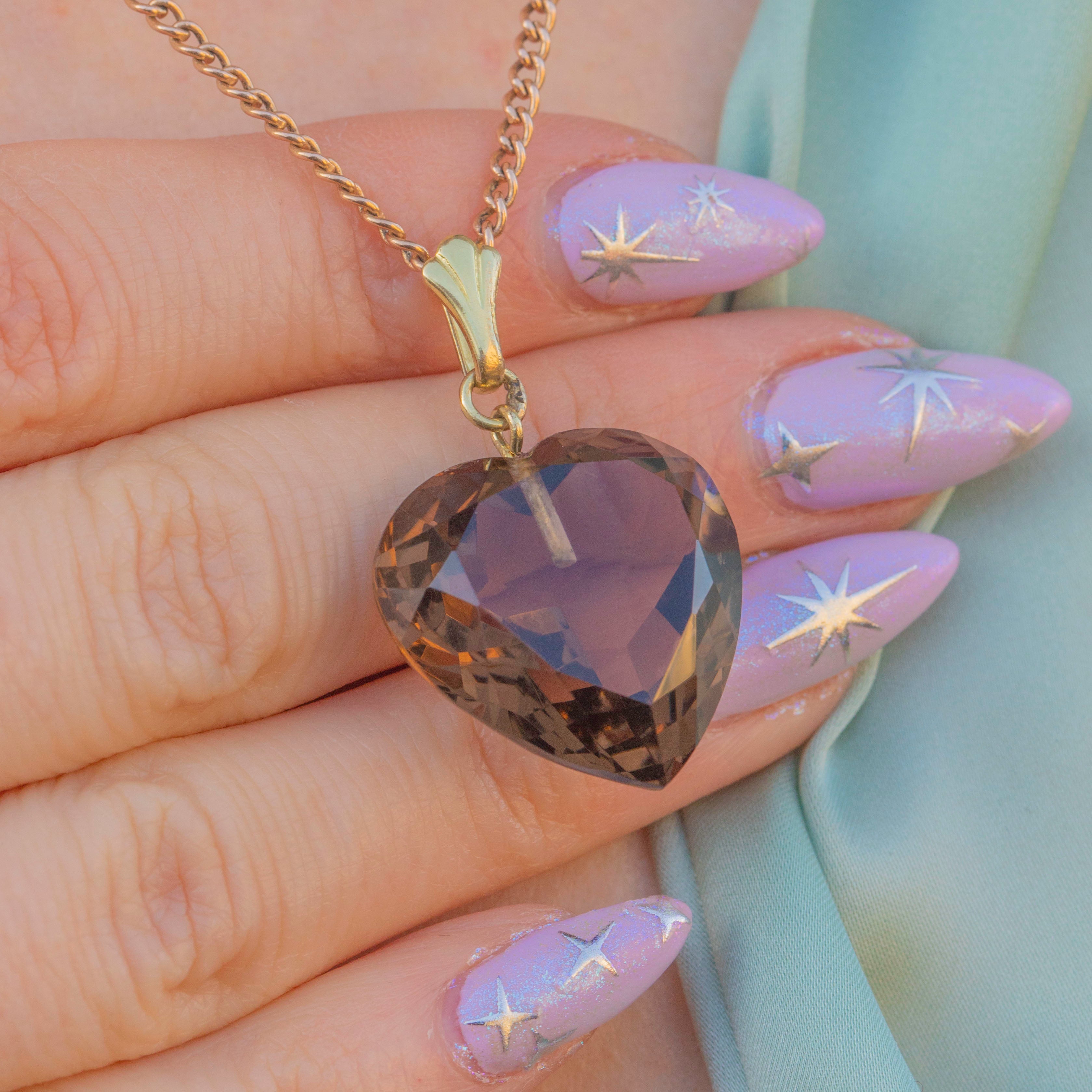 The heart-shaped Smokey Quartz is suspended from a buttery 14ct Gold fan-shaped bale creating an elegant colour combination that exudes luxury. This vintage heart pendant will inject some mid-century glamour into your collection!