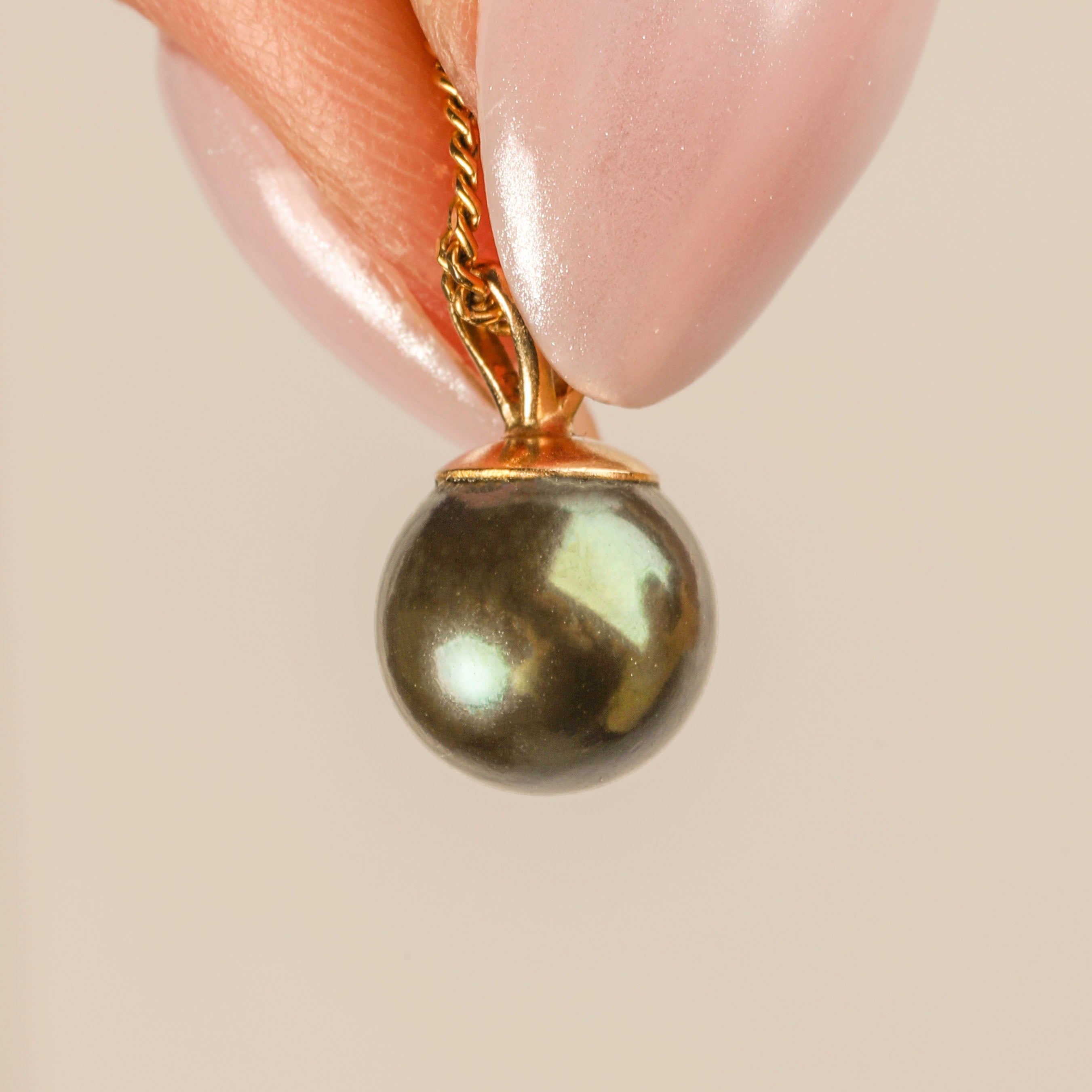 EXCELLENT. We are pleased to present that this 14ct Gold Tahitian Pearl charm pendant is in excellent condition. The black Tahitian Pearl is in superb condition, with only minor scuffs which are unnoticeable when worn. She is beautifully crafted, with the Pearl securely attached to the bale, allowing for a confident wear.