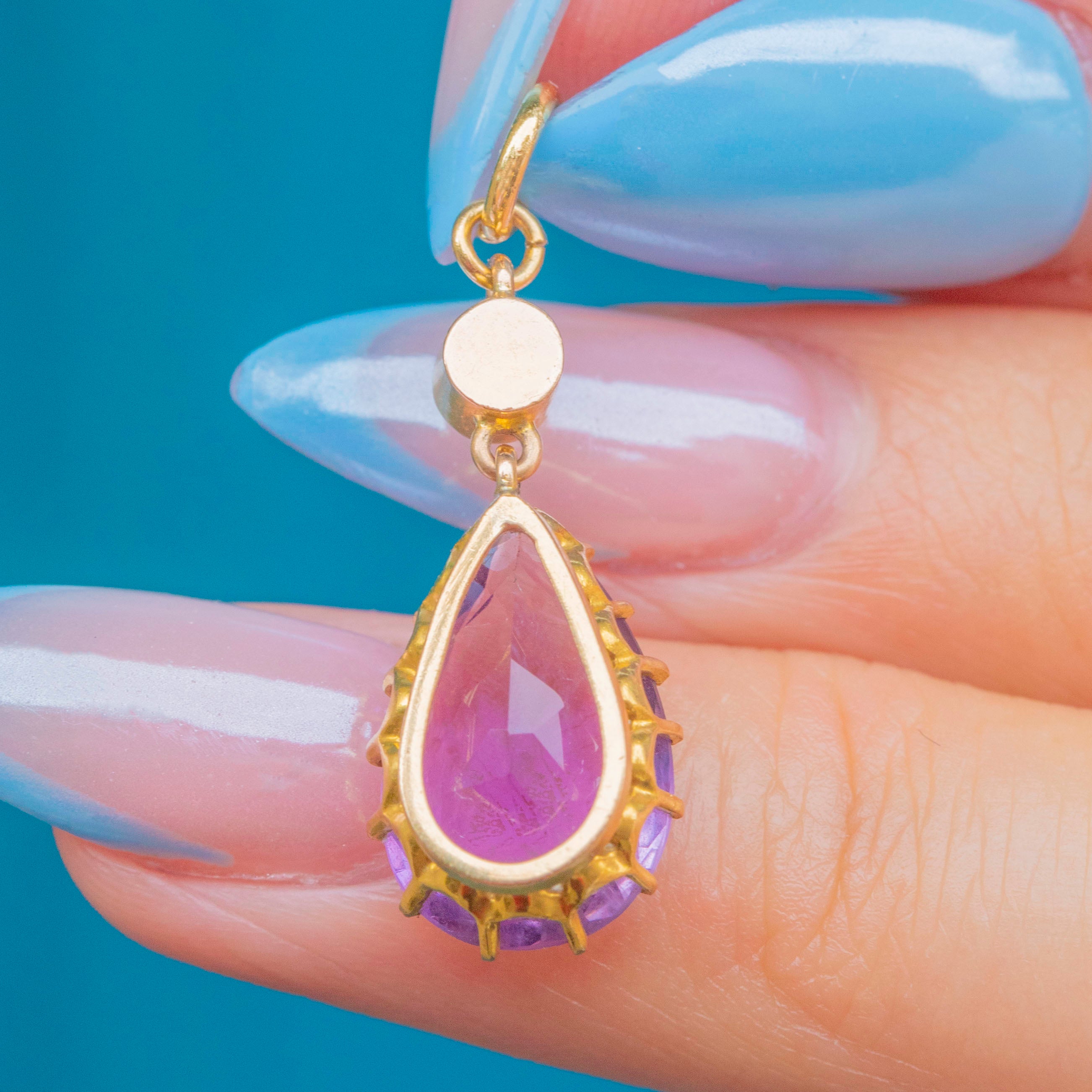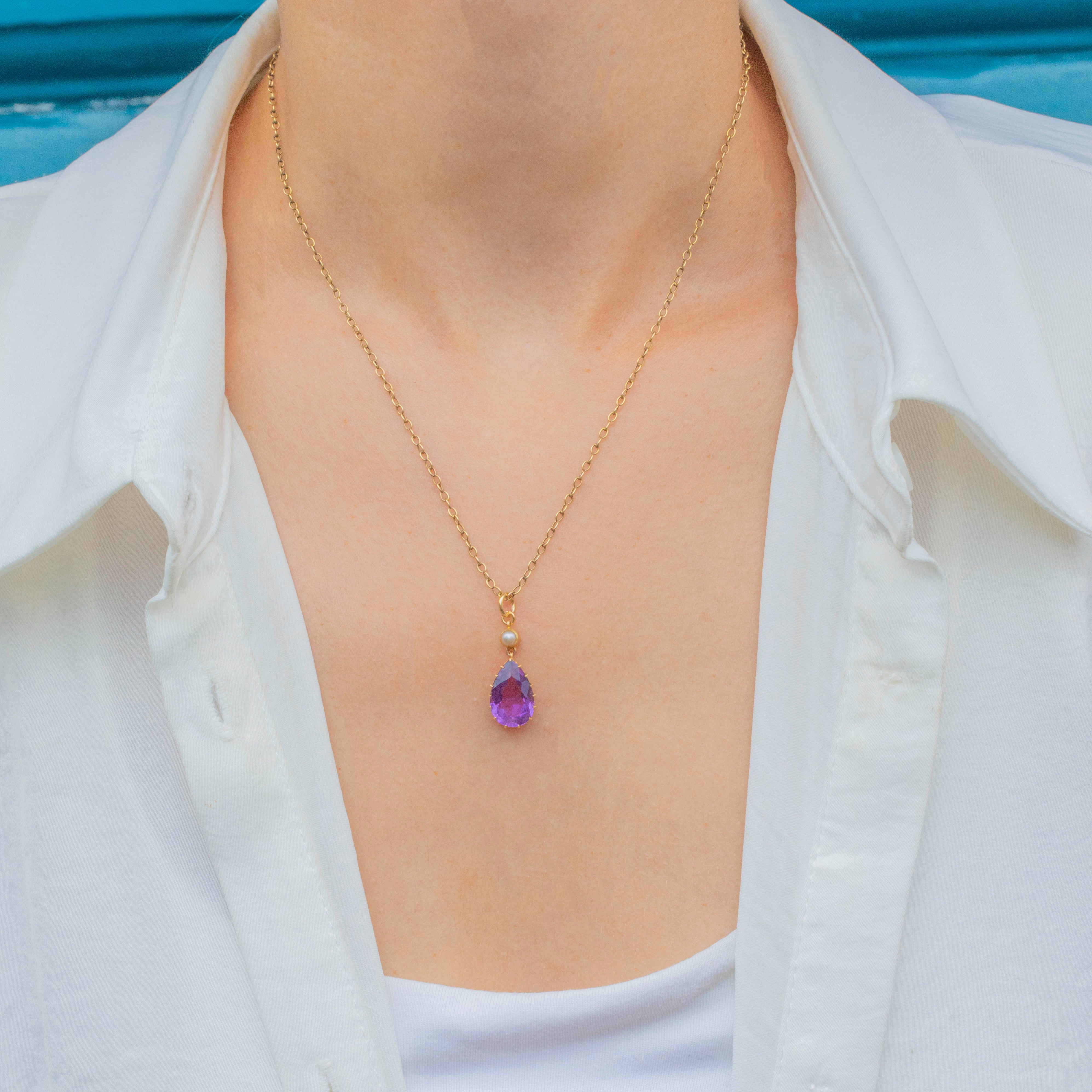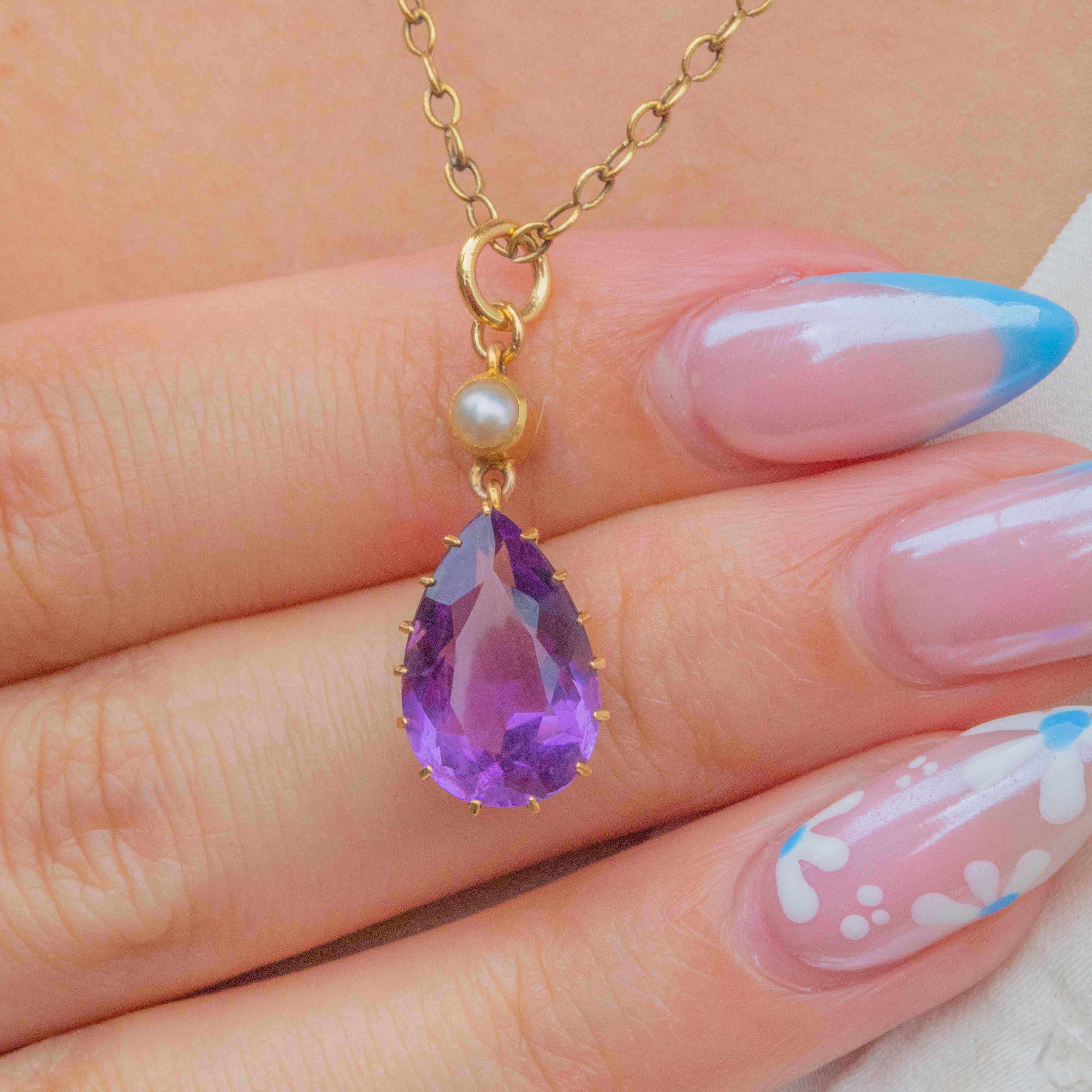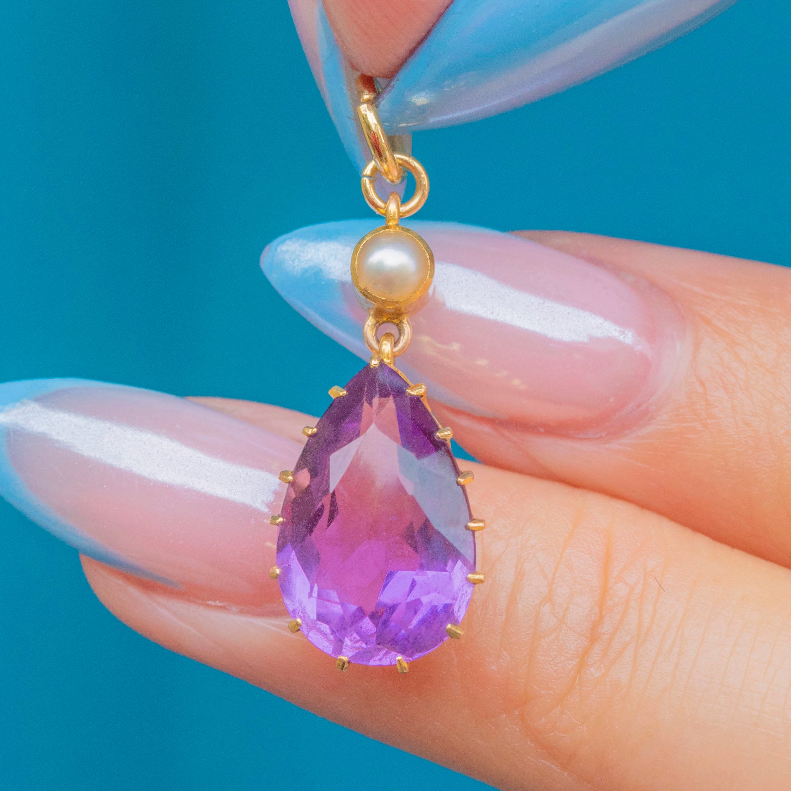 15ct Gold Pear Drop Amethyst Pendant with Pearl