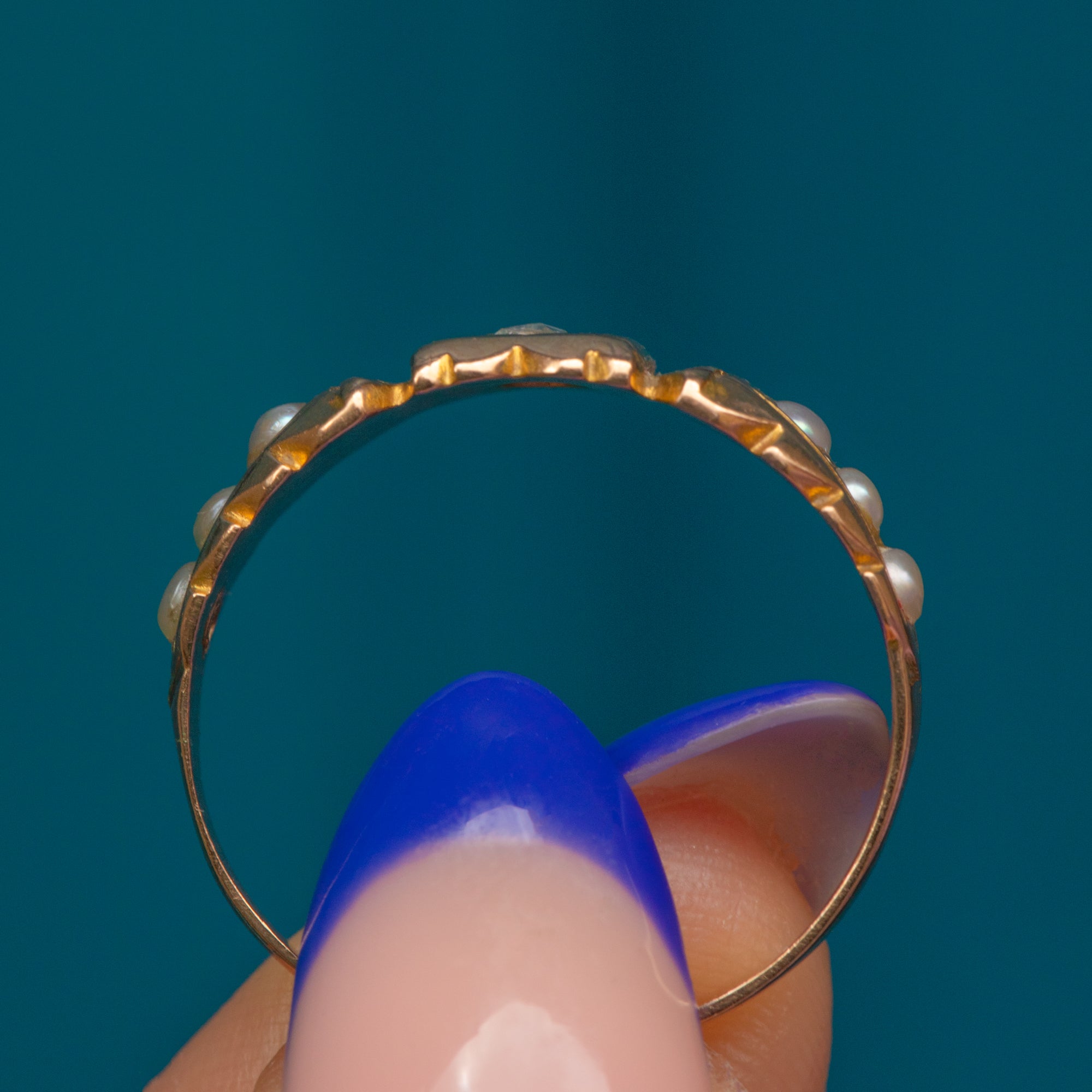 15ct Gold Rose-Cut Diamond Pearl Gypsy Ring, c.1894