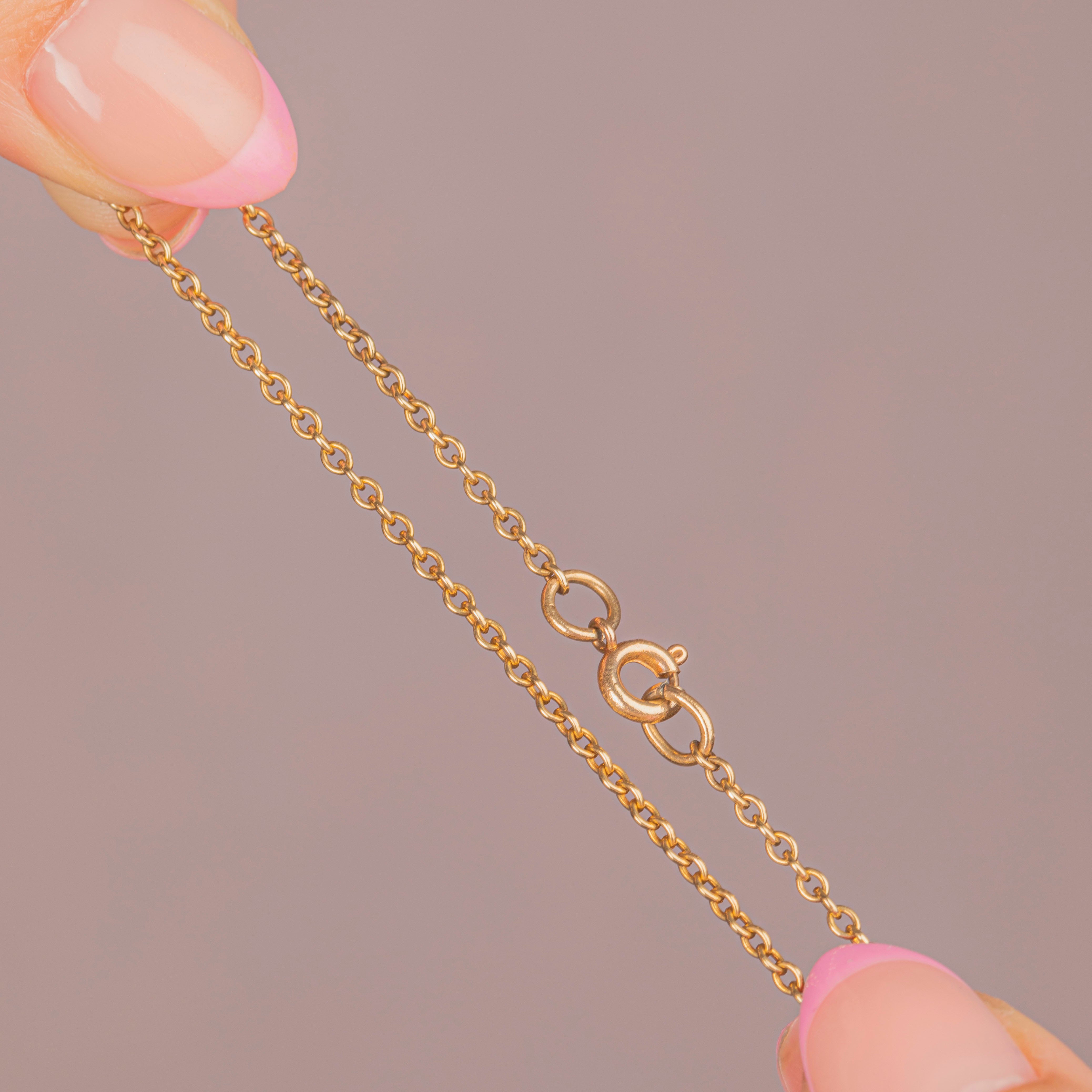 EXCELLENT- This 16" 9ct Gold pendant chain is, dare we say, verging on perfect. The piece has minimal wear to note, and closes securely with a bolt ring! The links are secure and the Gold is bright and buttery. There is little else to say other than you need her in your collection!