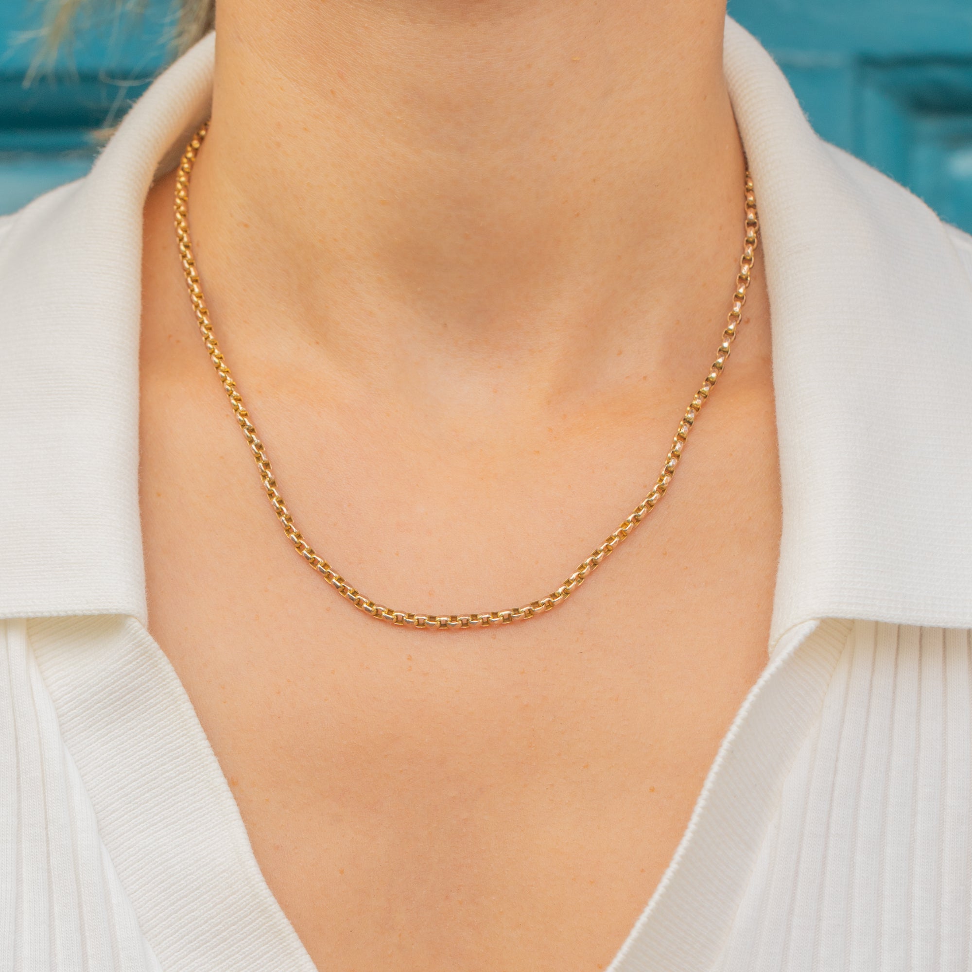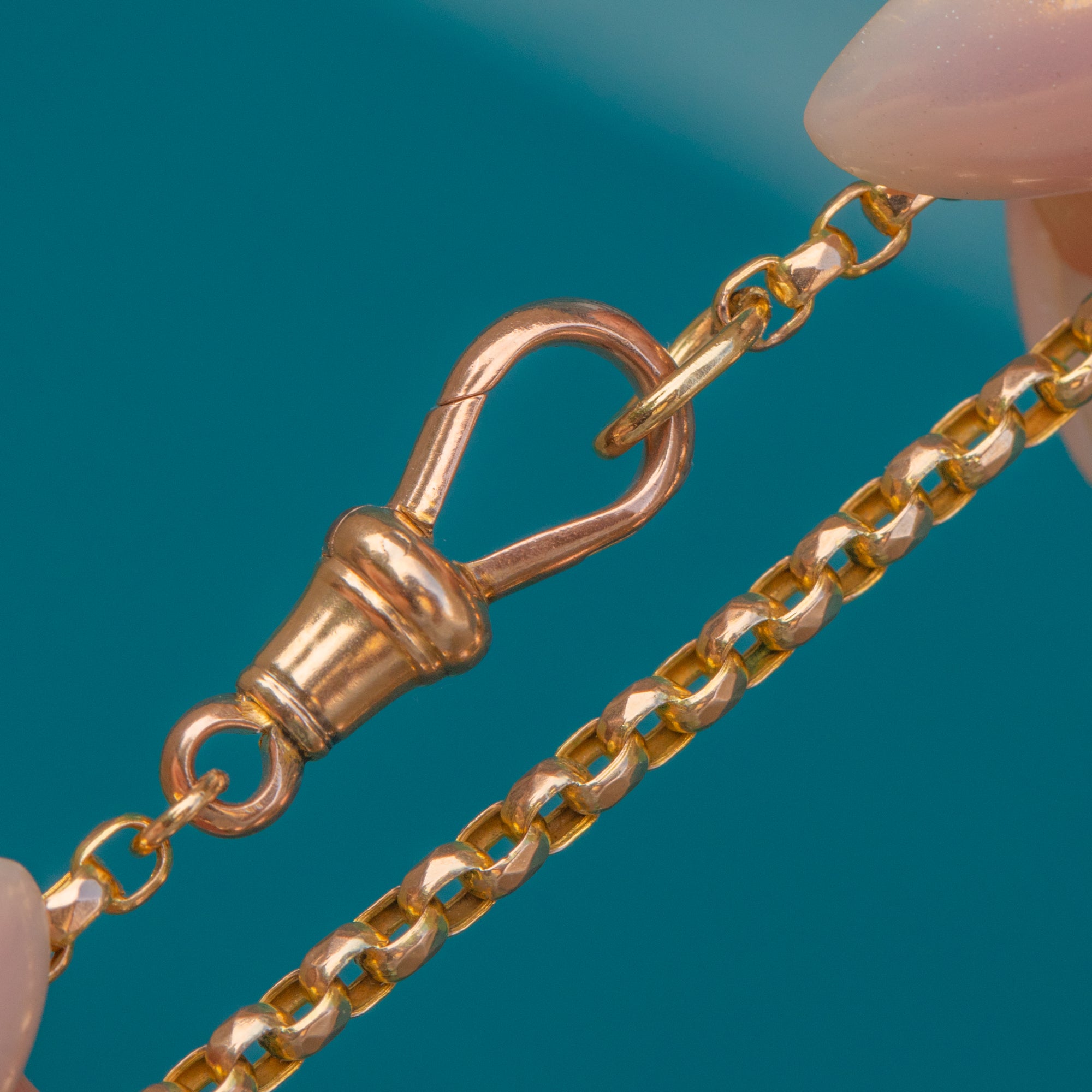 A beautiful antique 9ct Gold belcher chain from the Victorian era, fitted with its original dog-clip clasp. The rounded links are crafted in rich Gold, giving this chain a warm and luxurious tone.