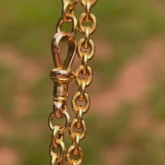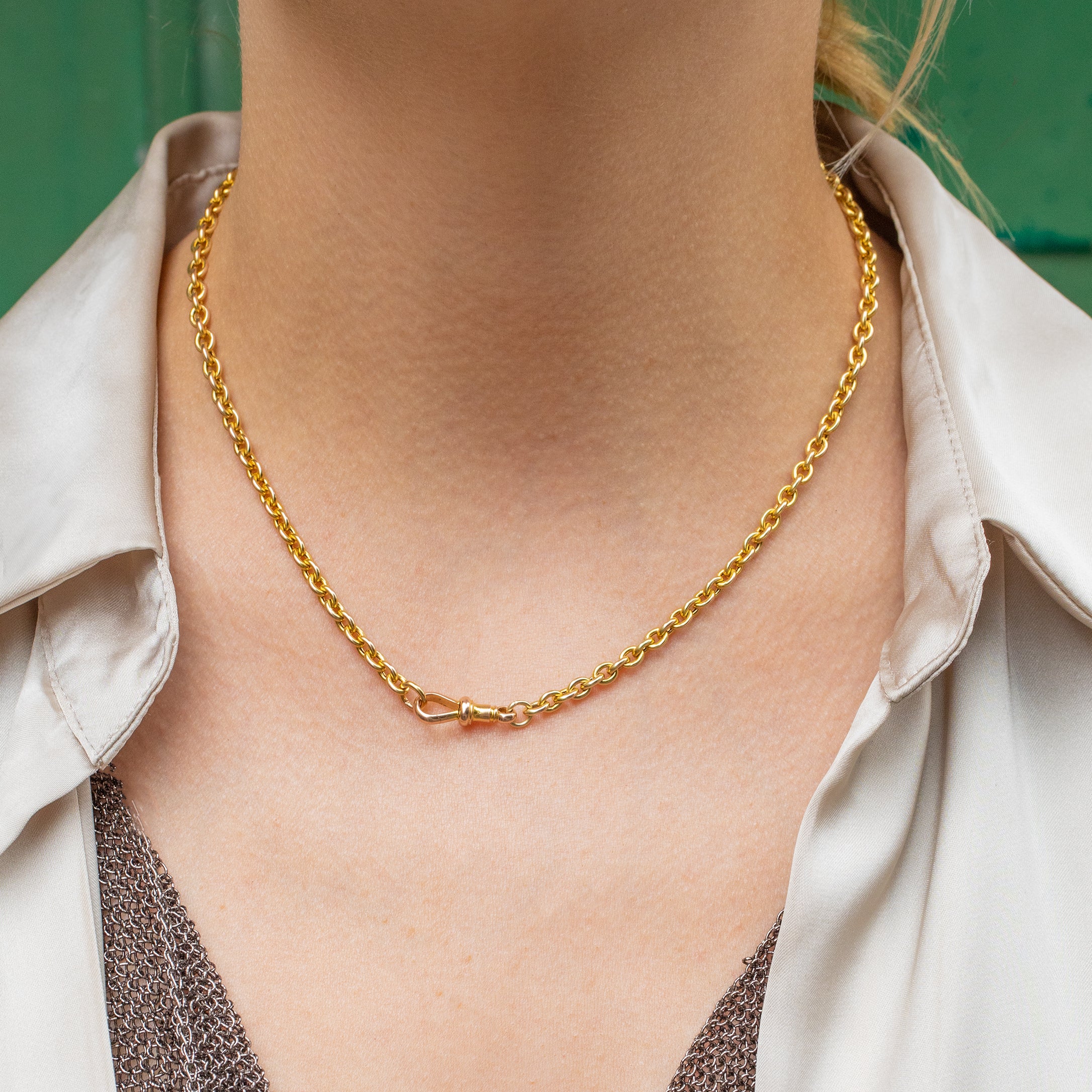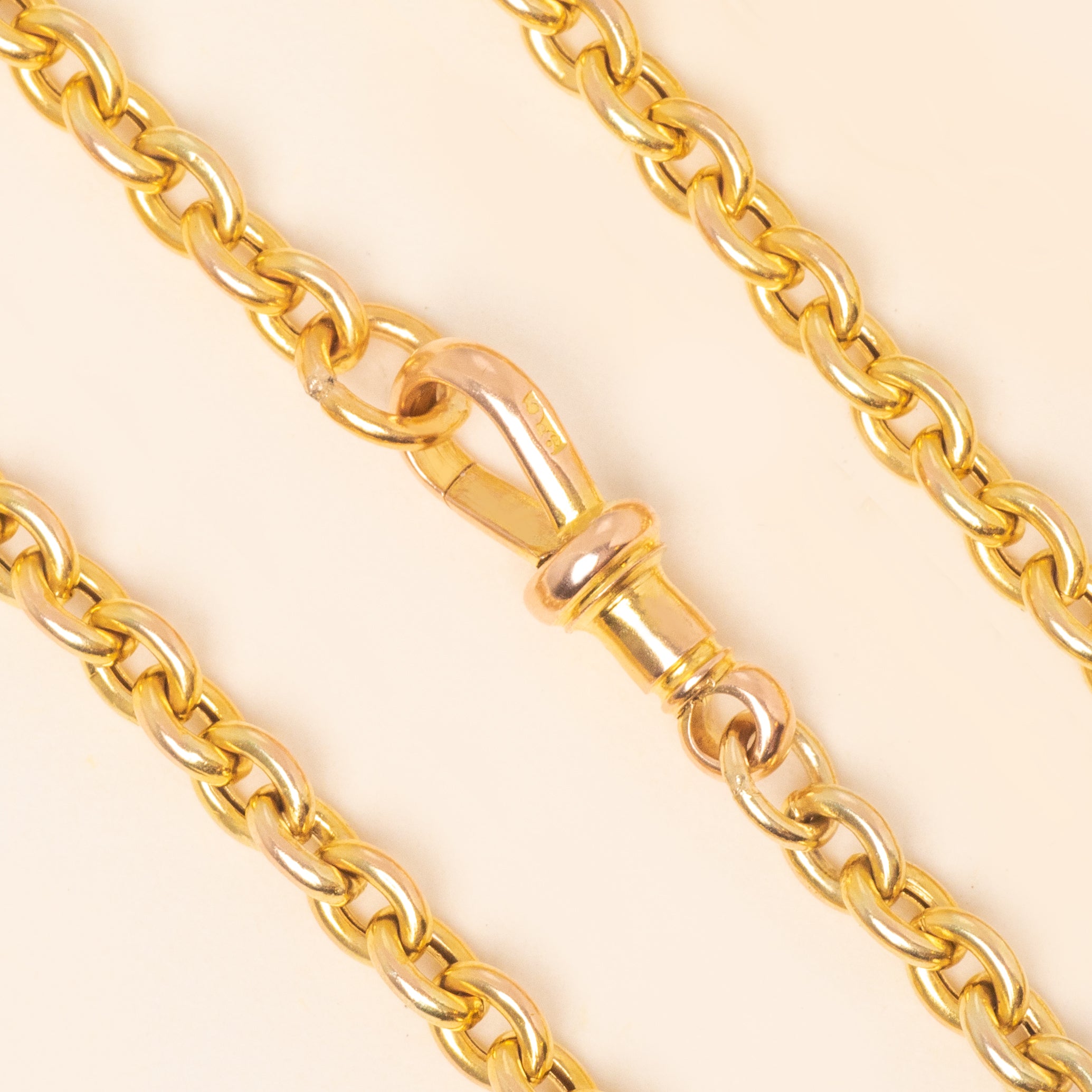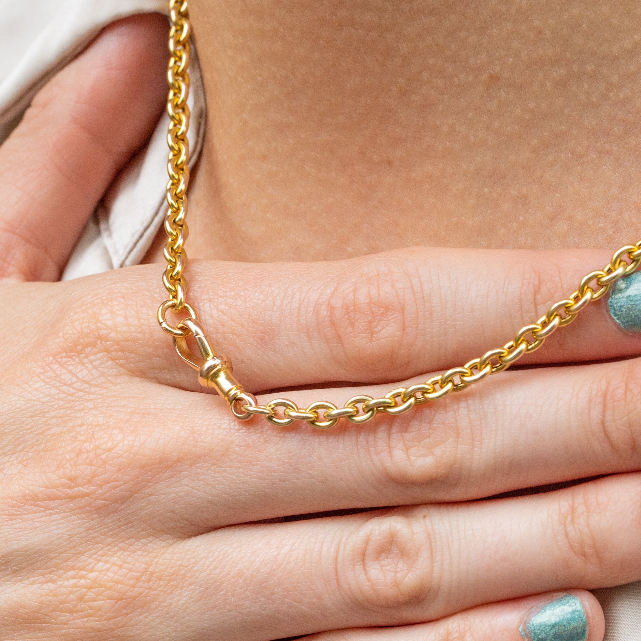 EXCELLENT: This 16" antique 9ct Gold chunky belcher chain is in excellent condition throughout. The tone of the 9ct Gold is sublime, a sought-after resplendent shade of Yellow Gold that will glow with every outfit. Additionally, the 9ct Gold dog-clip ring is in perfect working condition allowing you to wear it with utmost confidence!