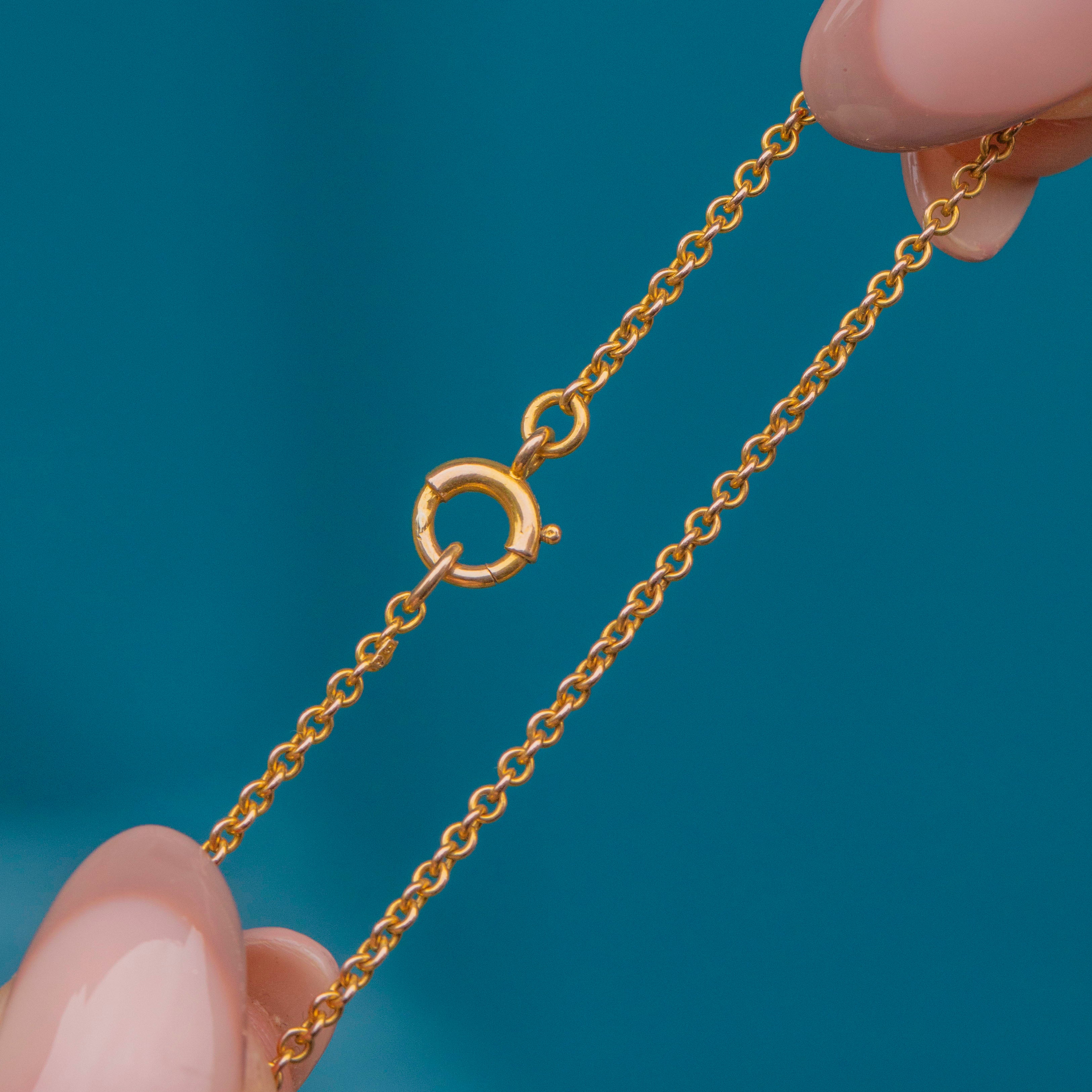EXCELLENT. This 17.5" antique 9ct Gold pendant chain is in wonderful condition. Her links and uniform and secure, and her original bolt-ring fully functioning allowing you to wear the chain confidently. With little wear to note, she is in excellent condition!