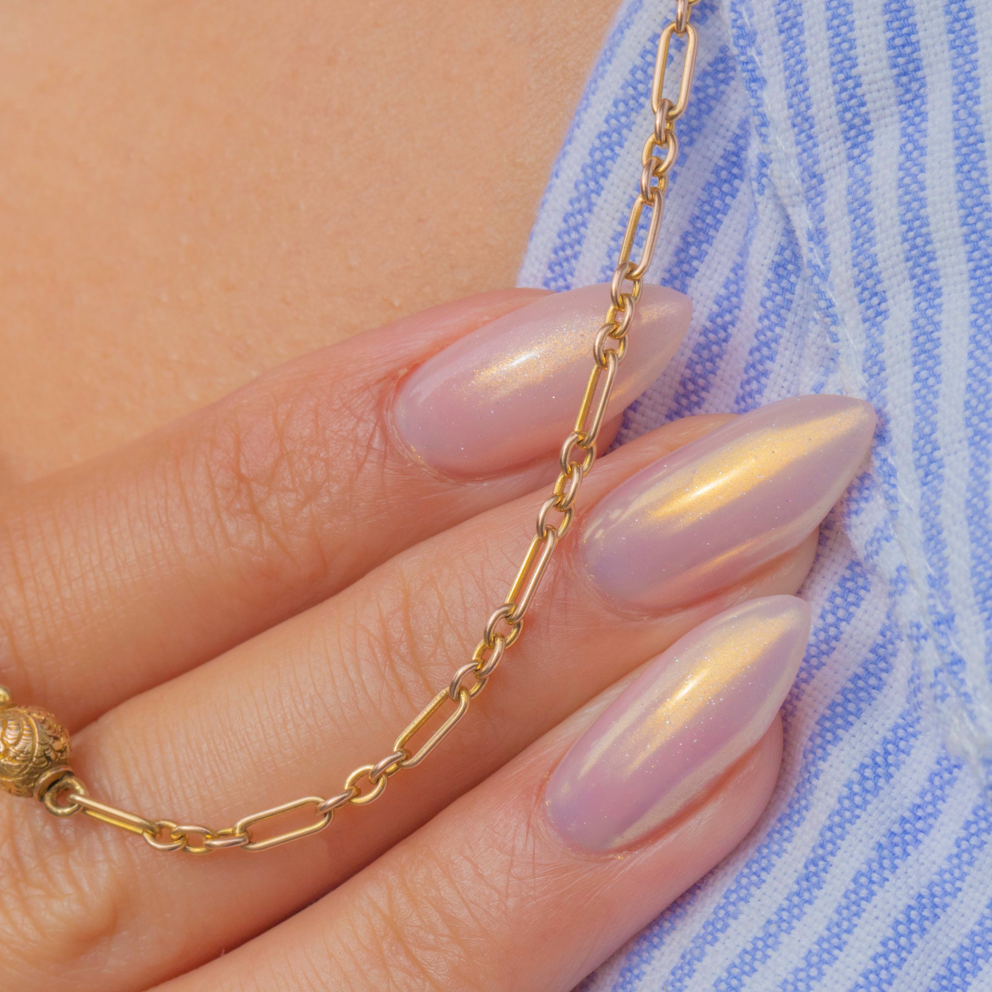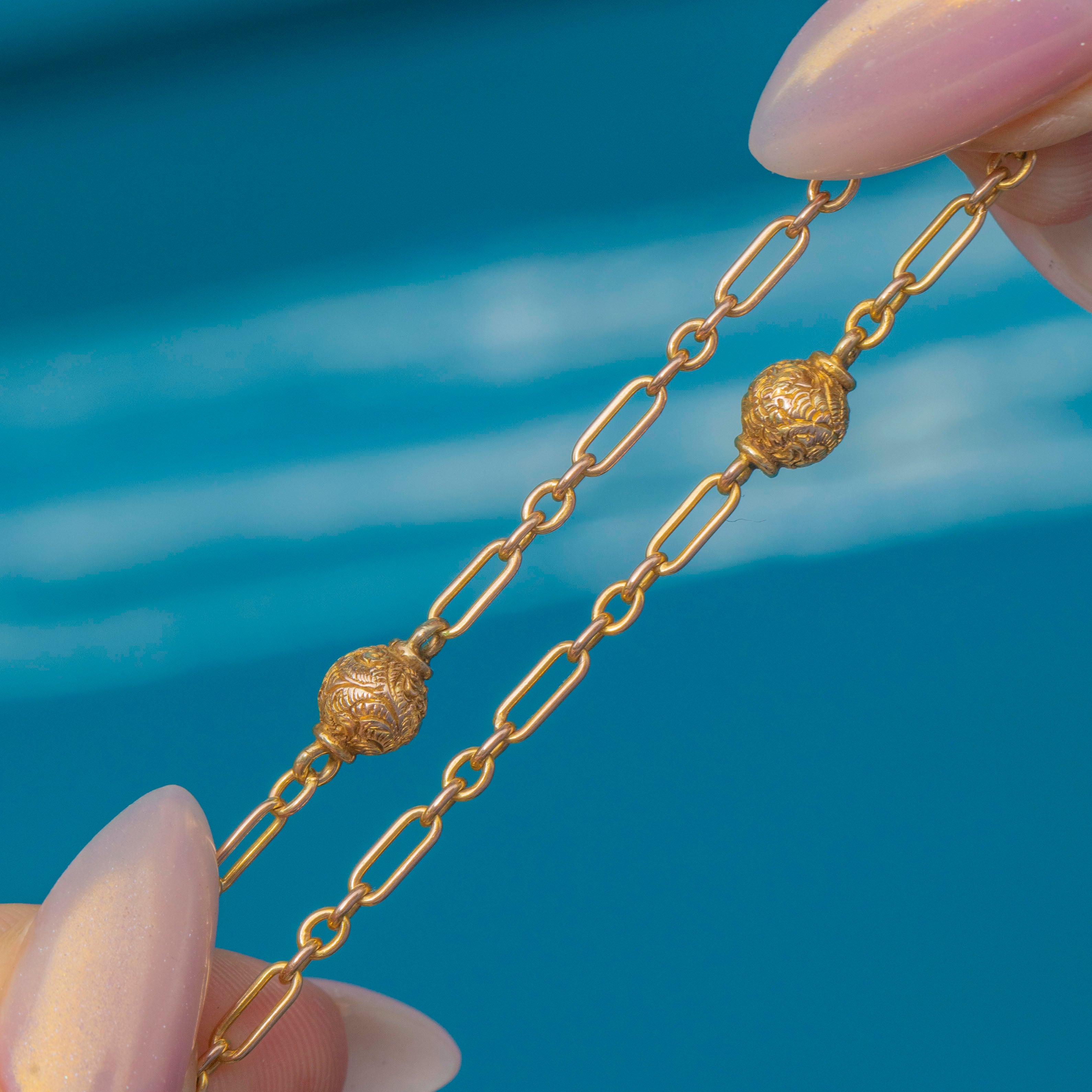 16.5" Antique 9ct Gold Mini Trombone Link Chain Orb Details