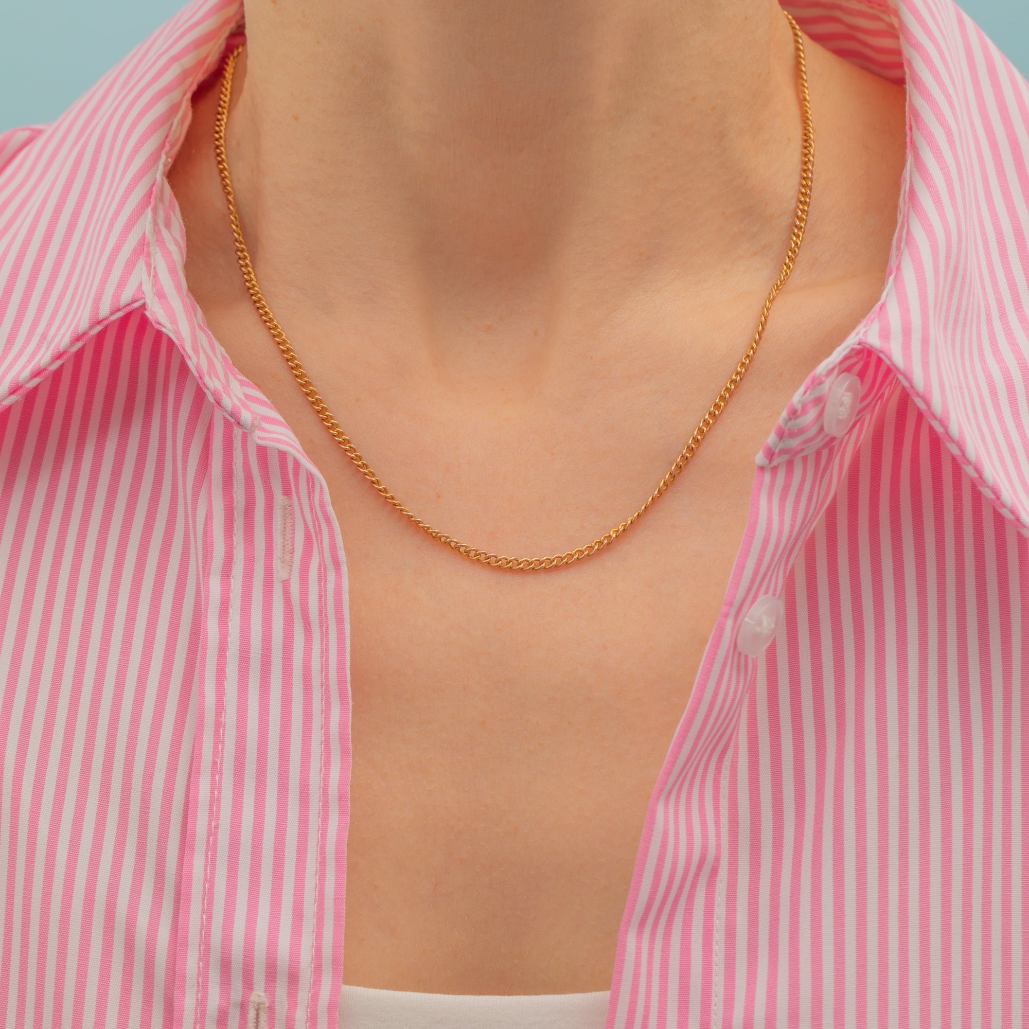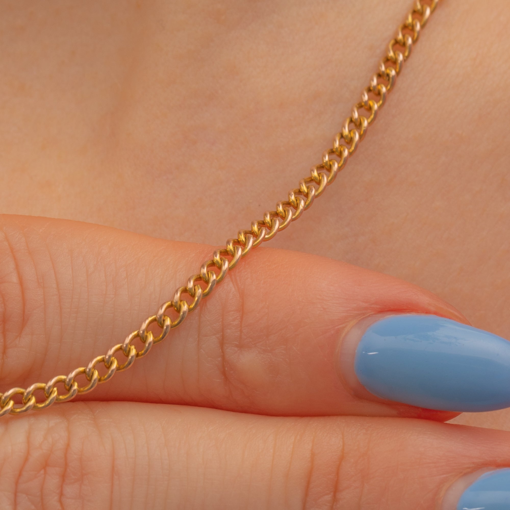This 17" antique 9ct Gold curb chain is soon to become your new go-to piece! At 17" in length and crafted from sun-kissed 9ct Gold, she is the perfect versatile piece for suspending charms and pendants, or for layering in a chain mess.