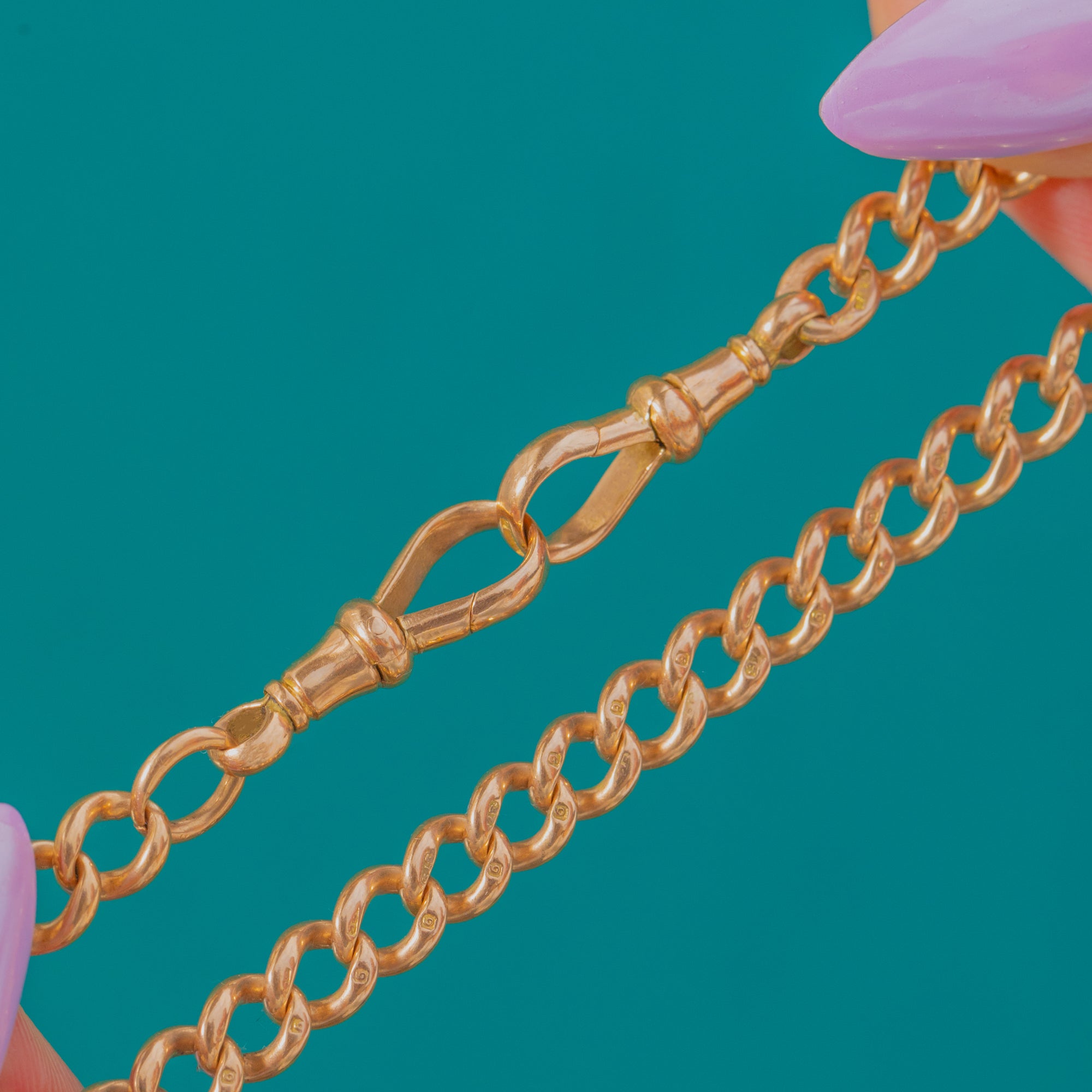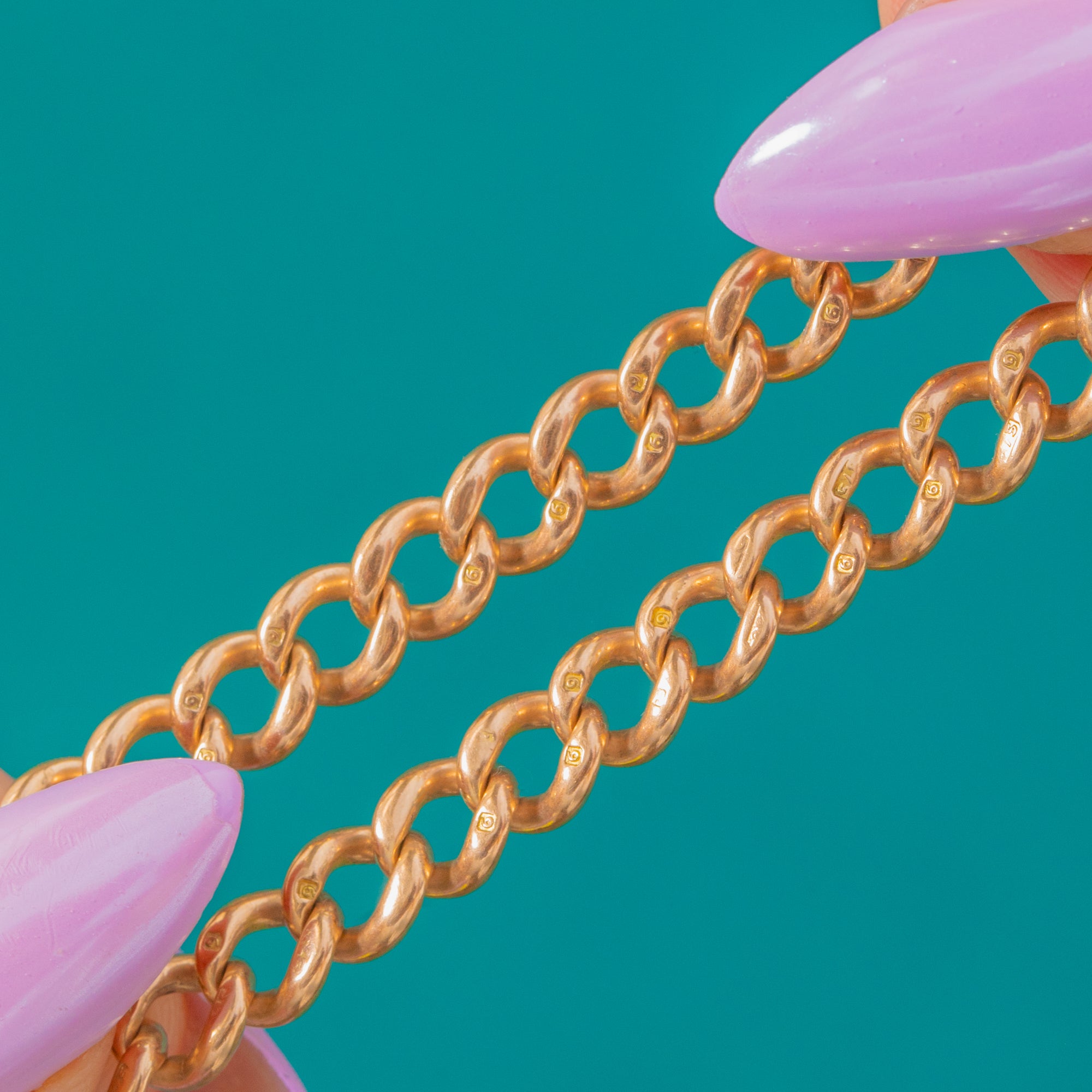 Weighing an impressive 38.7g, it feels wonderfully substantial in the hand and on the neck. Each link and the clips are stamped 9 375, affirming its quality. A superb statement of Victorian refinement that layers effortlessly into a modern wardrobe.