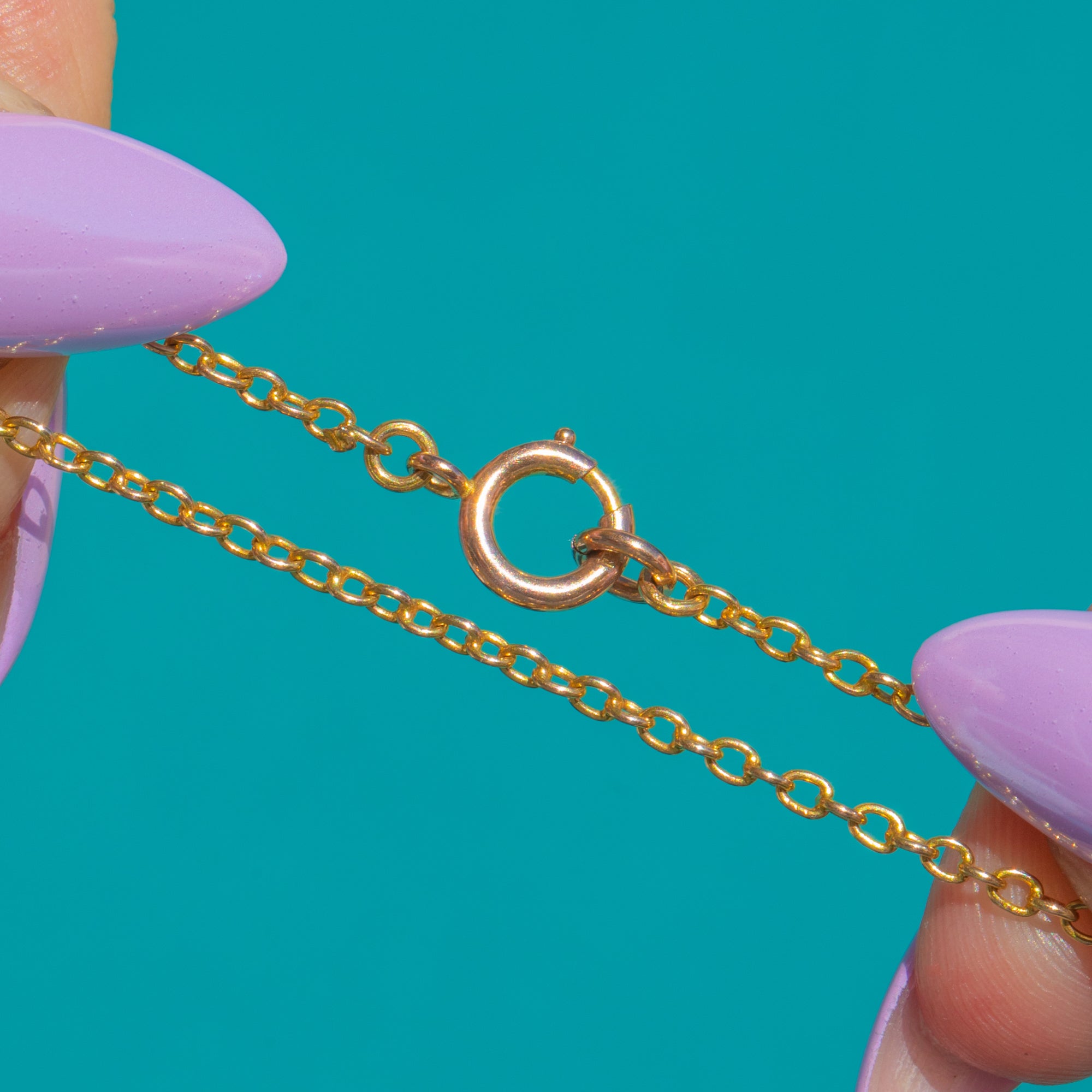 Understated and beautifully made, this Victorian 15ct Gold pendant chain is the perfect everyday luxury. Its fine trace links drape fluidly with a bright polished glow, finished with a classic spring-ring clasp for that quintessential antique touch. Effortless worn solo and superb as a pendant-ready staple, it brings a warm, buttery hue to any look.