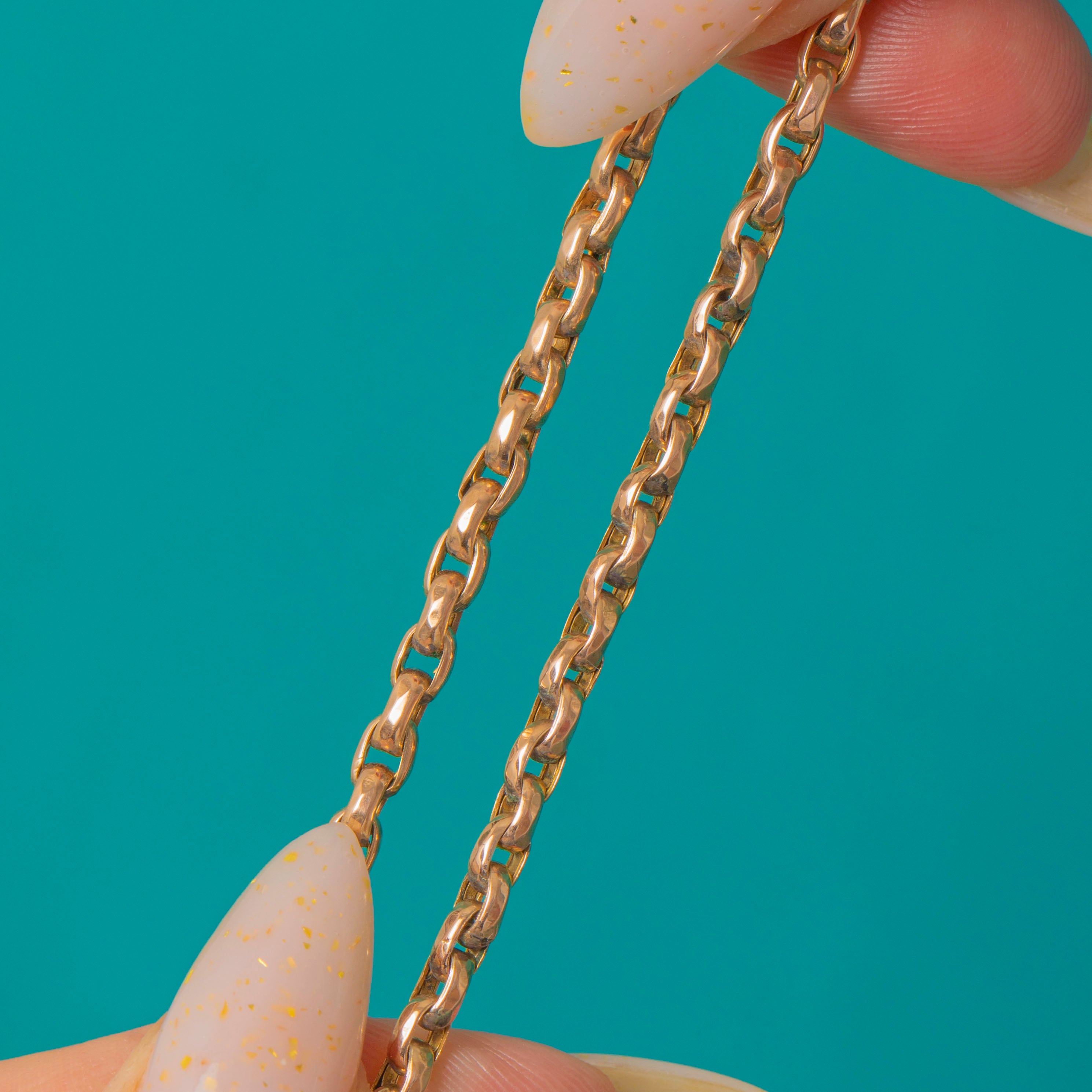 Understated and beautifully made, this Victorian 9ct Gold faceted oval Belcher chain is a timeless essential. Each oval link is subtly faceted to catch the light, creating a refined shimmer and polished glow that feels luxurious yet effortless. At 10.4g, it has a satisfyingly substantial drape and sits elegantly at the collarbone.