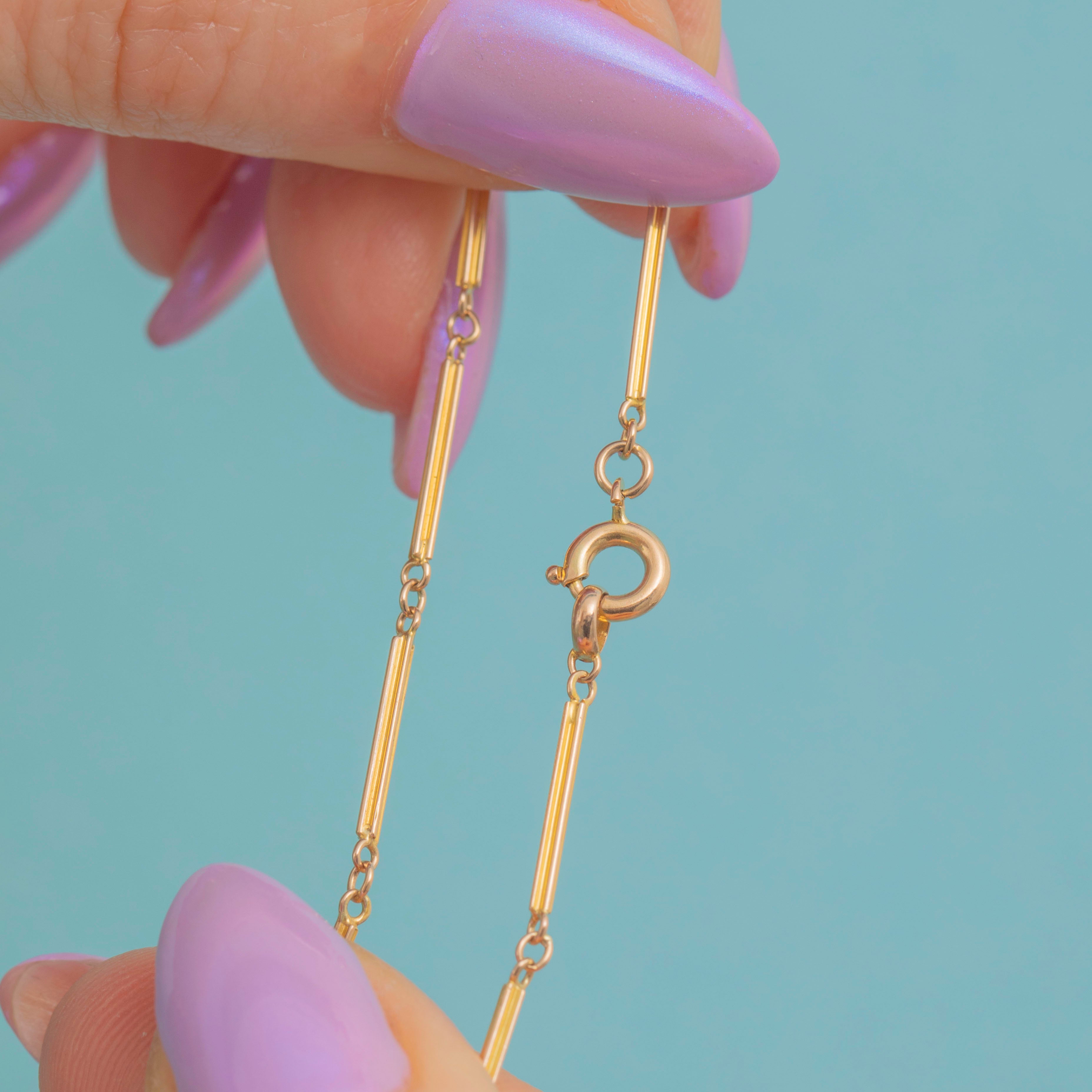 The 9ct Gold has a delicious warm tone, with a soft golden sunlight hue. This dainty Victorian chain is exactly what you need for a subtle addition of glamour for your outfit!