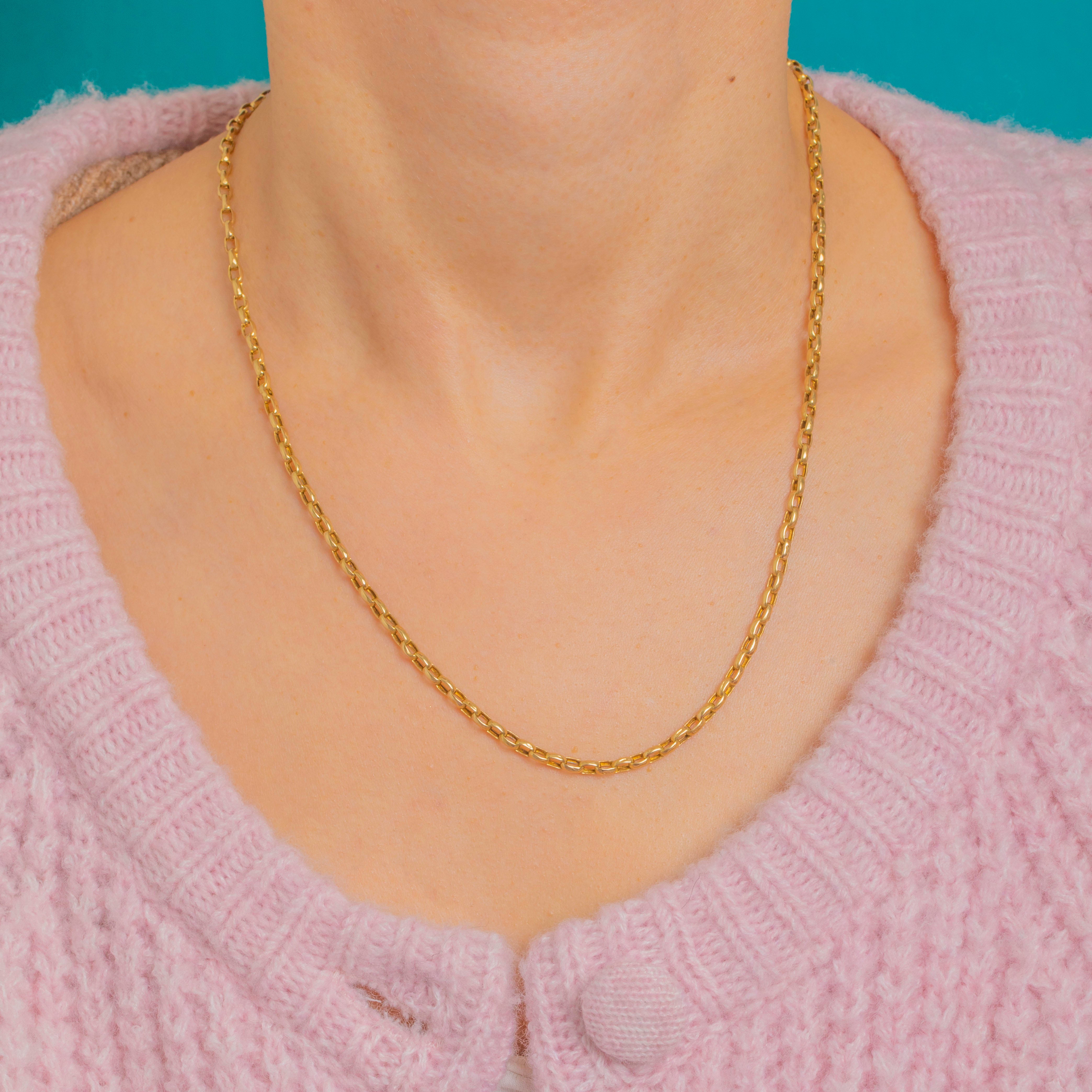 Timeless and beautifully made, this Victorian 9ct Gold belcher chain is a true jewellery essential. Its uniform belcher links gleam with a bright, rich hue, flowing smoothly for effortless elegance. Wear it solo for a refined finish or layer it to elevate the everyday.