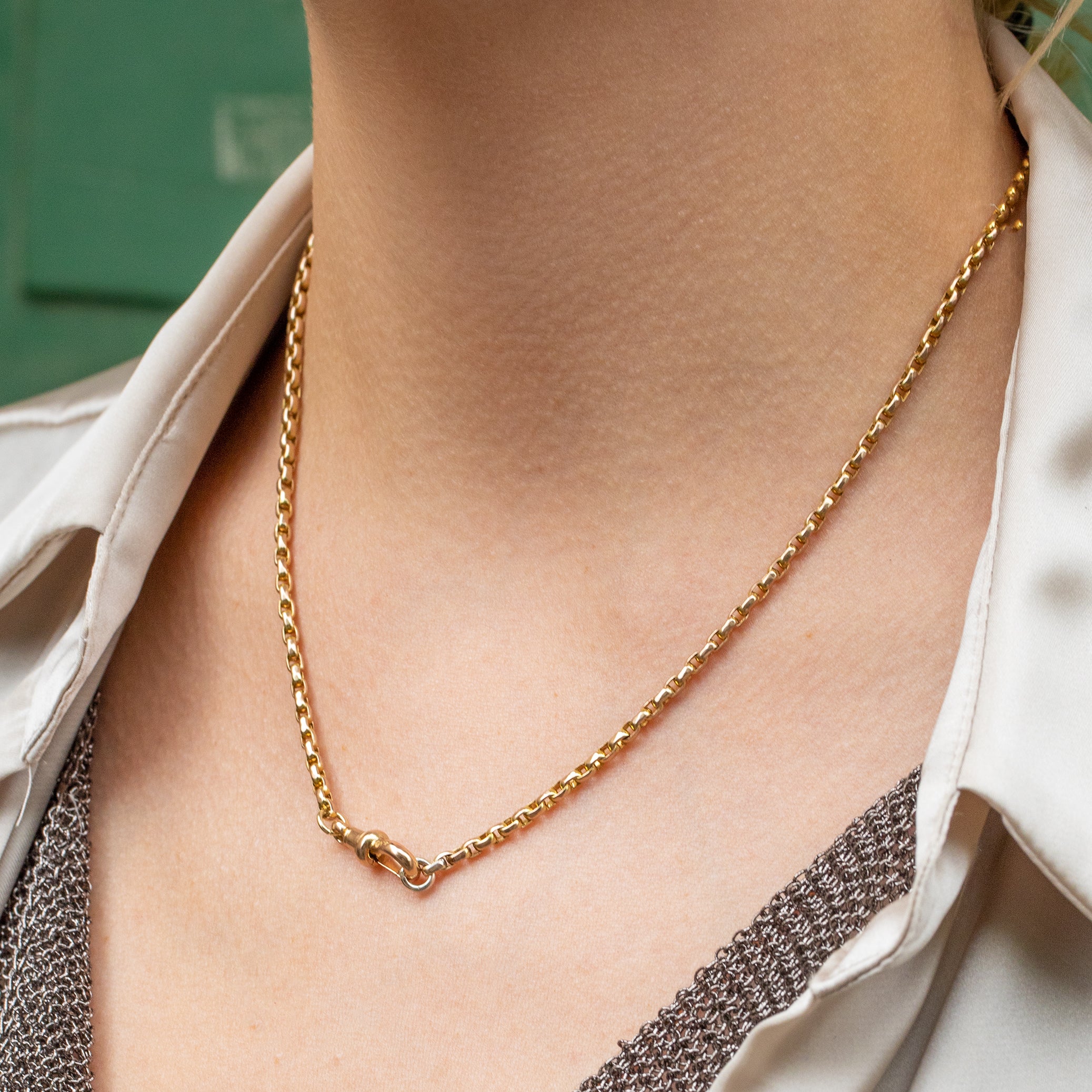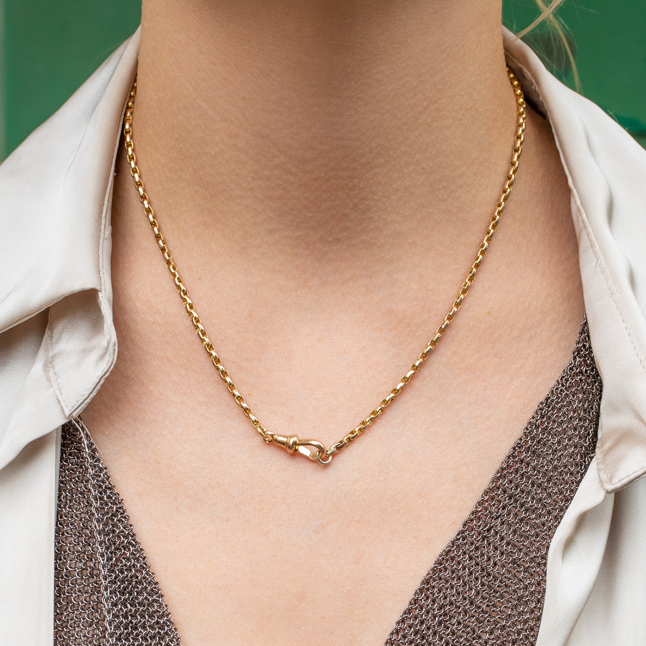 At 18" long, this Victorian Gold chain will bring that slightly longer length to your necklace stack. With a chunky dog clip to finish, you can easily suspend your favourite charm or pendant from it for a personal touch!