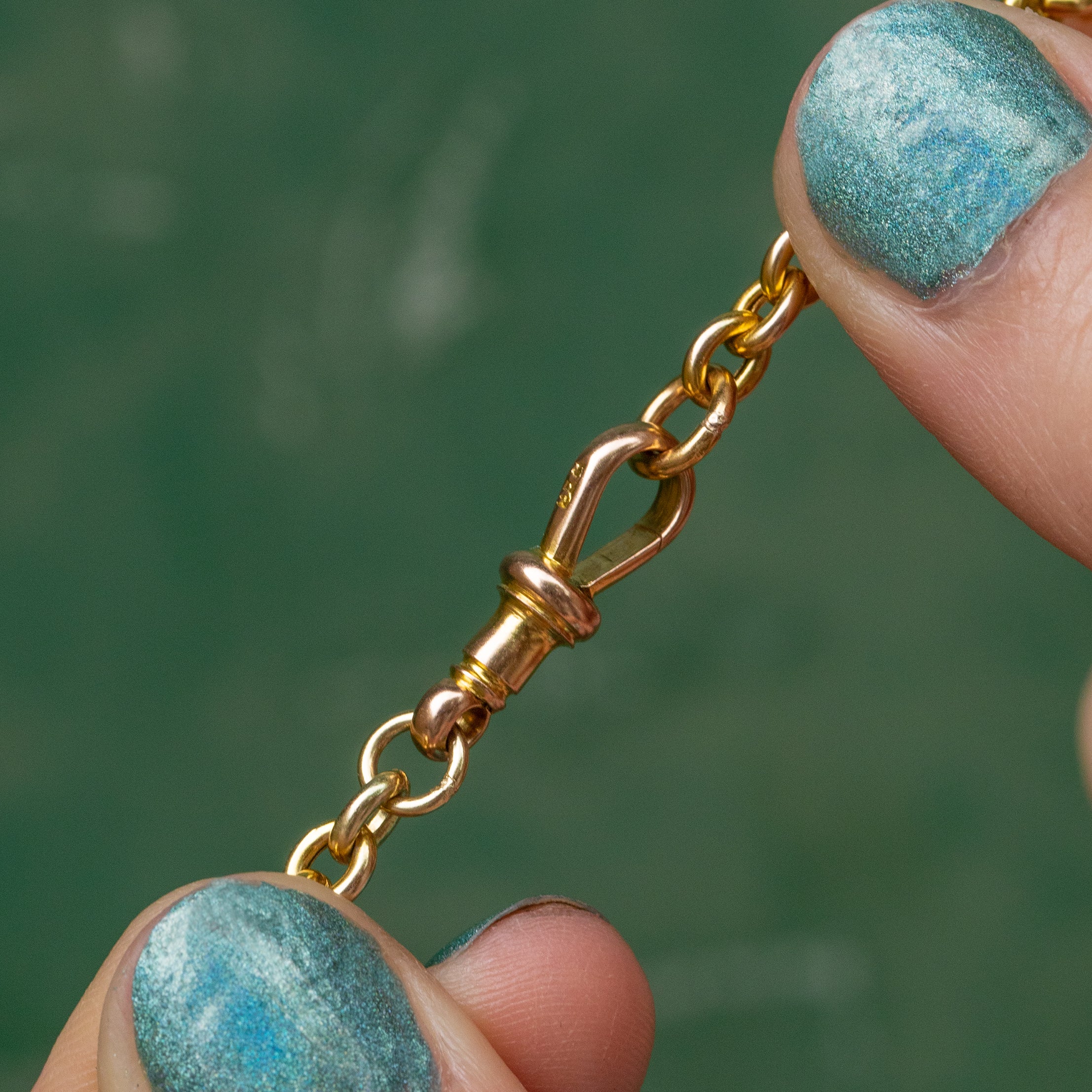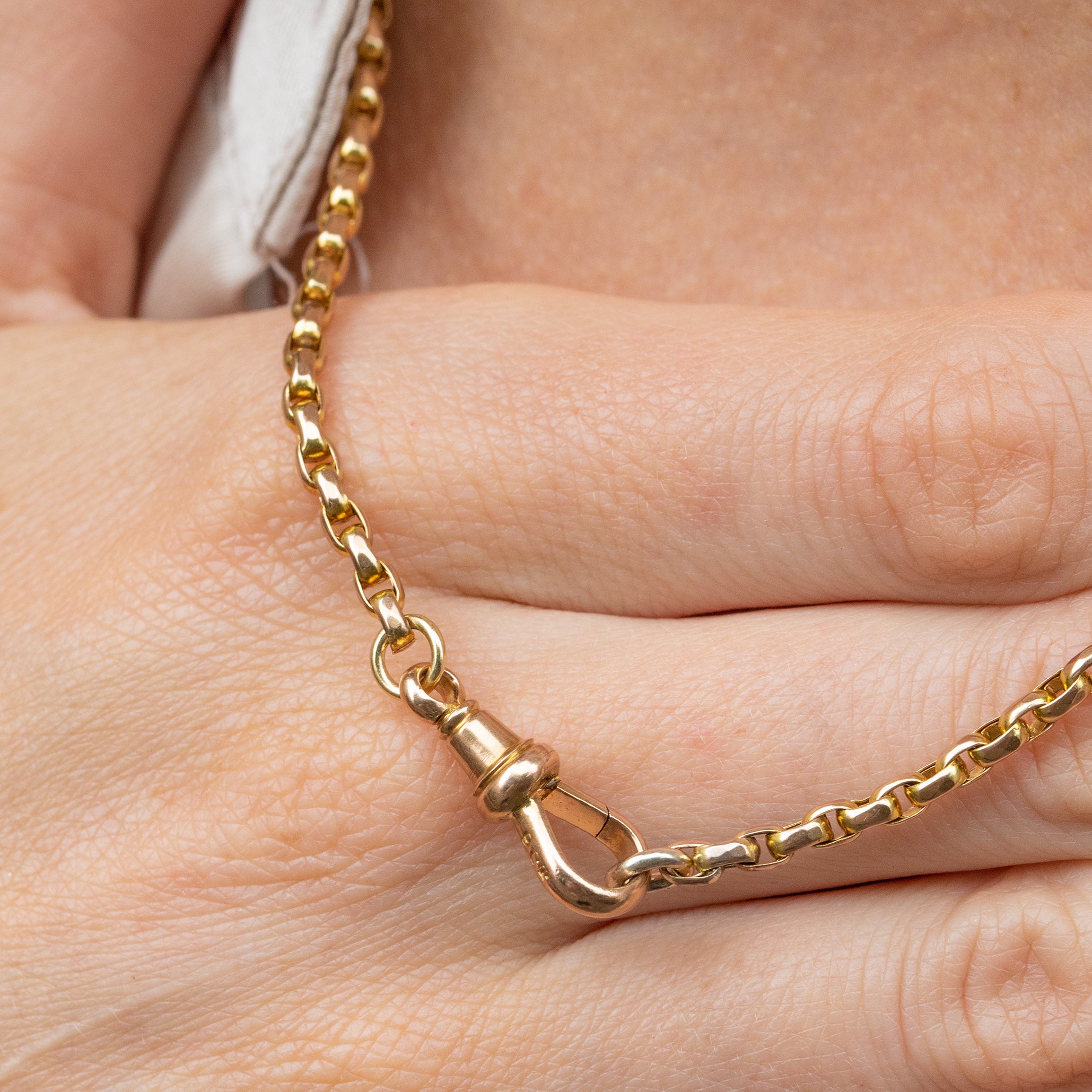 EXCELLENT. This antique 9ct Gold belcher chain is in excellent condition throughout! The Gold is saturated and each link is firmly affixed with no dings to note. The dog clip has excellent spring back allowing you to wear this superb antique belcher chain with confidence!