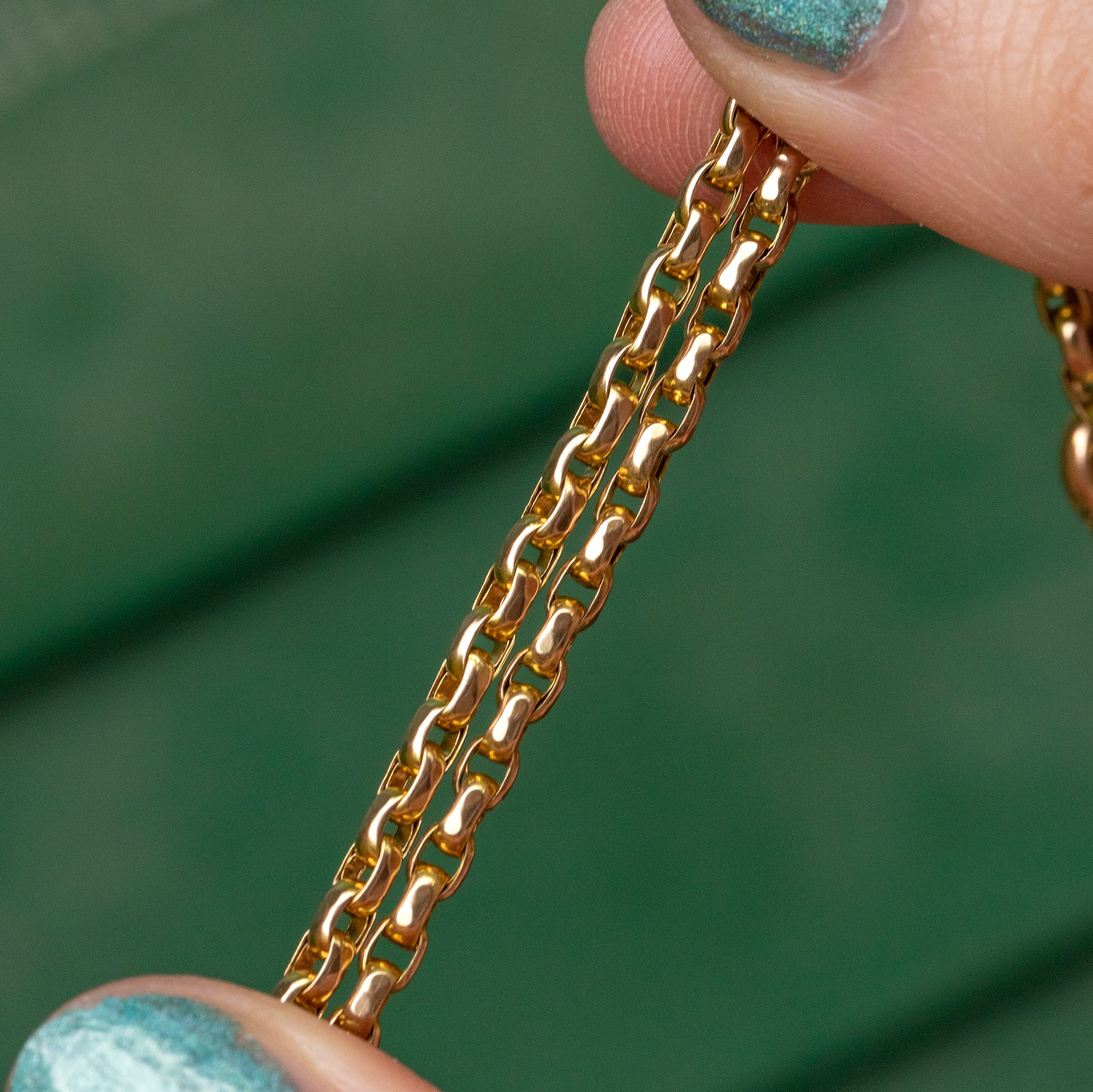 This splendid antique 9ct Gold belcher chain will make a fine addition to your collection! Honey hues trickle from one belcher link to the next, with their softly faceted forms catching the light beautifully. She's a beautiful bright yellow tone and at a generous 9 grams in weight,  she's robust enough for daily wear.