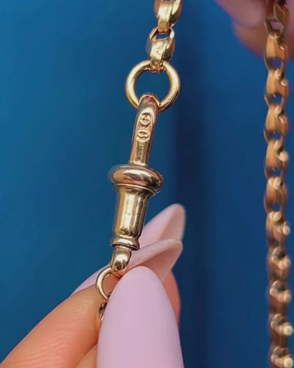 EXCELLENT. This 18" antique 9ct Gold tulip link chain is in excellent condition. All the links are securely connected, with the dog-clip firmly attached and in fine working order. Overall, a lovely chain to brighten up an outfit!