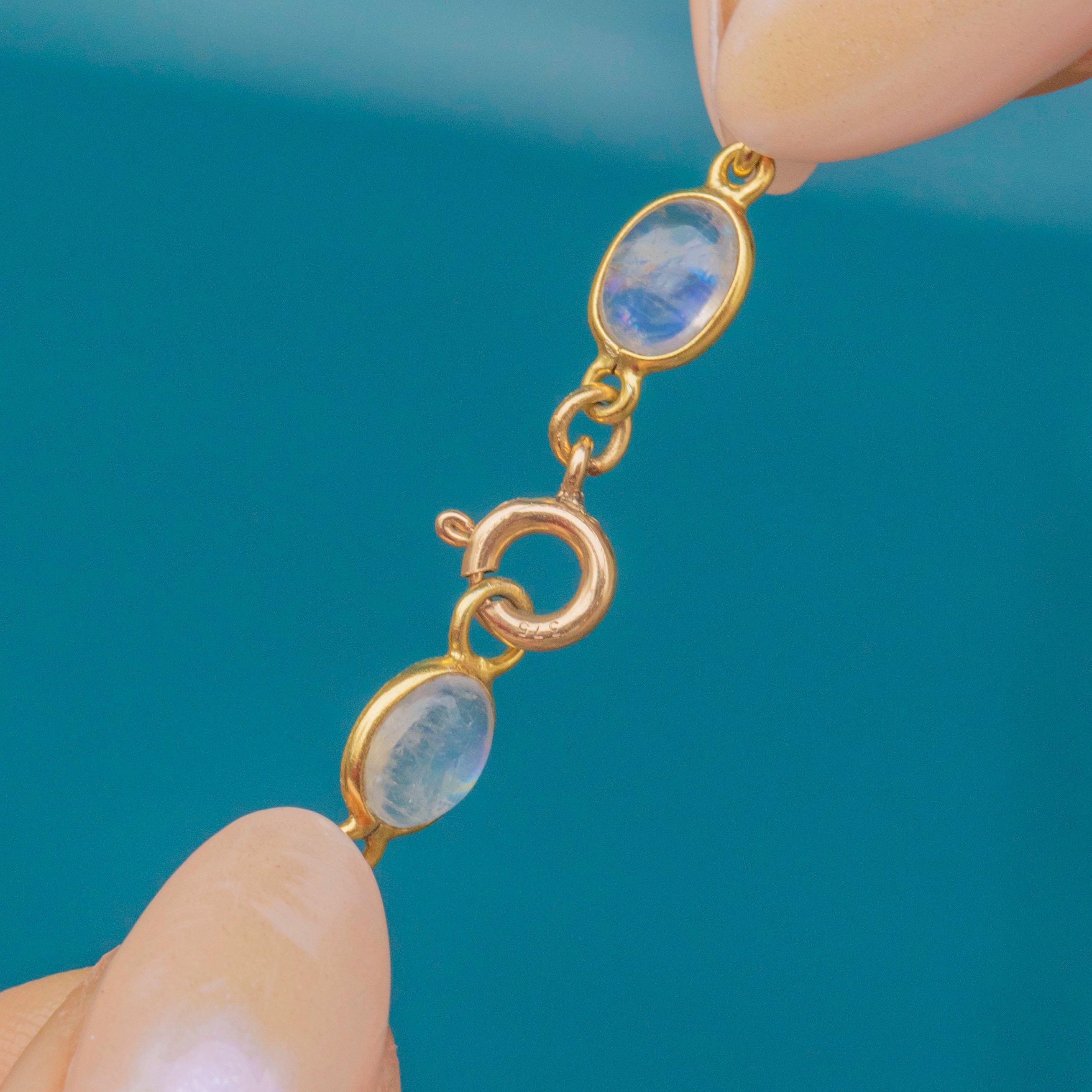 The 18-inch length will elegantly drape across your collarbones, sending blue and green adularescence cascading across your decolletagé as the smooth-cut Labradorite cabochons catch the light. A superb piece of mid-century jewellery, this necklace will instantly add vintage charm to your outfit!