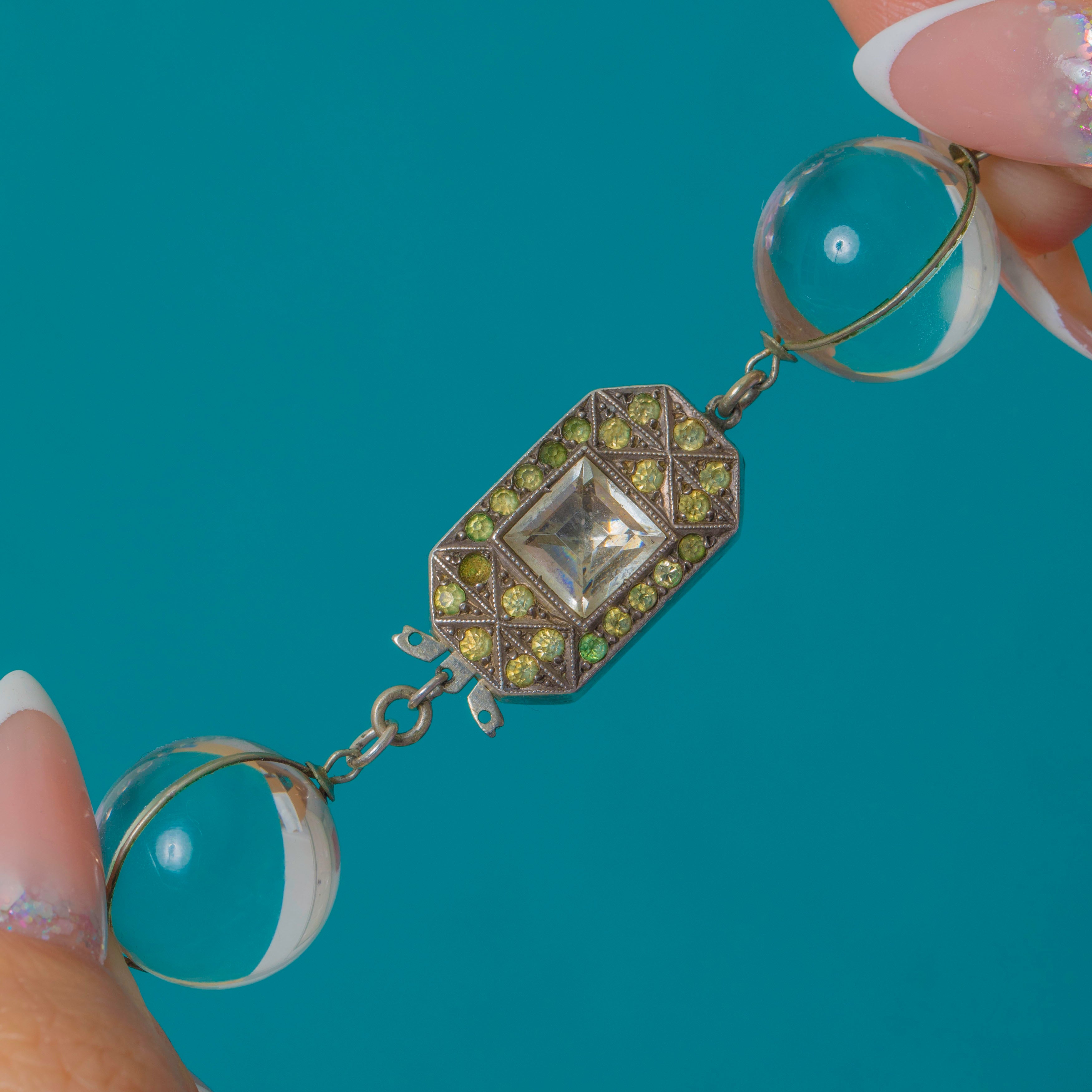 EXCELLENT: The Rock Crystal orbs are bright, clear and free from chips or cracks, and the Paste stones are secure and well-preserved. The Silver clasp functions smoothly with minimal age-related wear. A superb Victorian piece.