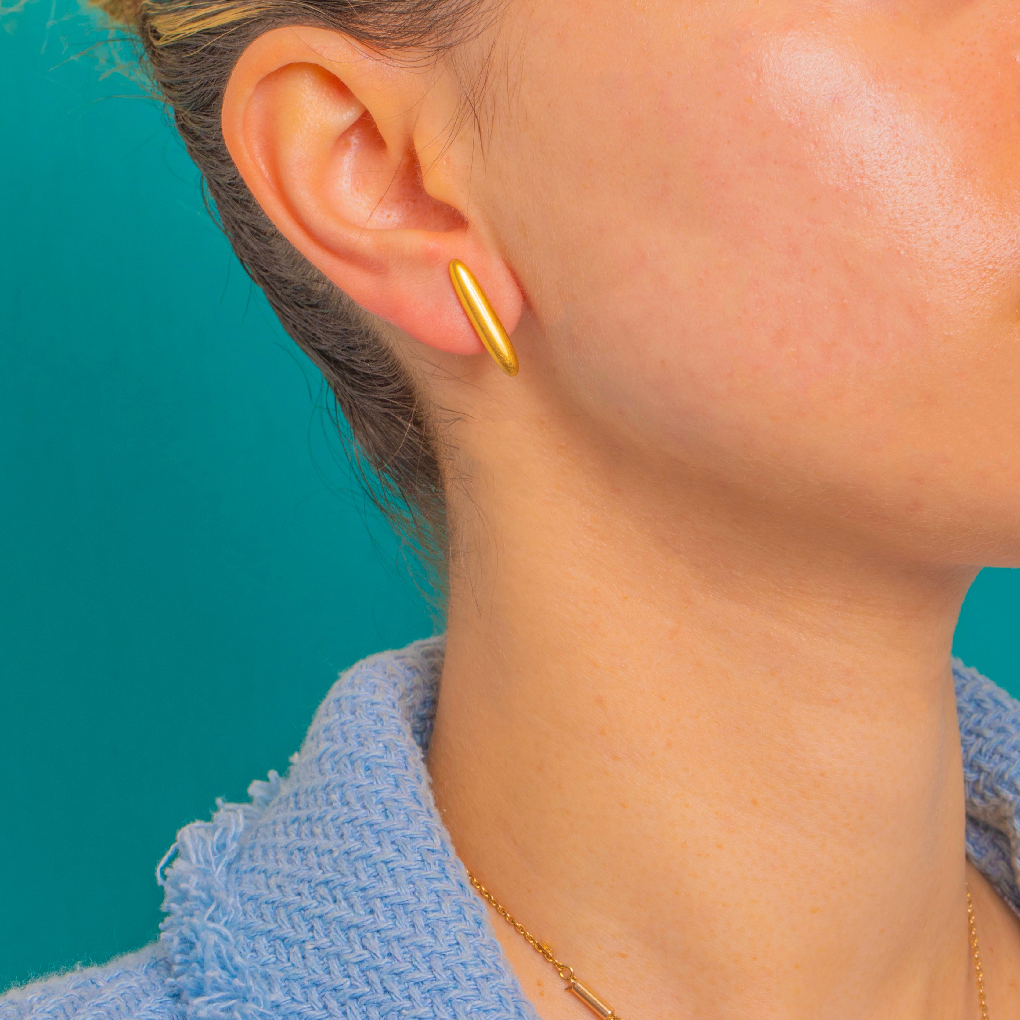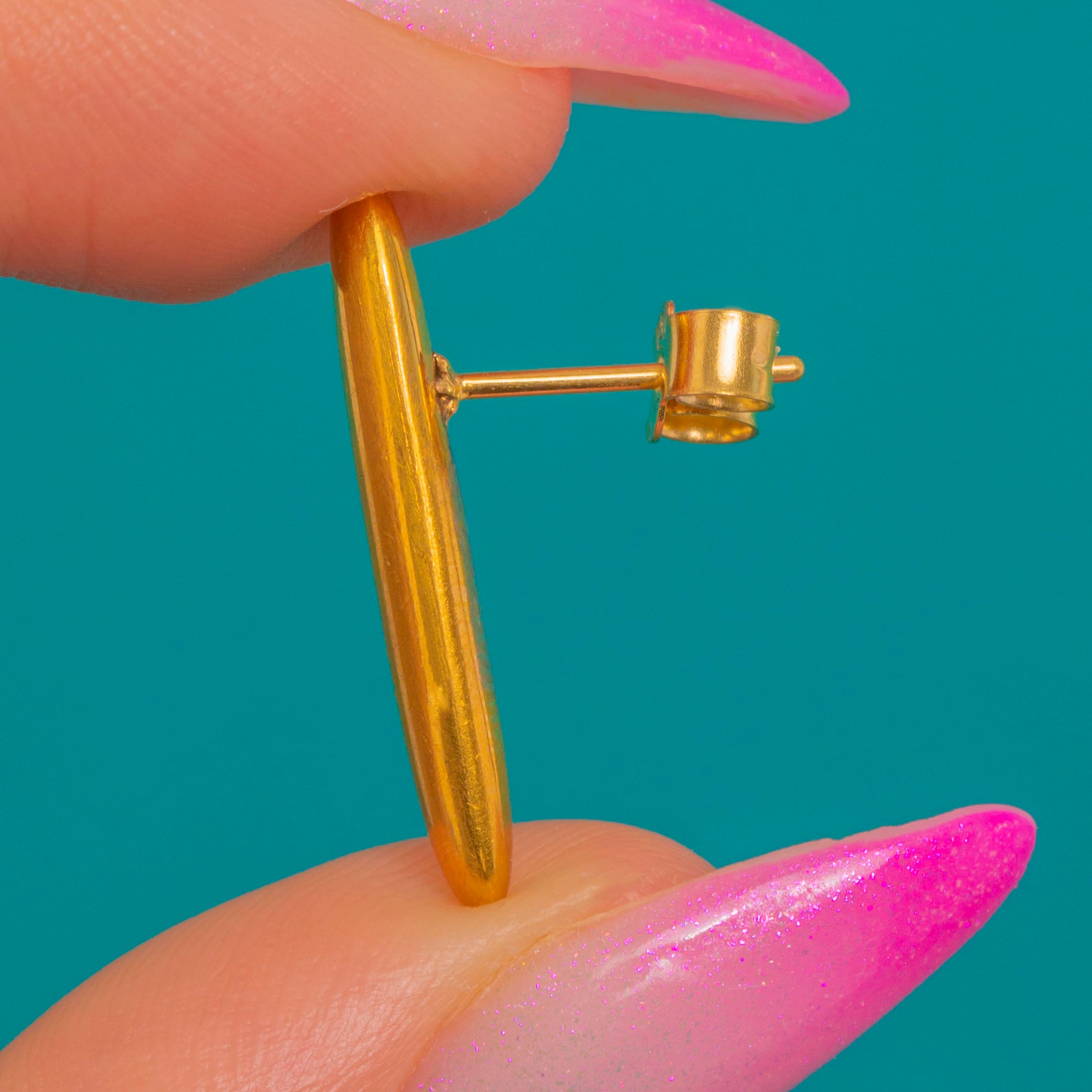 Sleek, sculptural and effortlessly refined, these Victorian 18ct Gold French torpedo studs celebrate pure form. The elongated capsule silhouette is beautifully smooth and polished, catching the light with a warm, understated glow.