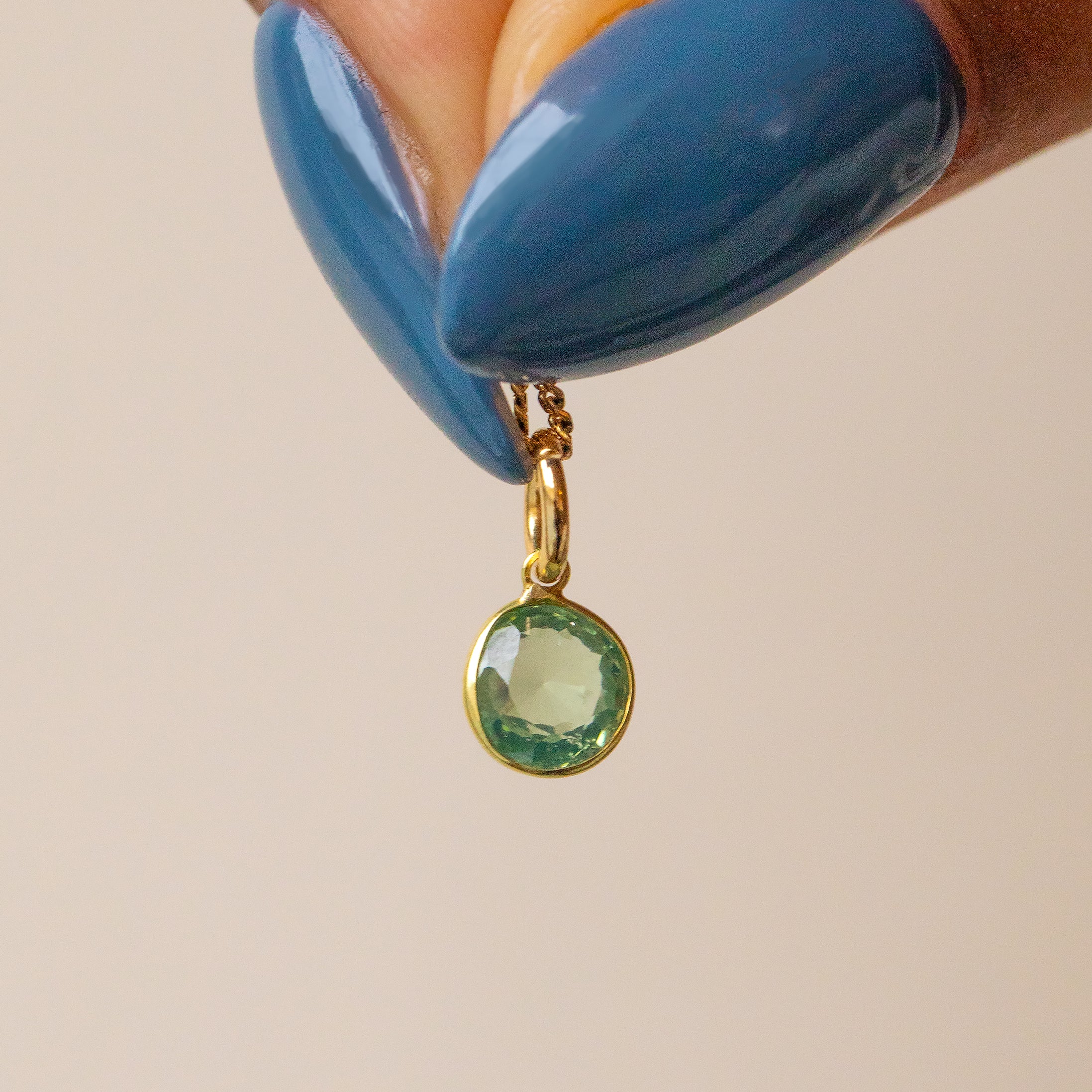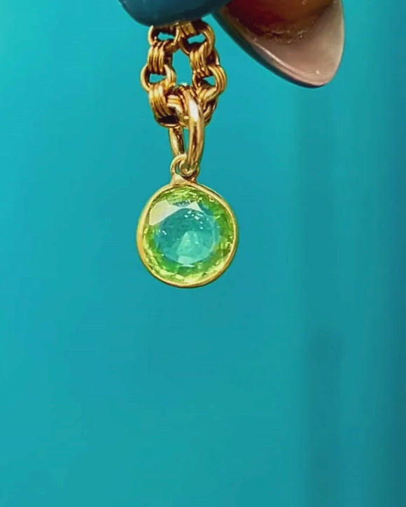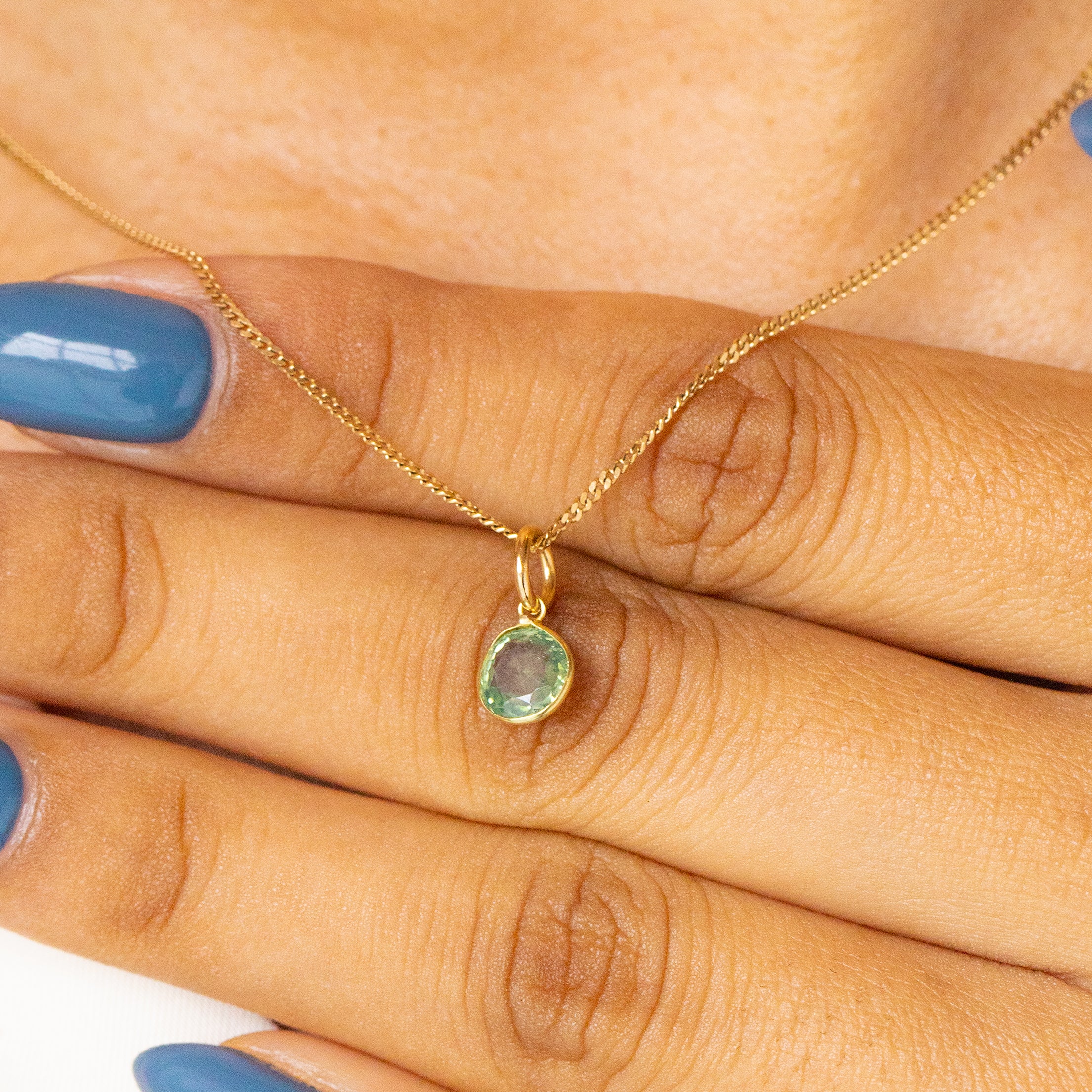 How divine is this 18ct Gold Green Garnet bezel set charm?! The glistening rich and glossy moss green hue emanating from this striking gemstone is what makes this Yttrium Aluminium Garnet so rare.