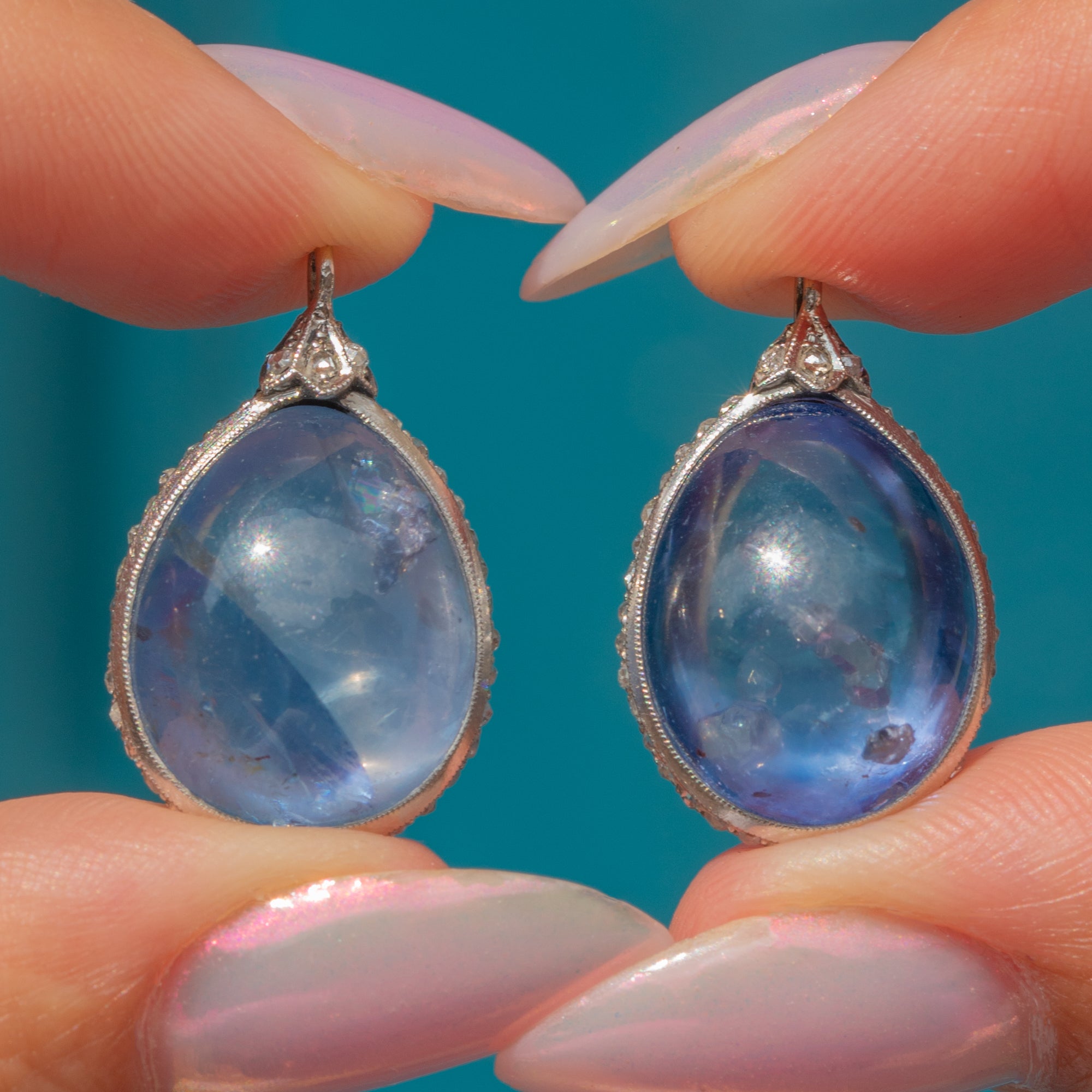 18ct Gold Natural Sapphire Cabochon Diamond Day & Night Earrings, 40.00ct