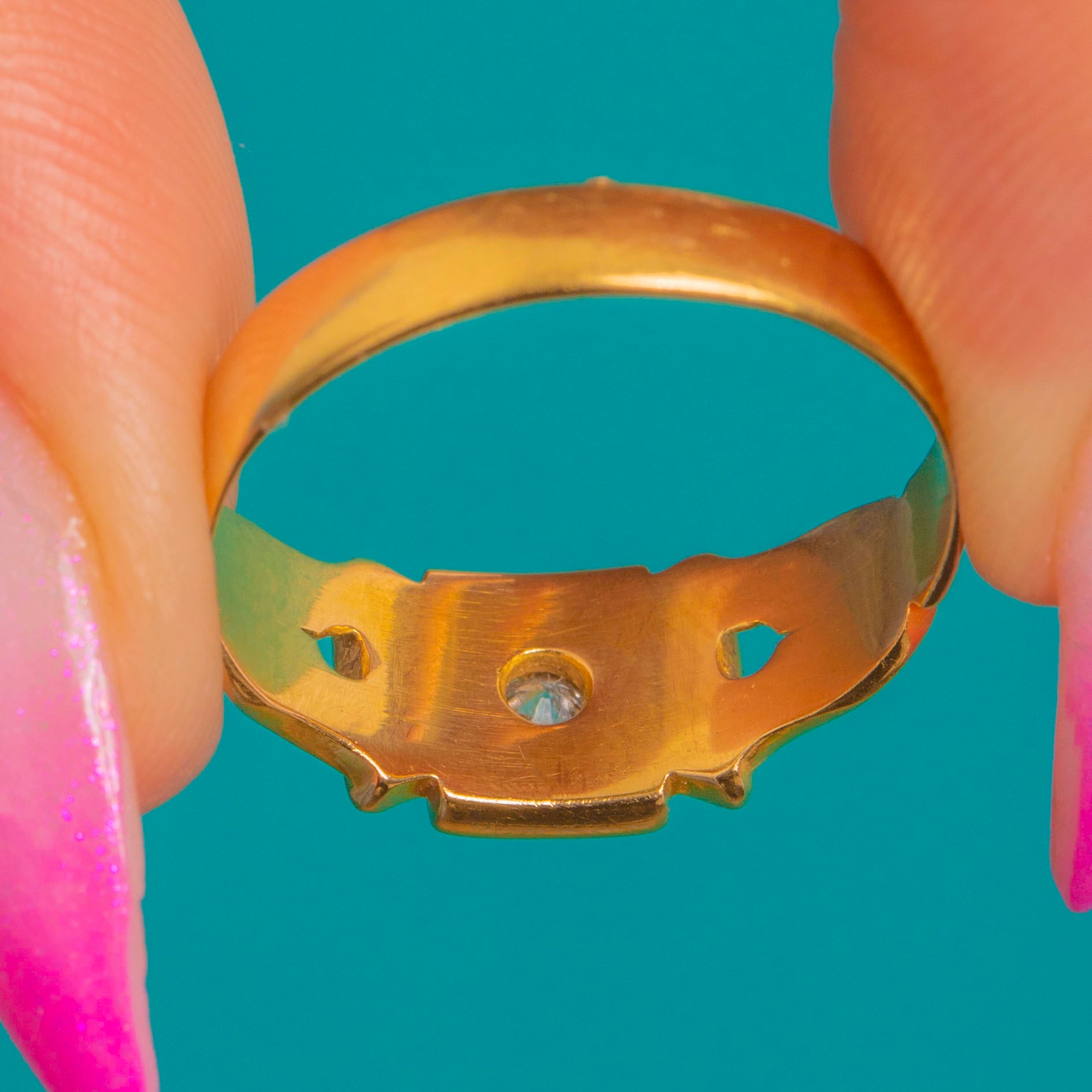 18ct Gold Old Mine-Cut Diamond Star-Set Gypsy Ring Ornate
