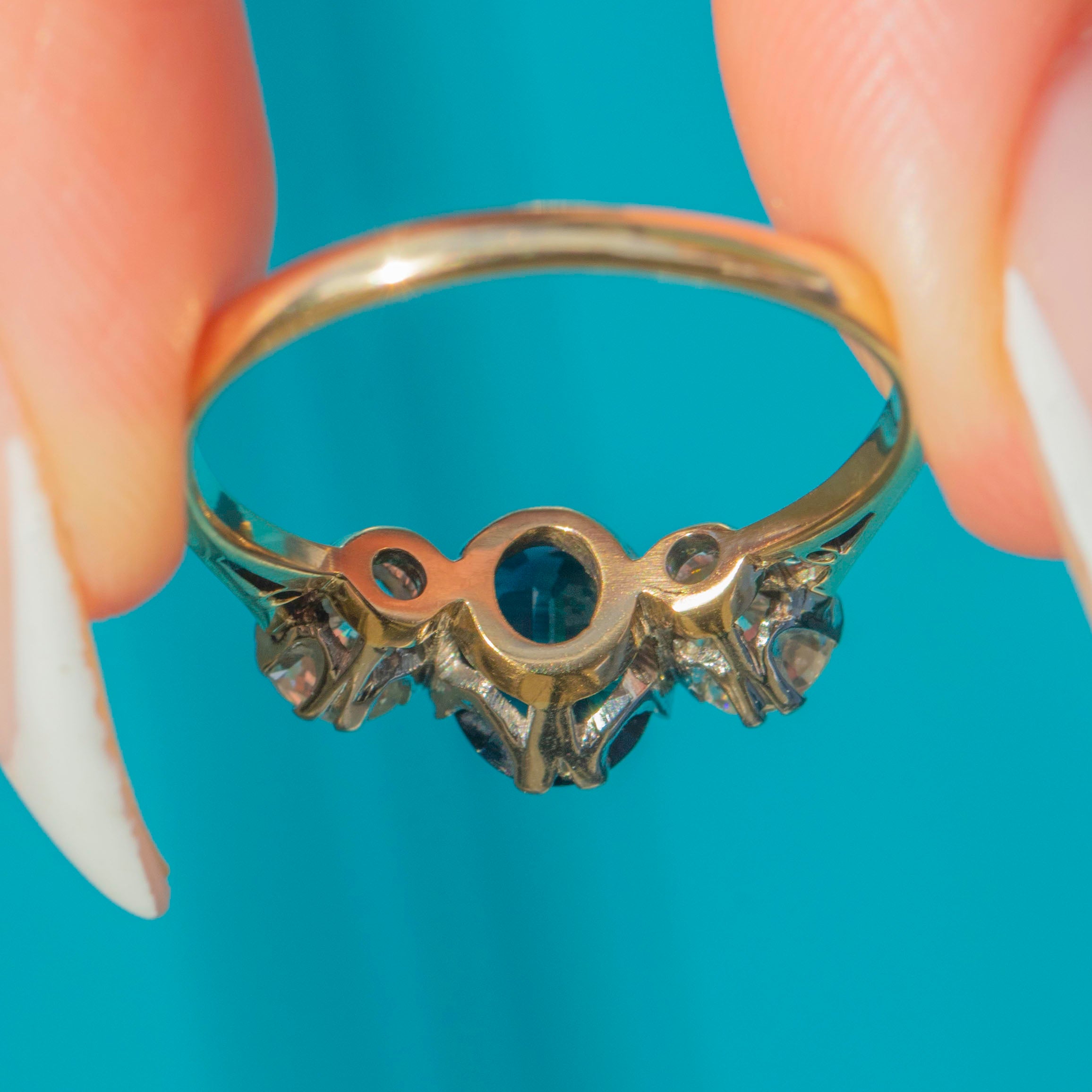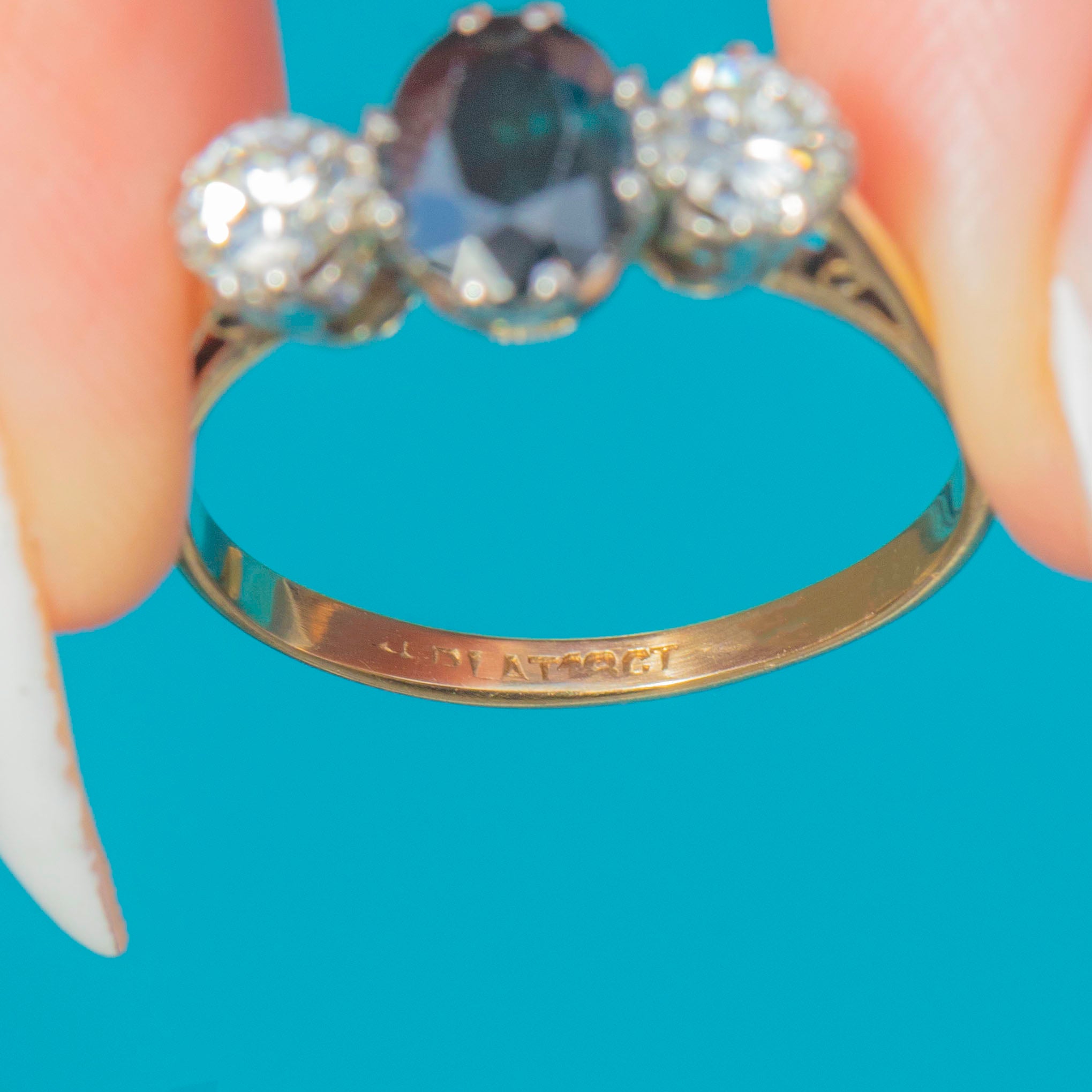 EXCELLENT: The Sapphire is securely set and displays a vivid, even blue colour with no chips or abrasions. The Diamonds are bright, crisp and free from damage. The band and settings are strong with no thinning or wear, ready to be worn and enjoyed for many years to come.
