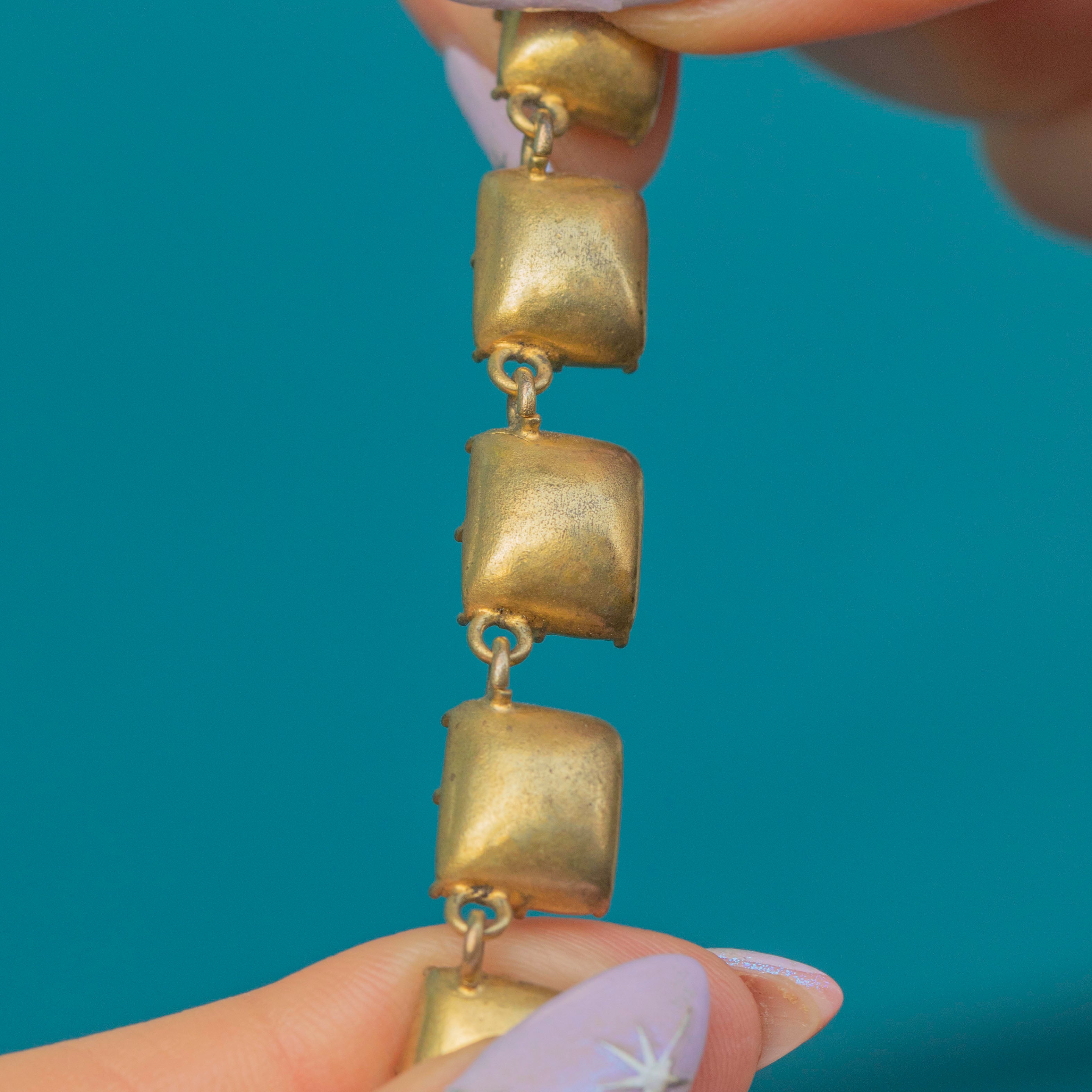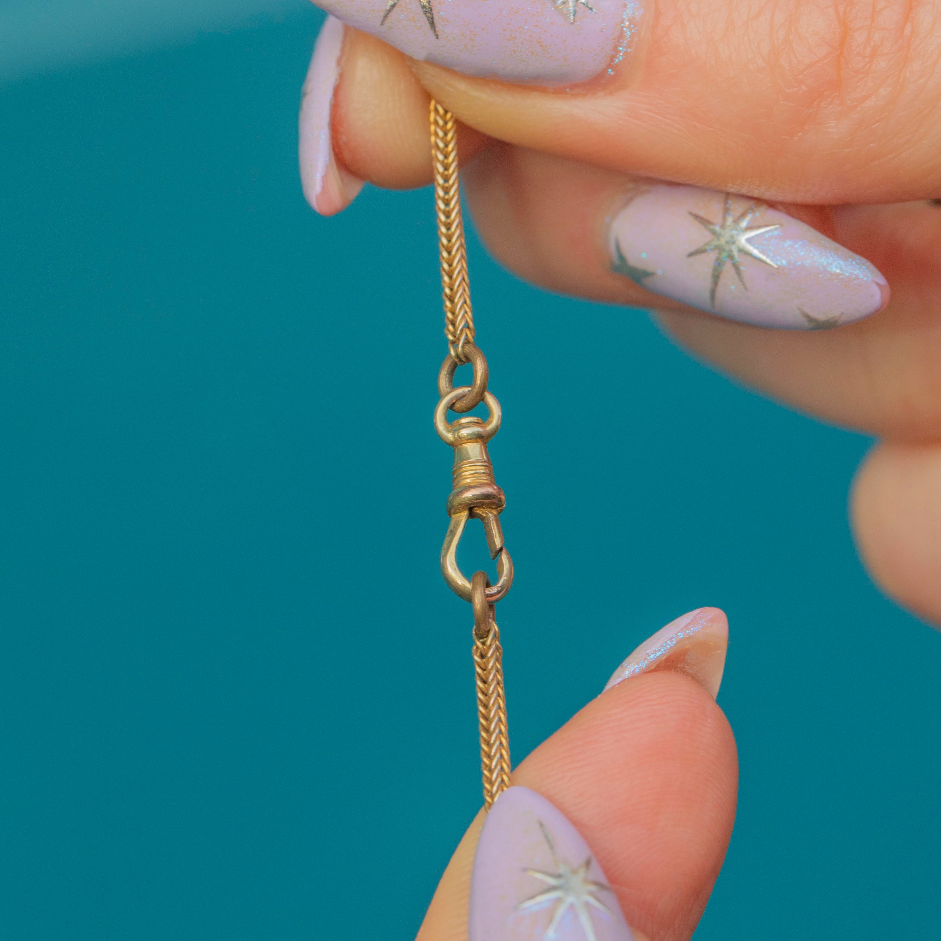 VERY GOOD. This 18th Century Georgian red Paste Riviere necklace is in very good antique condition. We just cannot believe how old she is! Of course, something so rare and over 250 years old is not ideal for everyday wear. We recommend that you keep this precious piece away from moisture, chemicals, and perfume to ensure she is kept looking her best for future generations. Her Paste and Pinchbeck is well preserved, with some age-related wear to her, especially at the back of the necklace - however, this is not visible during wear. Joined together with a 9ct Gold foxtail chain, you can secure her using the dog-clip clasp - you will never want to take her off!