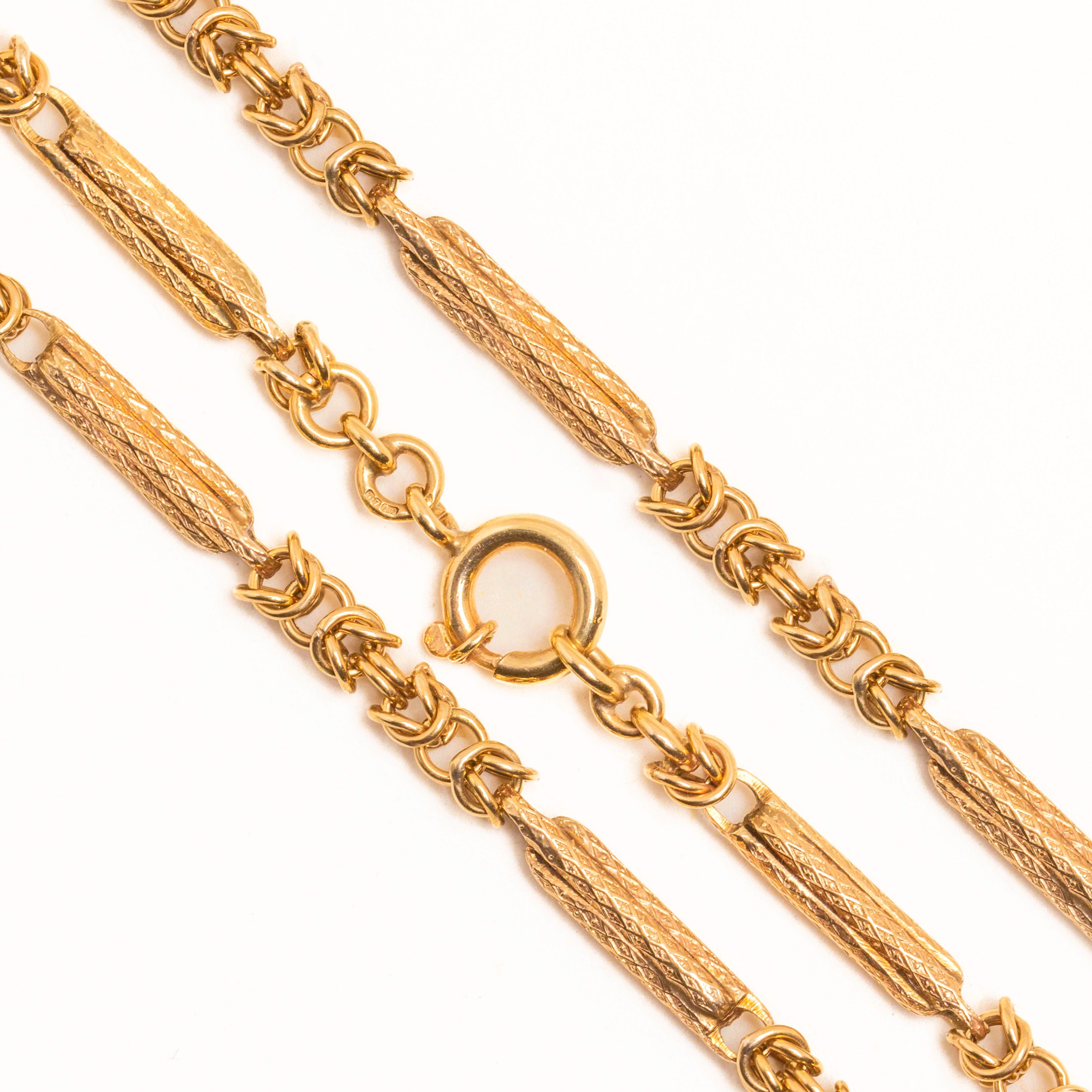 This fine antique solid Gold chain is an impressive 19.3 grams and secured with a classic and rather chunky bolt-ring clasp- ensuring that the chain and any charms or pendants are held securely.