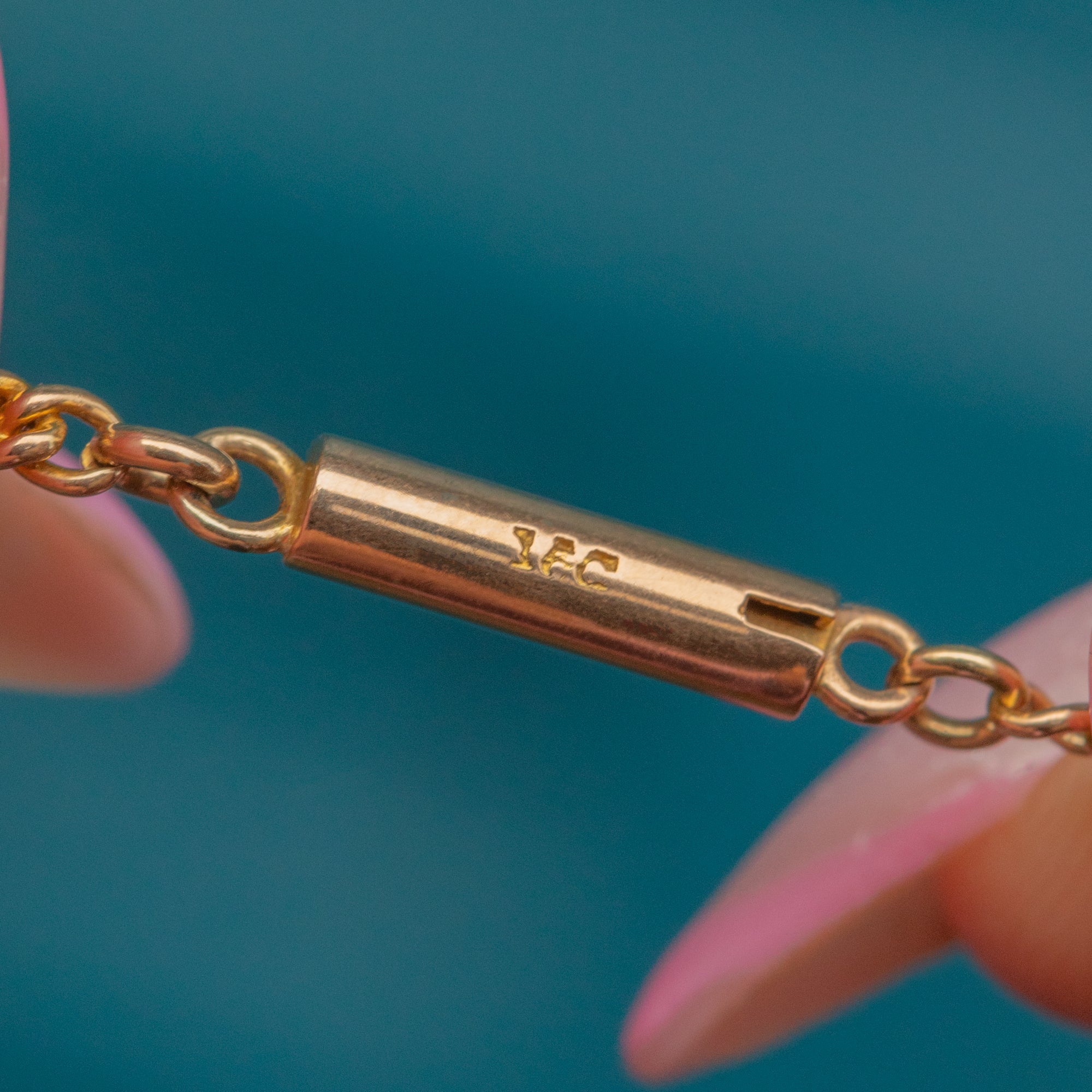 EXCELLENT: The chain links are smooth, secure, and beautifully preserved. The barrel clasp works perfectly, and the Gold retains a gorgeous antique patina with minimal wear.