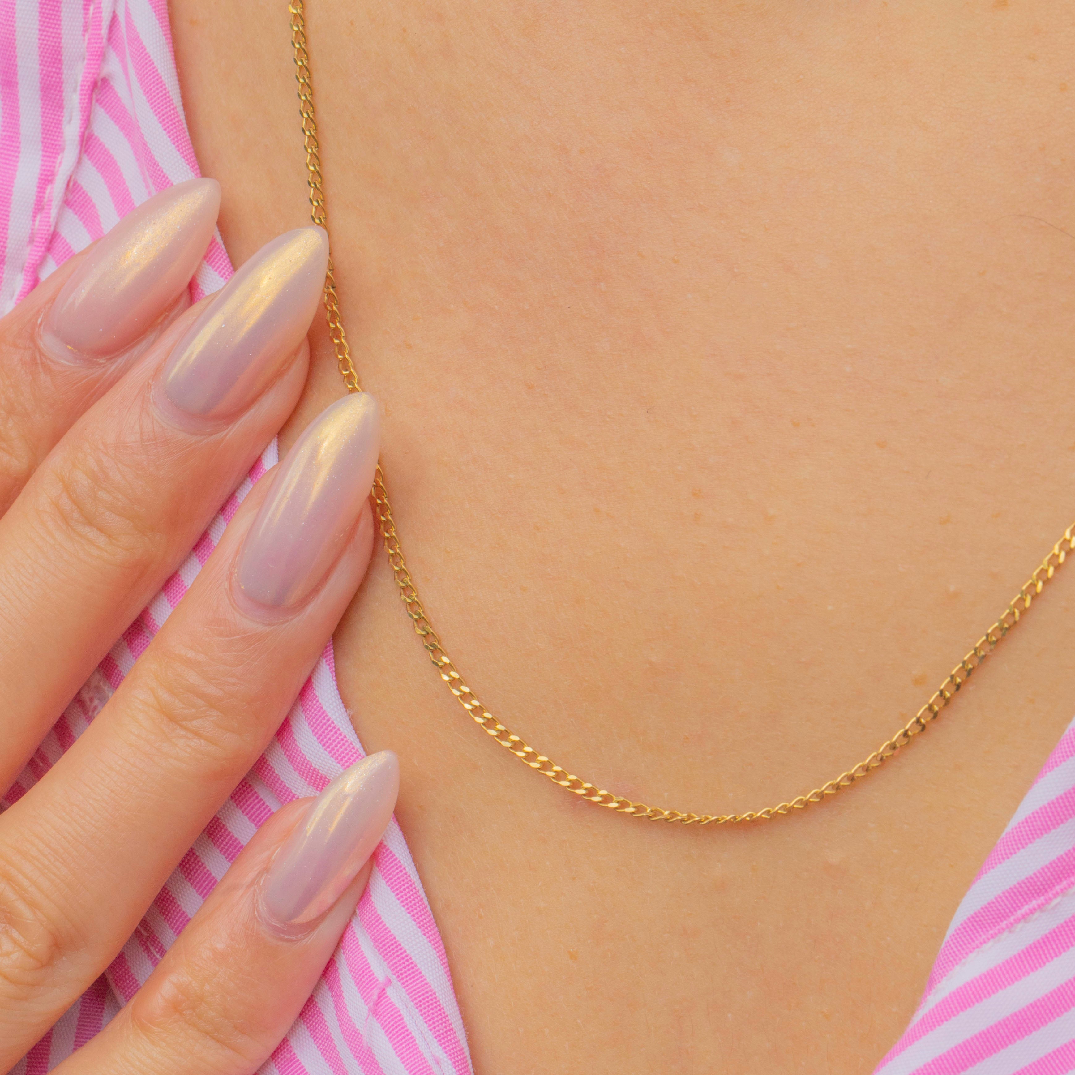 Each 1.6mm link is precision-cut to catch the light, giving the chain subtle sparkle while maintaining a classic, timeless appeal. Its lightweight design makes it ideal for daily wear, and the elegant craftsmanship ensures it will complement any pendant beautifully.