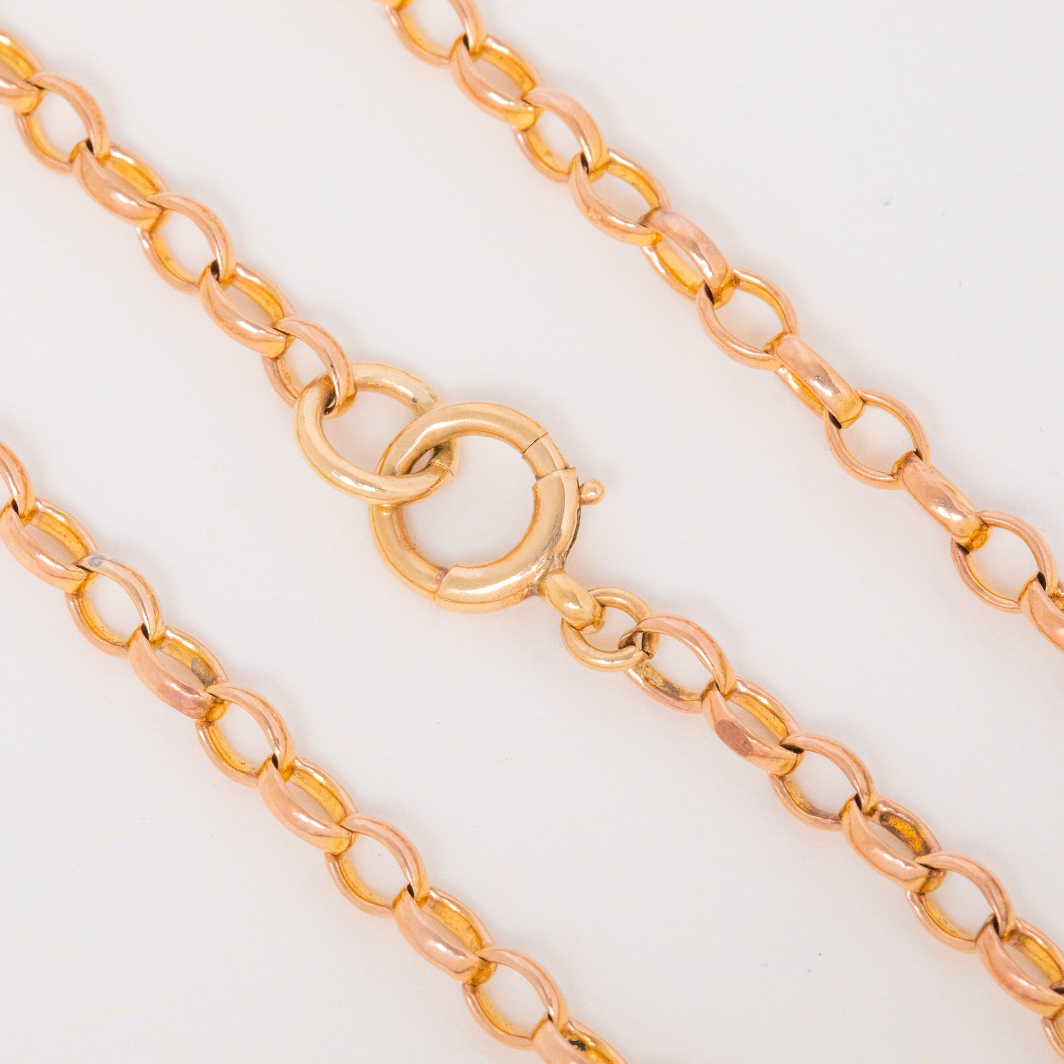 EXCELLENT. This 23" 9ct Gold belcher chain is in excellent condition. The links are all firmly connected and free from dings or scuffs. The bolt-ring is fully functioning for secure wear and provides versatility as you can suspend a pendant from it! This antique Gold chain can be worn and adored for decades more.