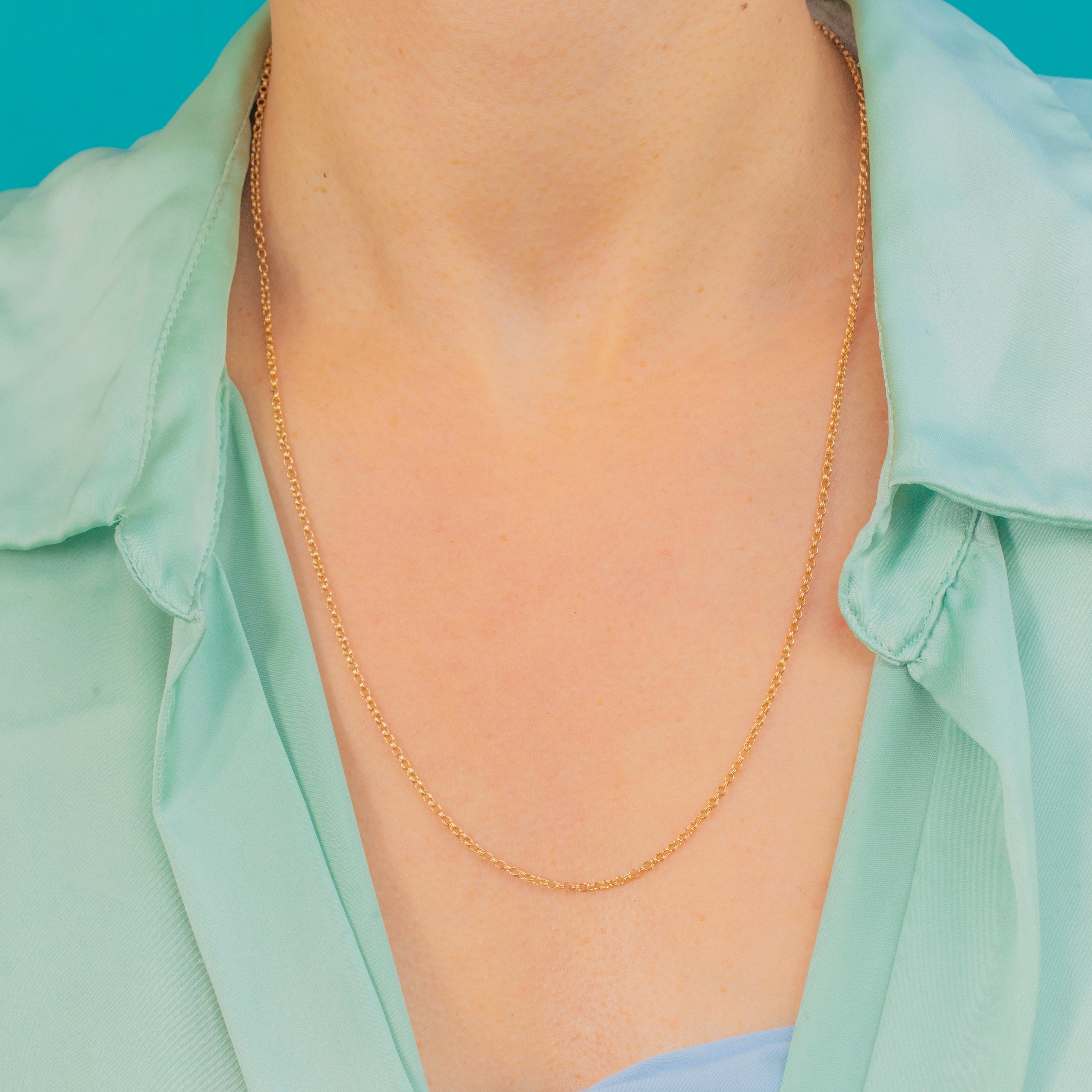 A classic Victorian 15ct Gold chain, beautifully long at 27" and perfect for pendants, lockets, or layering. It's fine 1.5mm links have that soft antique glow unique to true 15ct Gold, giving it an elegant, timeless look that complements any collection.