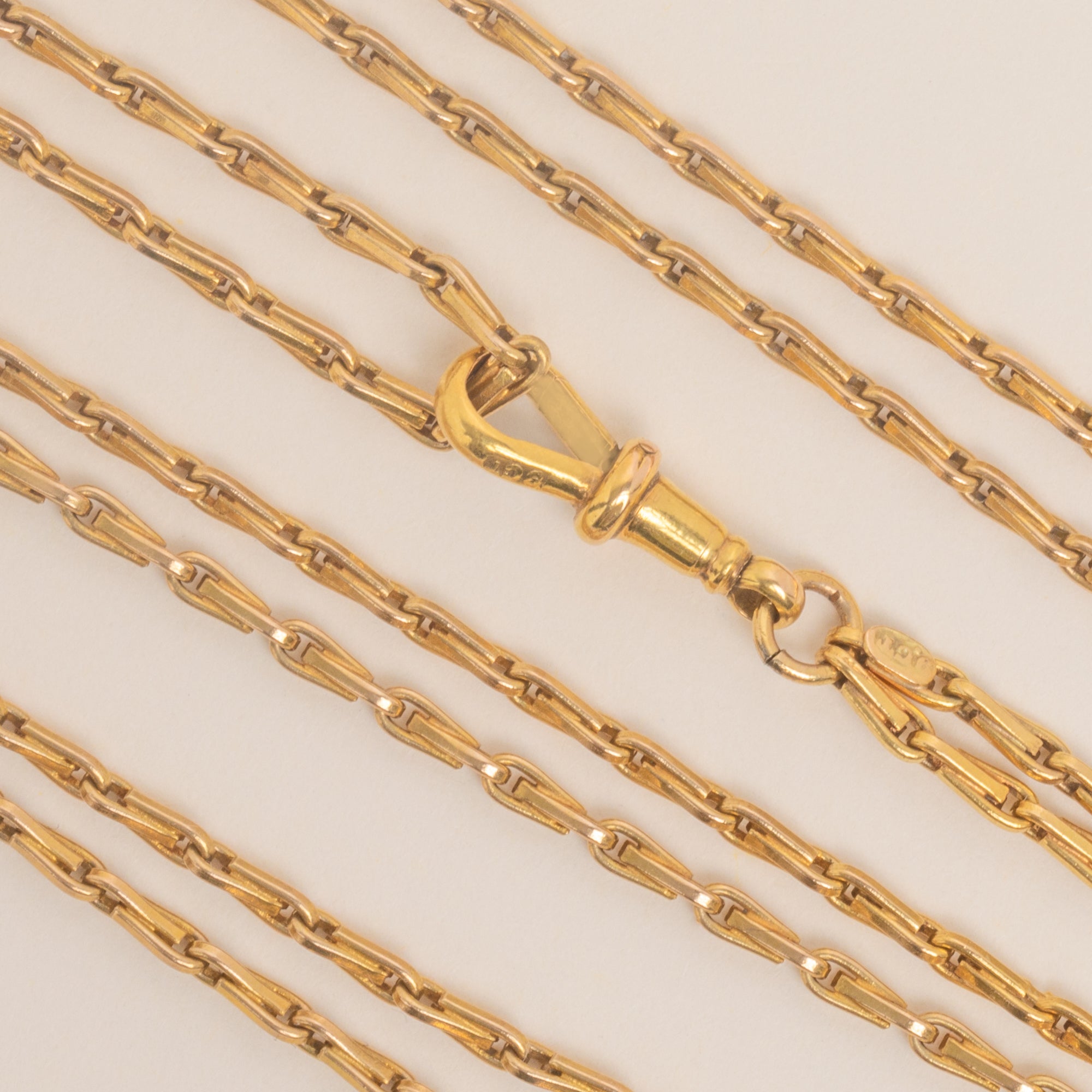 39" Antique 9ct Gold Hayseed Longuard Chain with Dog-Clip, 16.7g