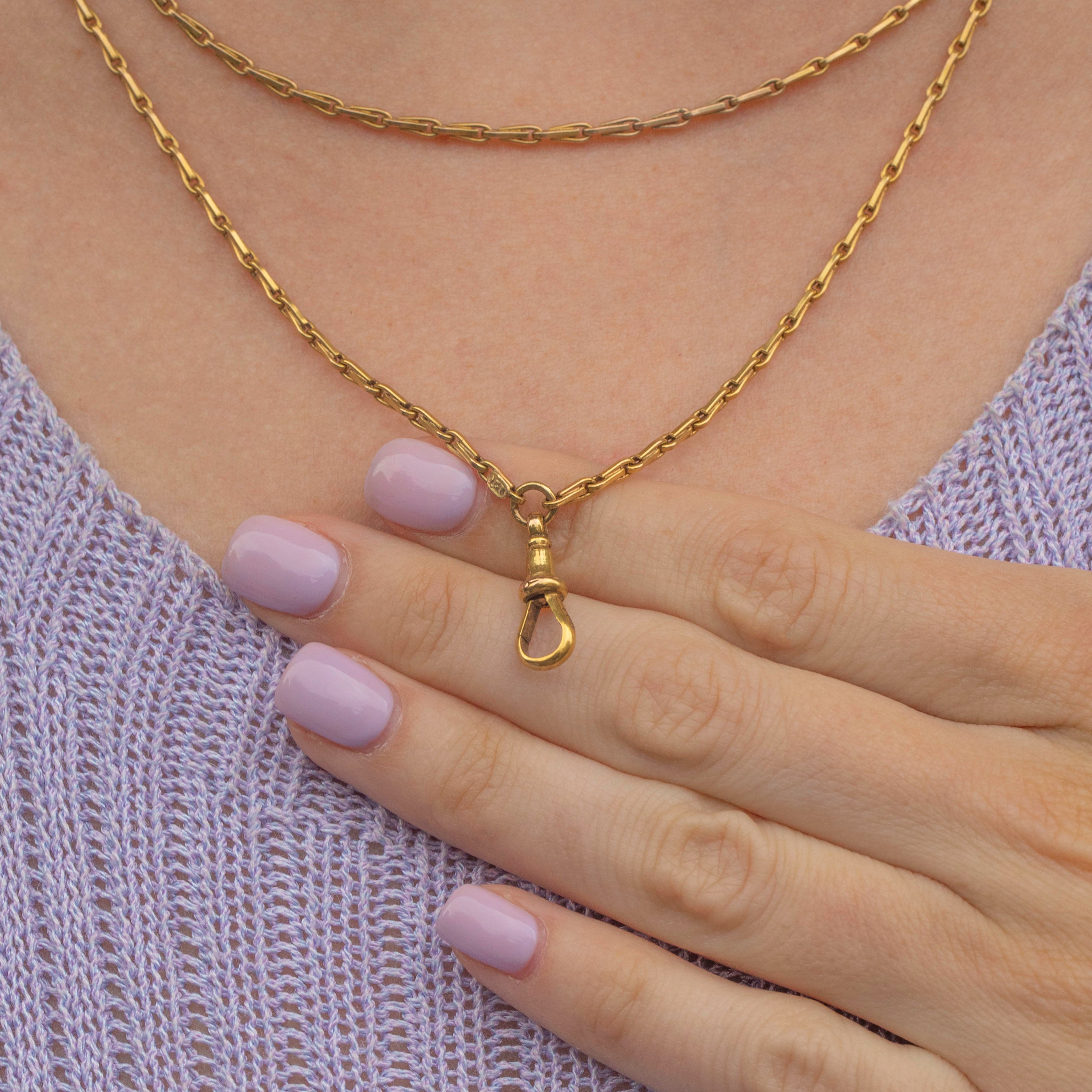 Originally a longuard chain, she can be worn at two different lengths giving you versatility in how you style her; you could even attach a delicate pendant from the dog clip to finish! With her versatility and charm, this sumptuous Victorian Gold chain will quickly become part of your every day wear, you won't want to take her off!