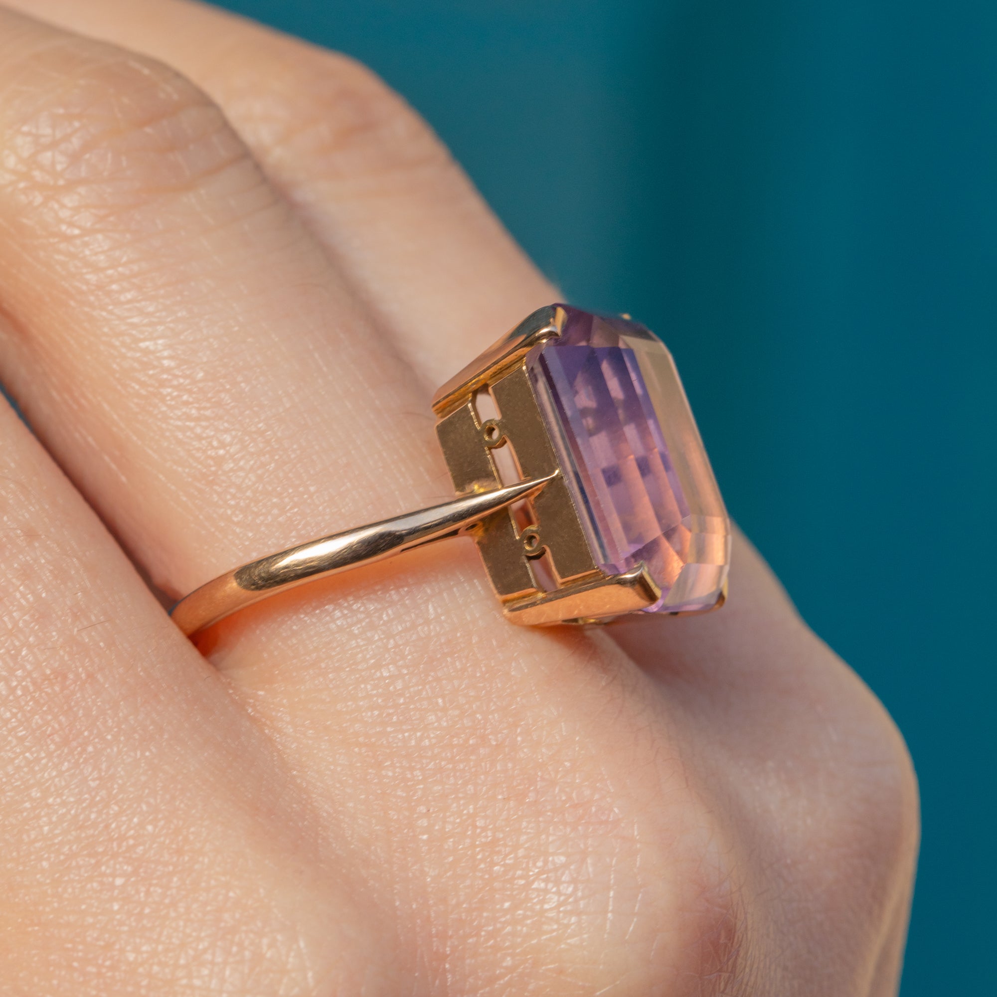 EXCELLENT: This Art Deco 9ct Gold Amethyst dress ring is in exceptional condition. Securely set it in its settings, the Amethyst is bright, sparkly and vibrant. The band is smooth with rich Gold tones and sits comfortably on the hand!