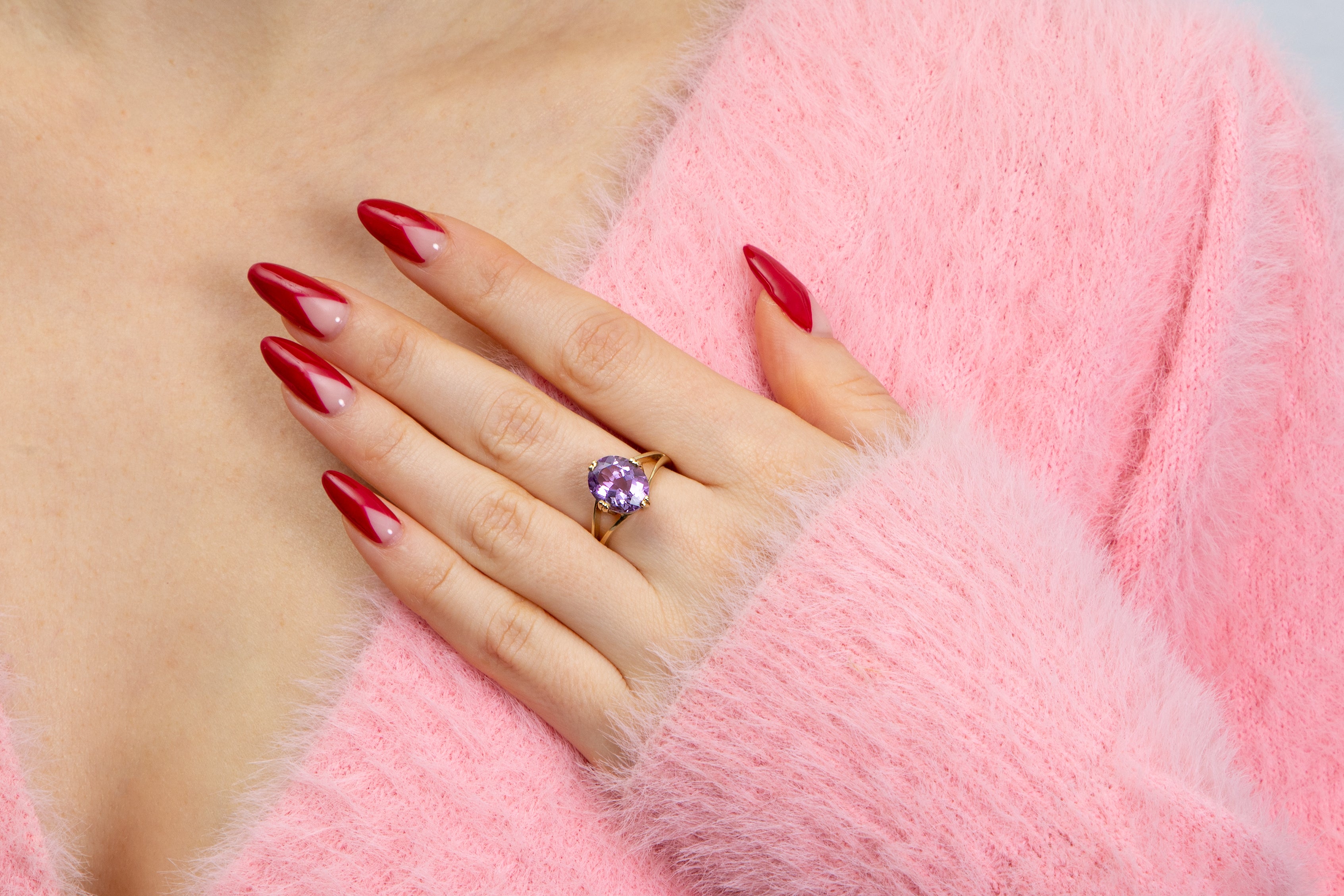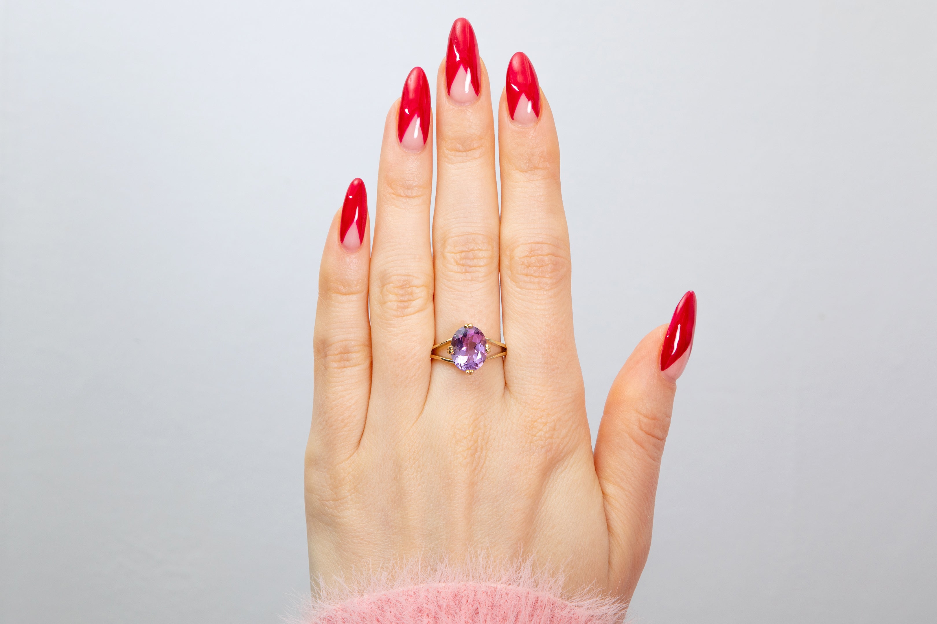 Showcasing the Amethyst is a buttery 9ct Gold band with an elegant split design. The smooth Gold complements the vibrant Amethyst creating the most dreamy combination.