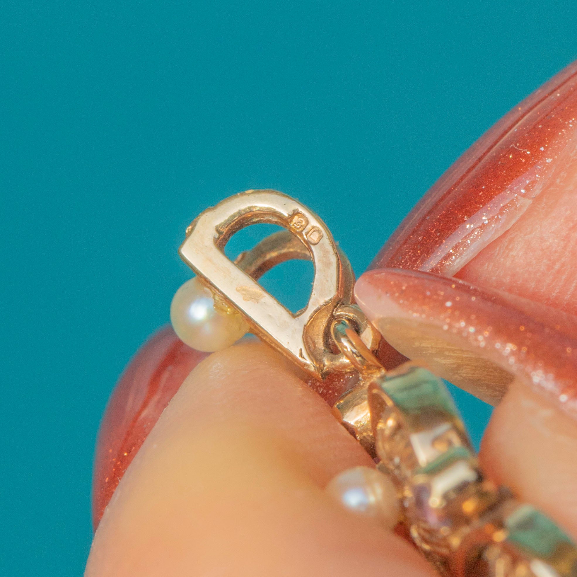 The Amethysts boast pretty lavender and lilac hues, with crisp facets that shimmer in the light. With so much wear potential and an exquisitely formed Pearl-topped bale, this mid-century vintage pendant will look resplendent taking centre stage across your décolletage!