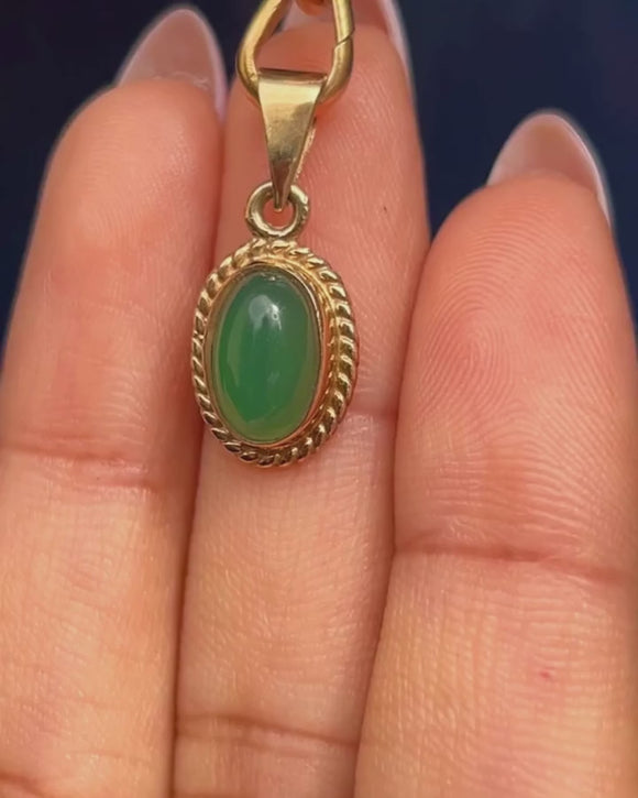 This 9ct Gold Chrysoprase charm will turn your friends green with envy! Her smooth Chrysoprase cabochon is filled with milky forest green hues swimming across her surface.