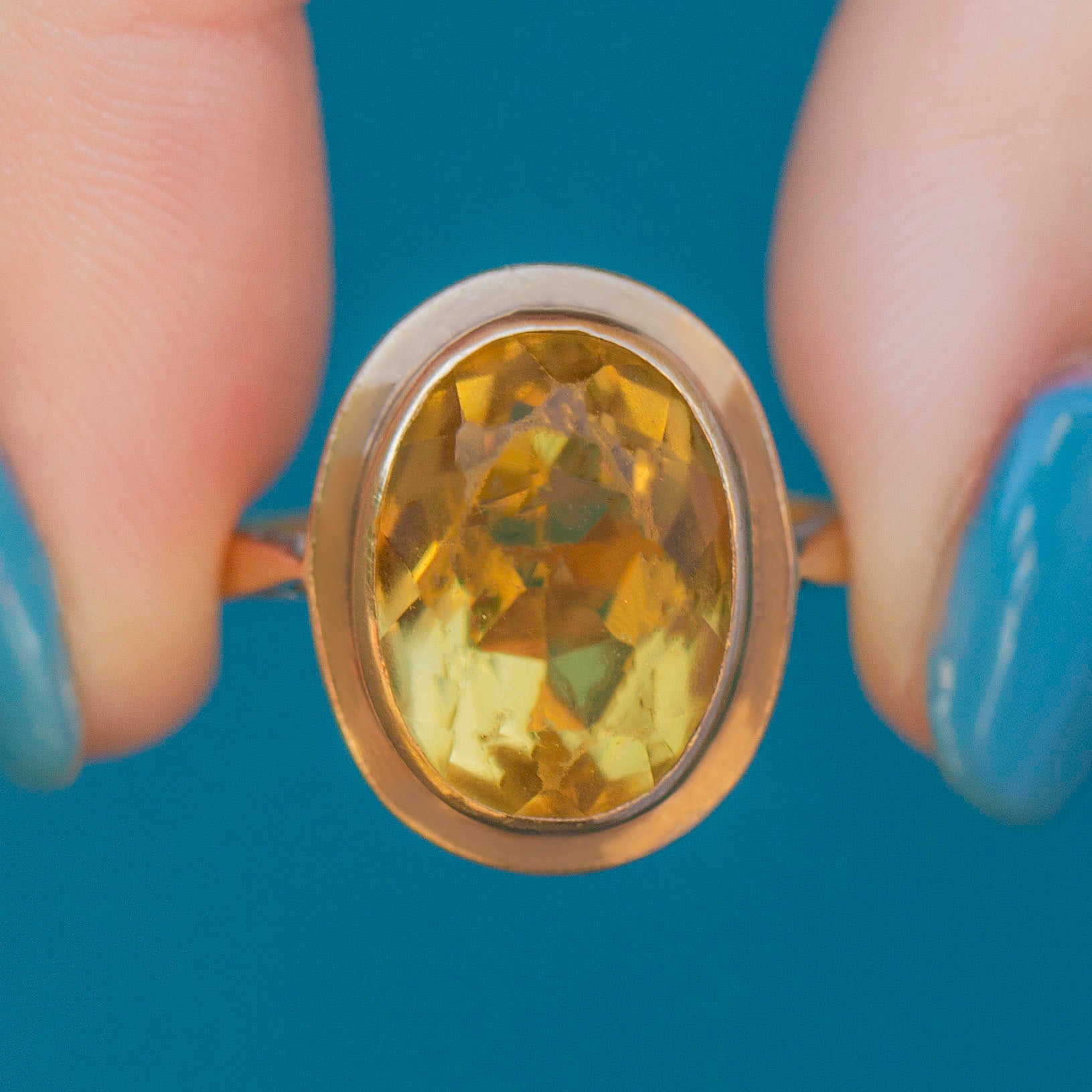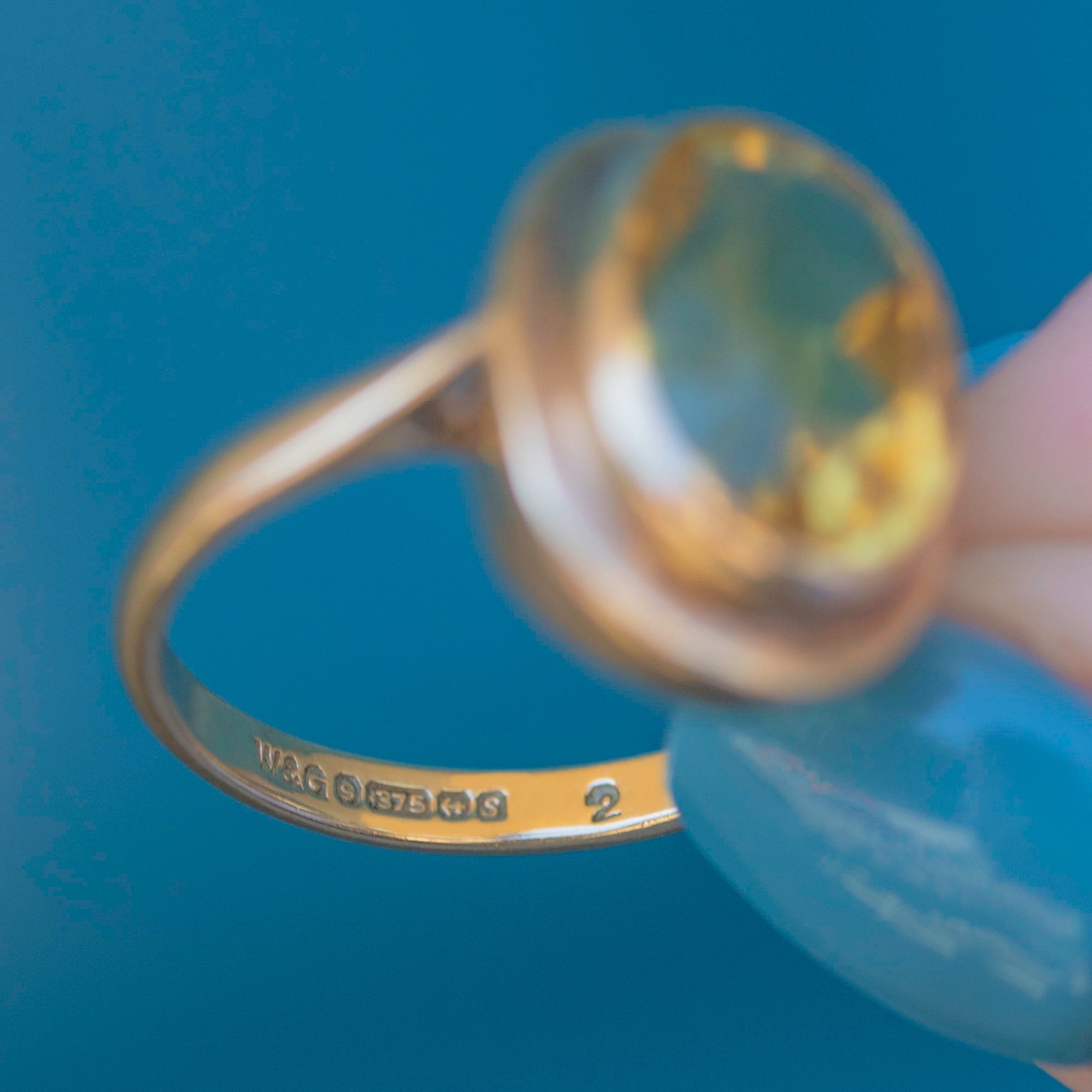 VERY GOOD This 9ct Gold Citrine Cocktail Ring is in a very good condition. Her sumptuous Citrine is beautifully faceted and sits securely in her setting, with only a small very slight scuff that is barely visible to the naked eye. Her 9ct Gold band has clear hallmarks and minimal signs of wear, meaning she can be worn and adored for many years to come!