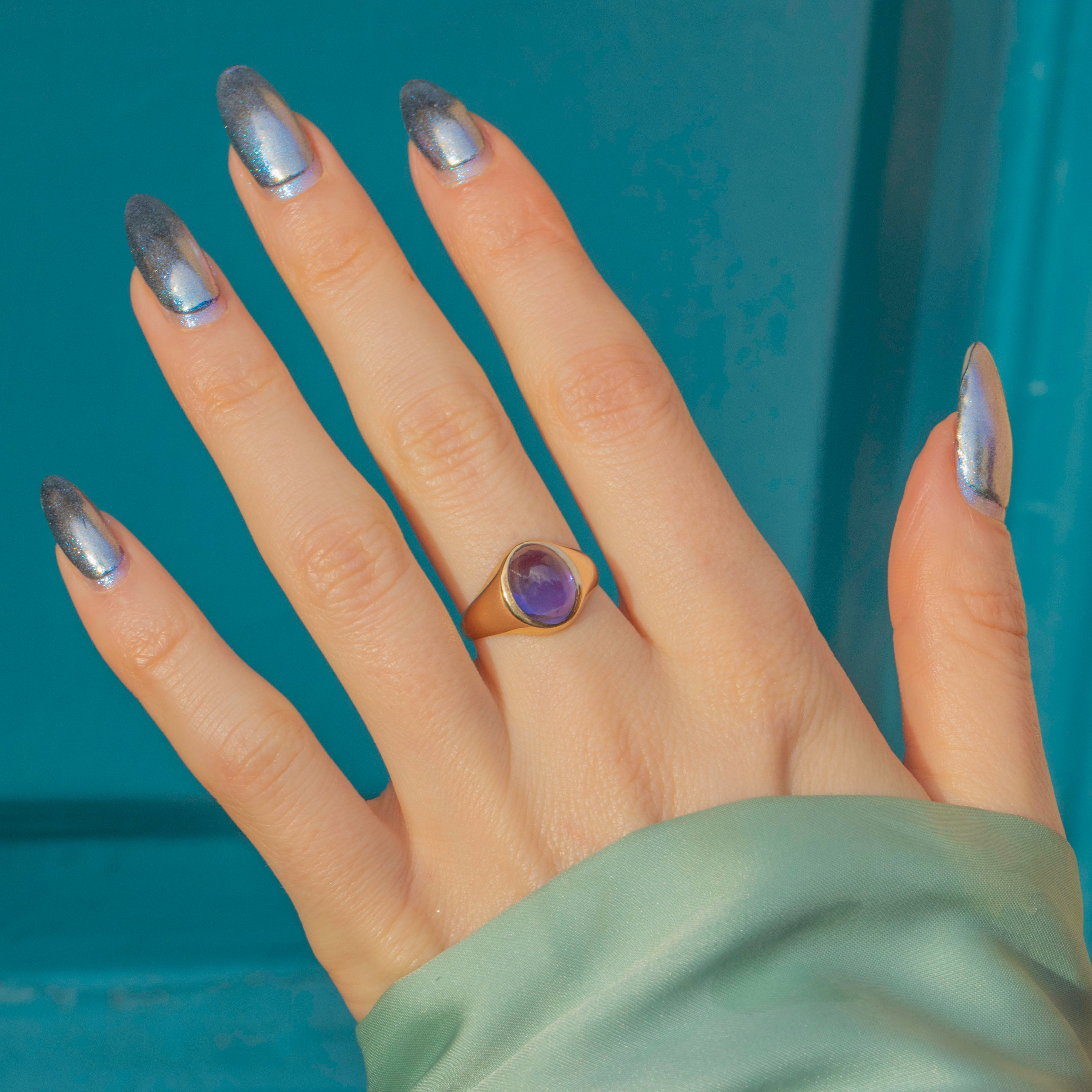 9ct Gold. Purple Sapphire Cabochon Ring, 3.20ct