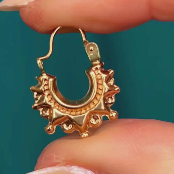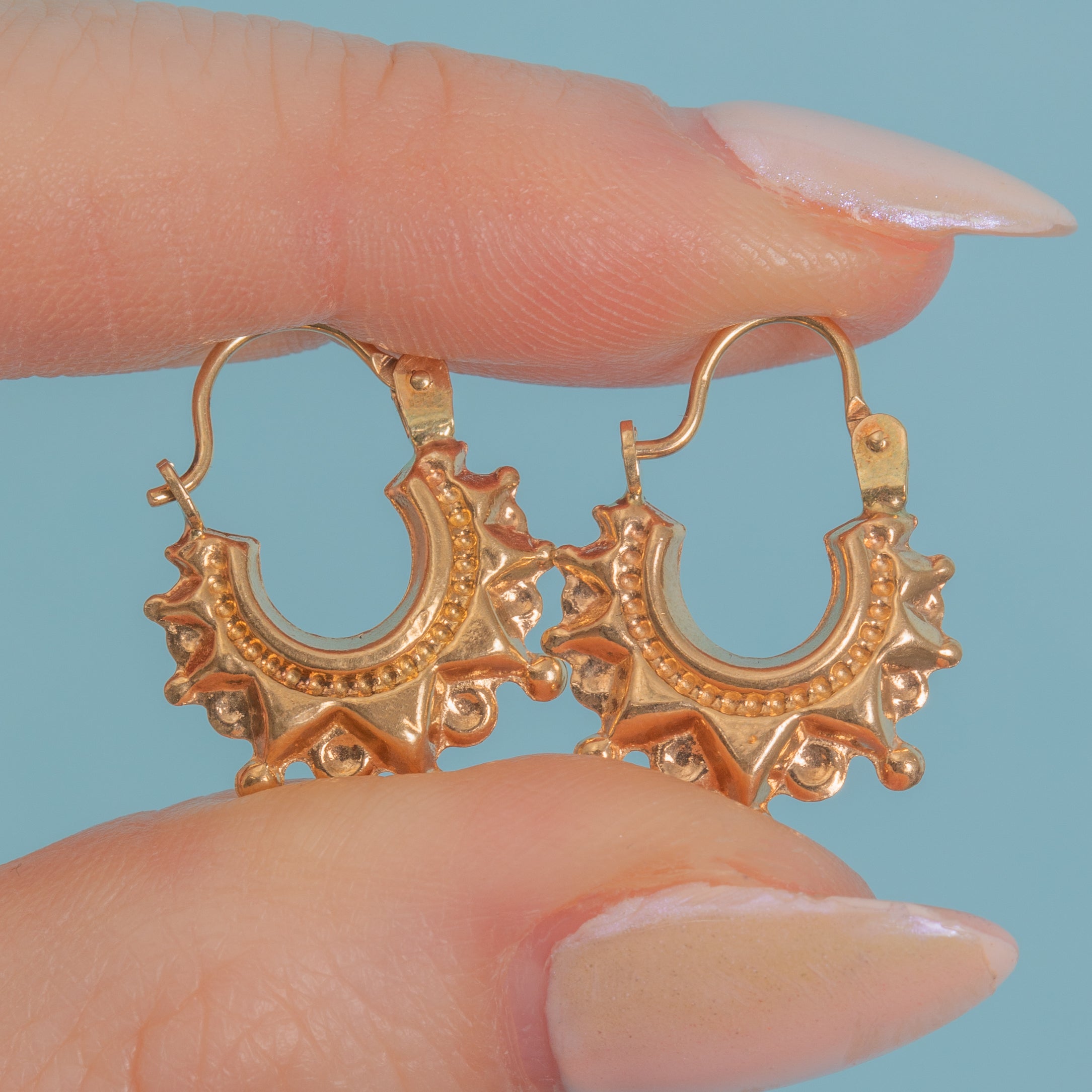 EXCELLENT. These 9ct Gold Creole huggie hoop earrings are in excellent condition. The Gold is buttery throughout and the details have remained defined. The levers are in perfect working condition, allowing you to wear these vintage Creole earrings with confidence!