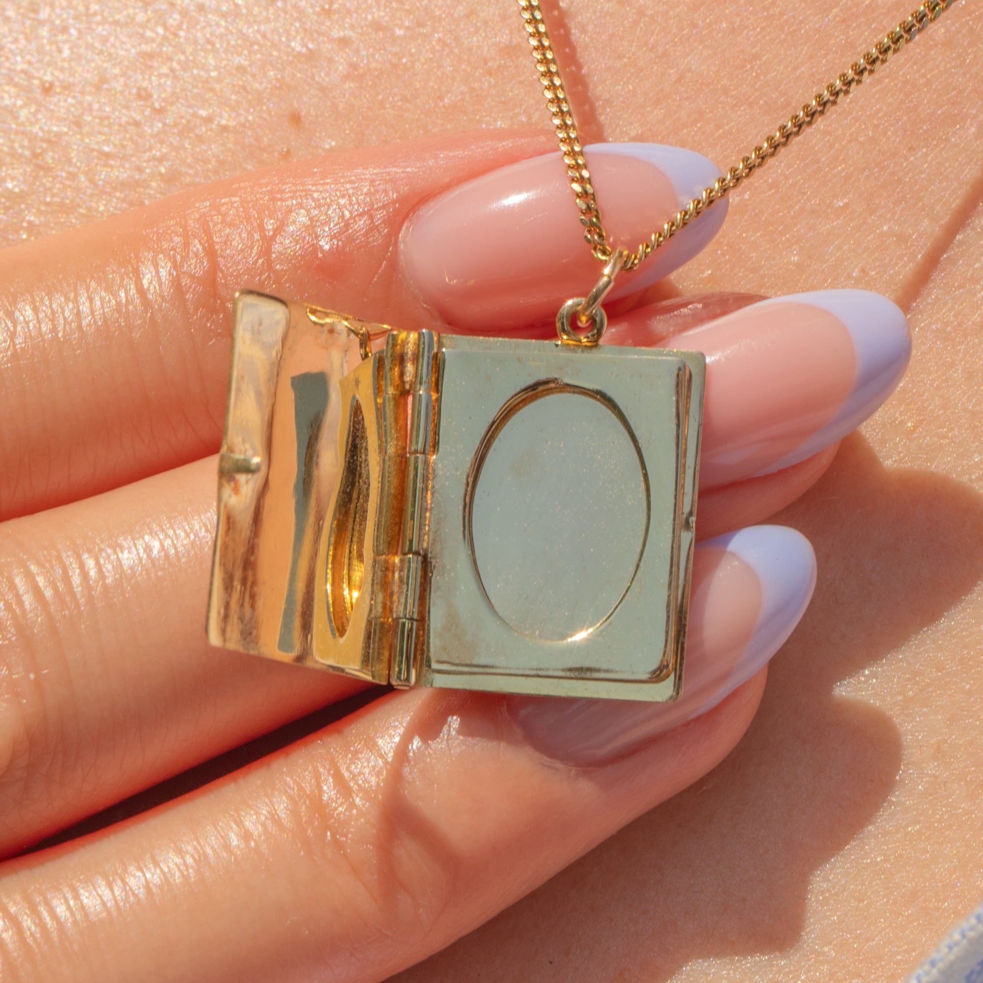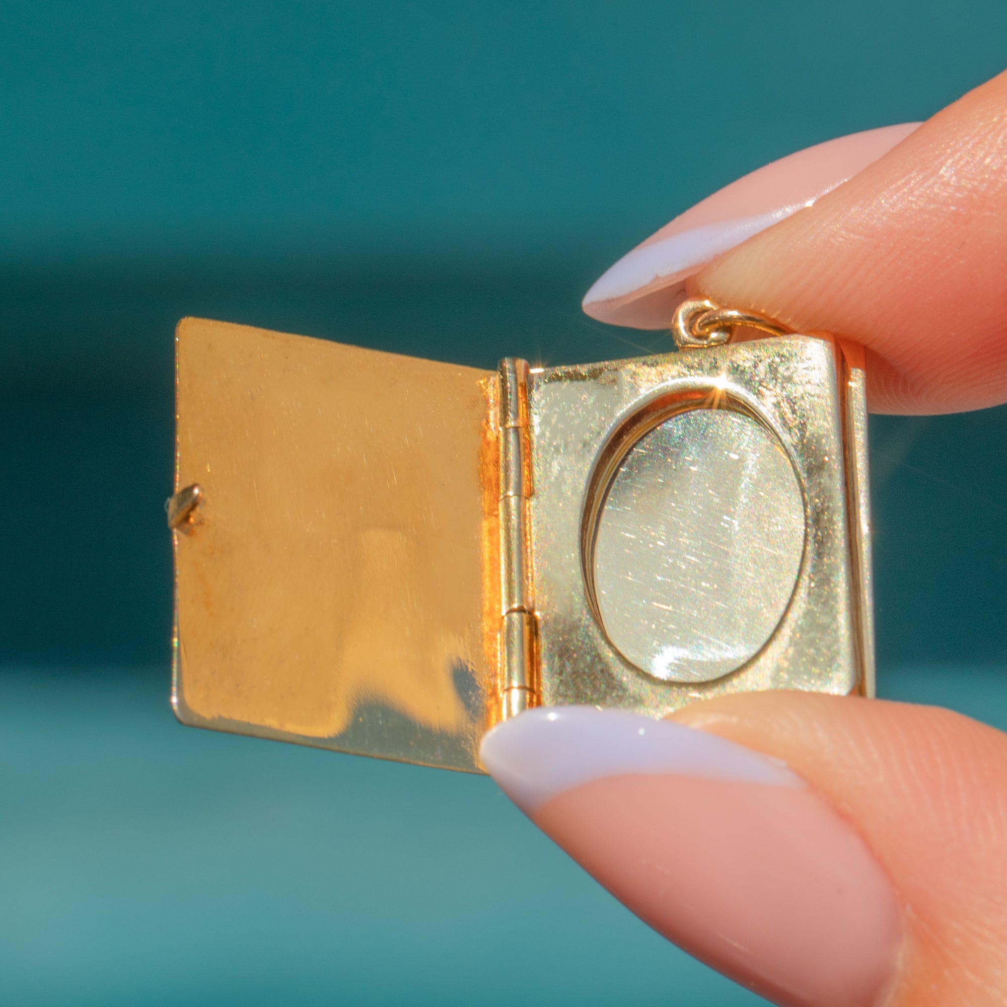 The locket opens to reveal a page in the middle with space for two photographs to be added. Whether a gift for a book lover or you simply love unique treasures, this whimsical mid-century locket will make an enchanting addition to any collection!
