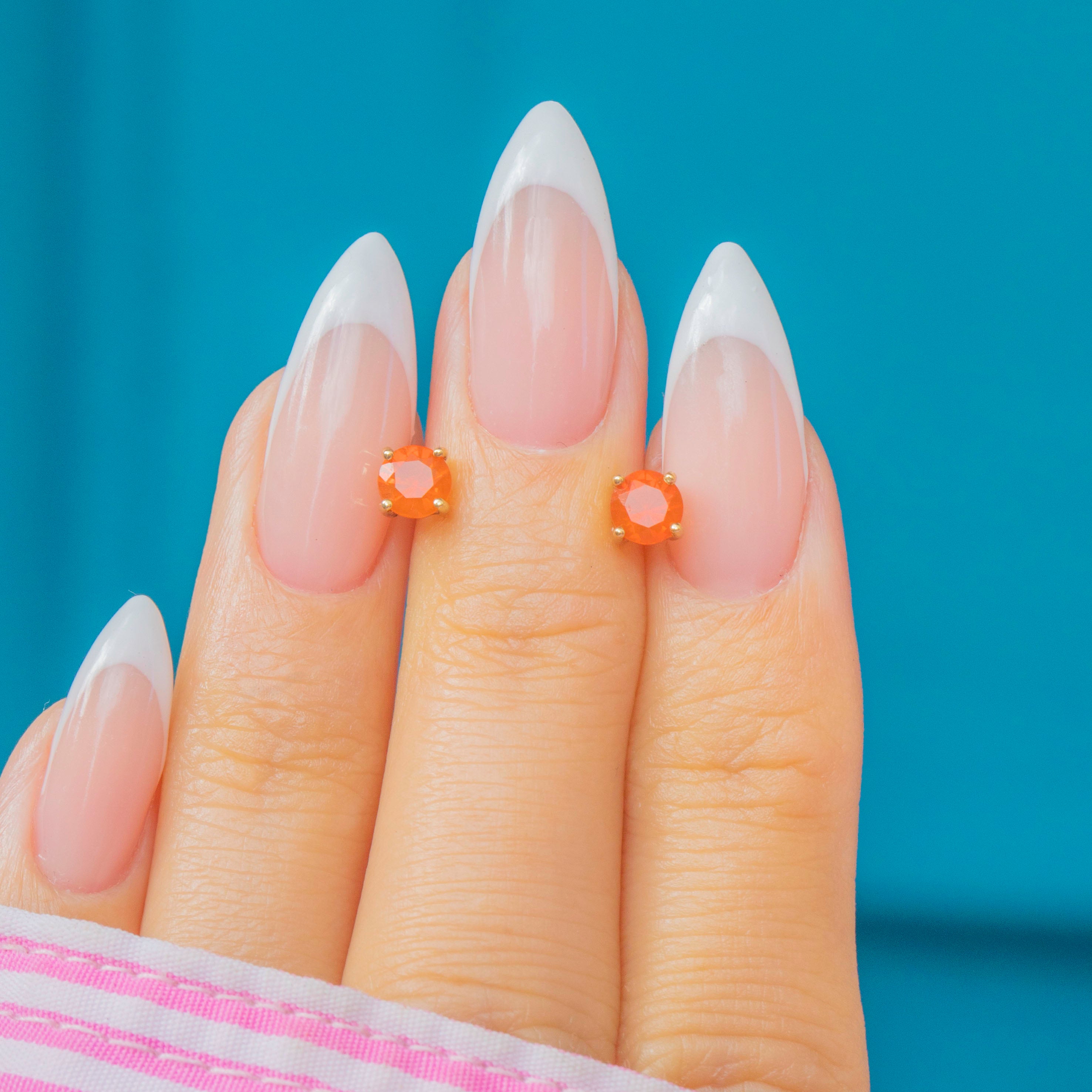 Fiery yet elegant, these studs are perfect for adding a pop of colour to everyday looks or as a joyful finishing touch to evening attire.