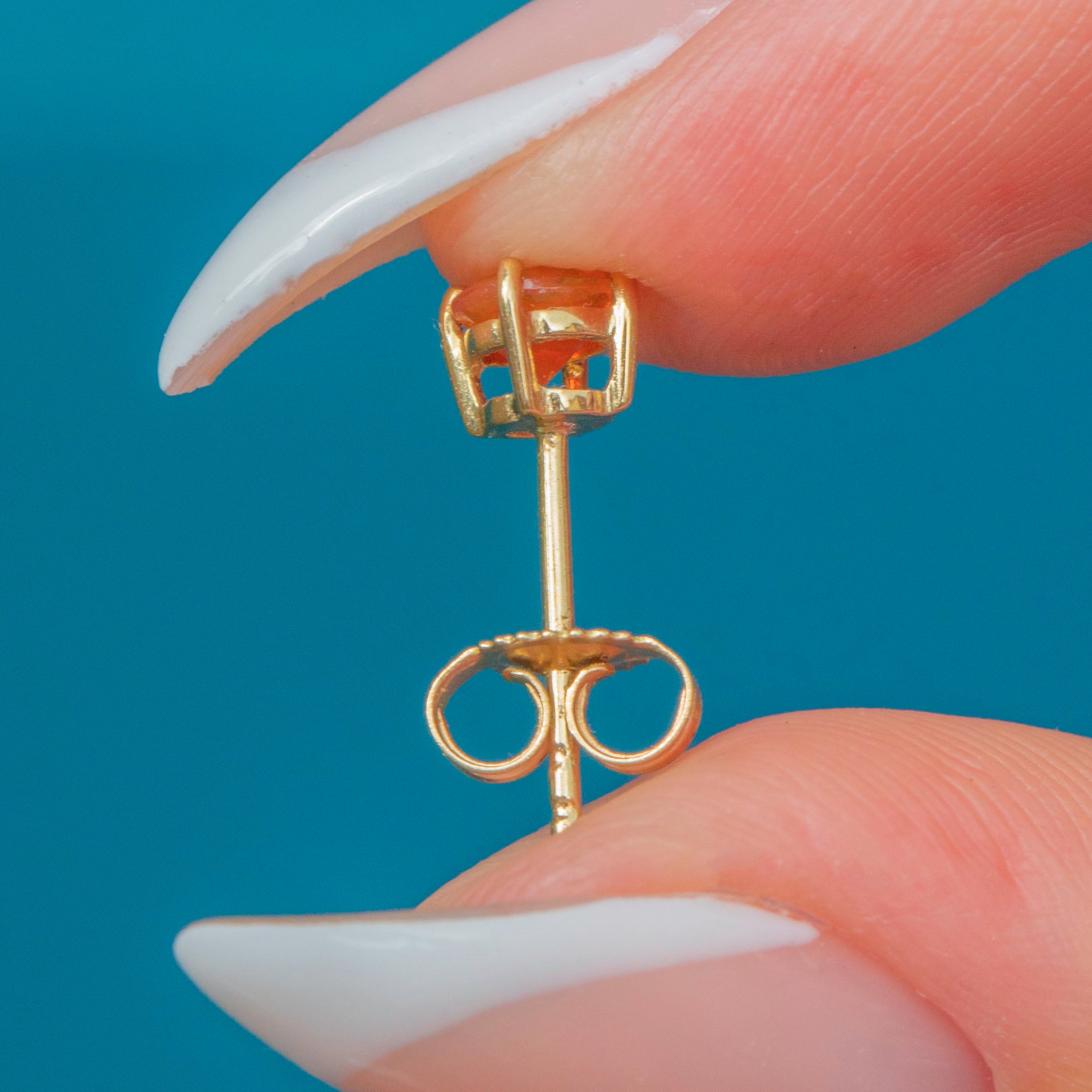 EXCELLENT: These Fire Opal earrings are in excellent condition. The Opals are secure, free from chips or abrasions, and display vivid colour throughout. The Gold settings and posts remain sturdy with minimal signs of wear.