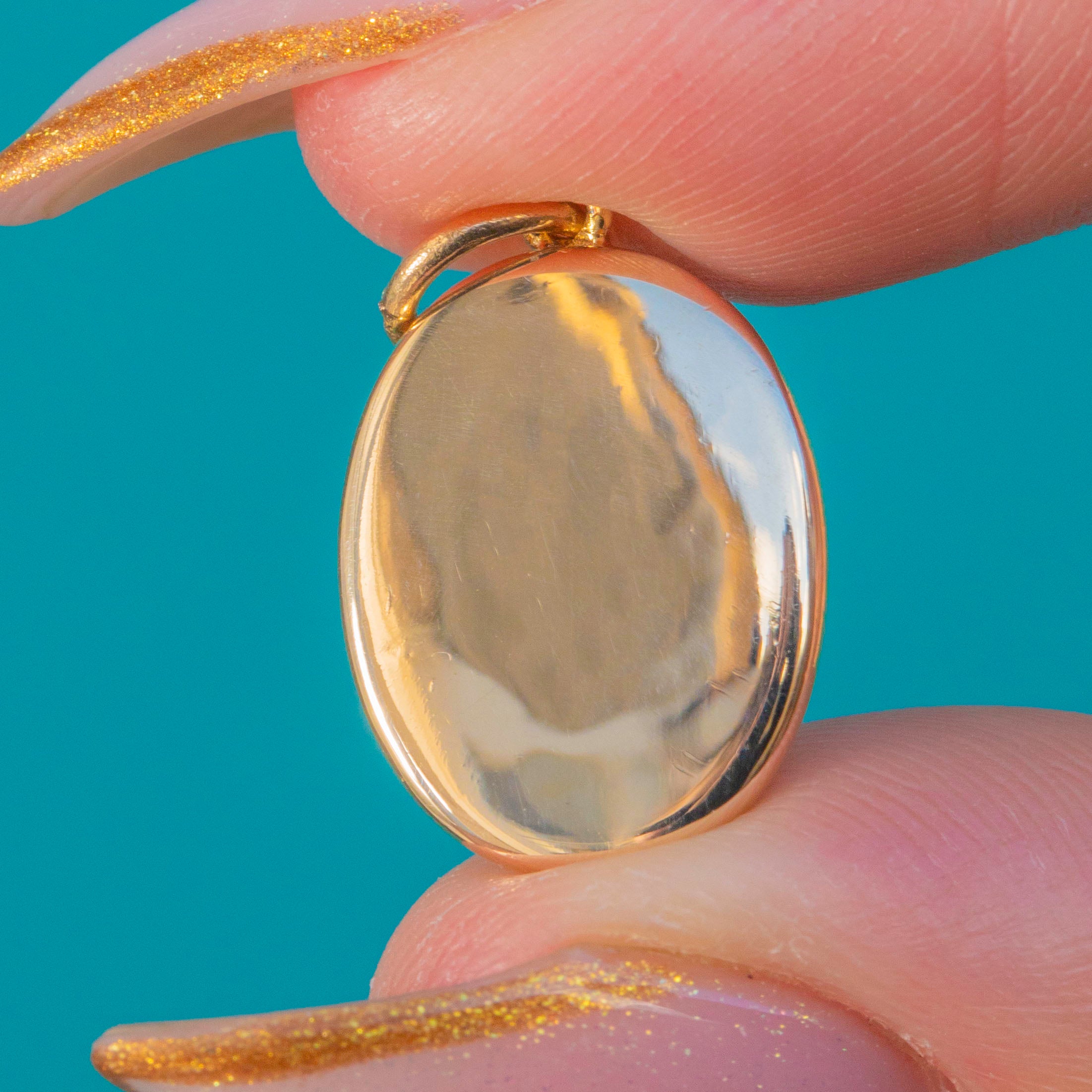 This vintage 9ct Gold charm showcases a luscious Garnet cabochon flashing rich shades of berry-red, magenta and plum. Beautifully domed with a glossy sheen, the cabochon glows with depth and warmth, catching the light with every movement.