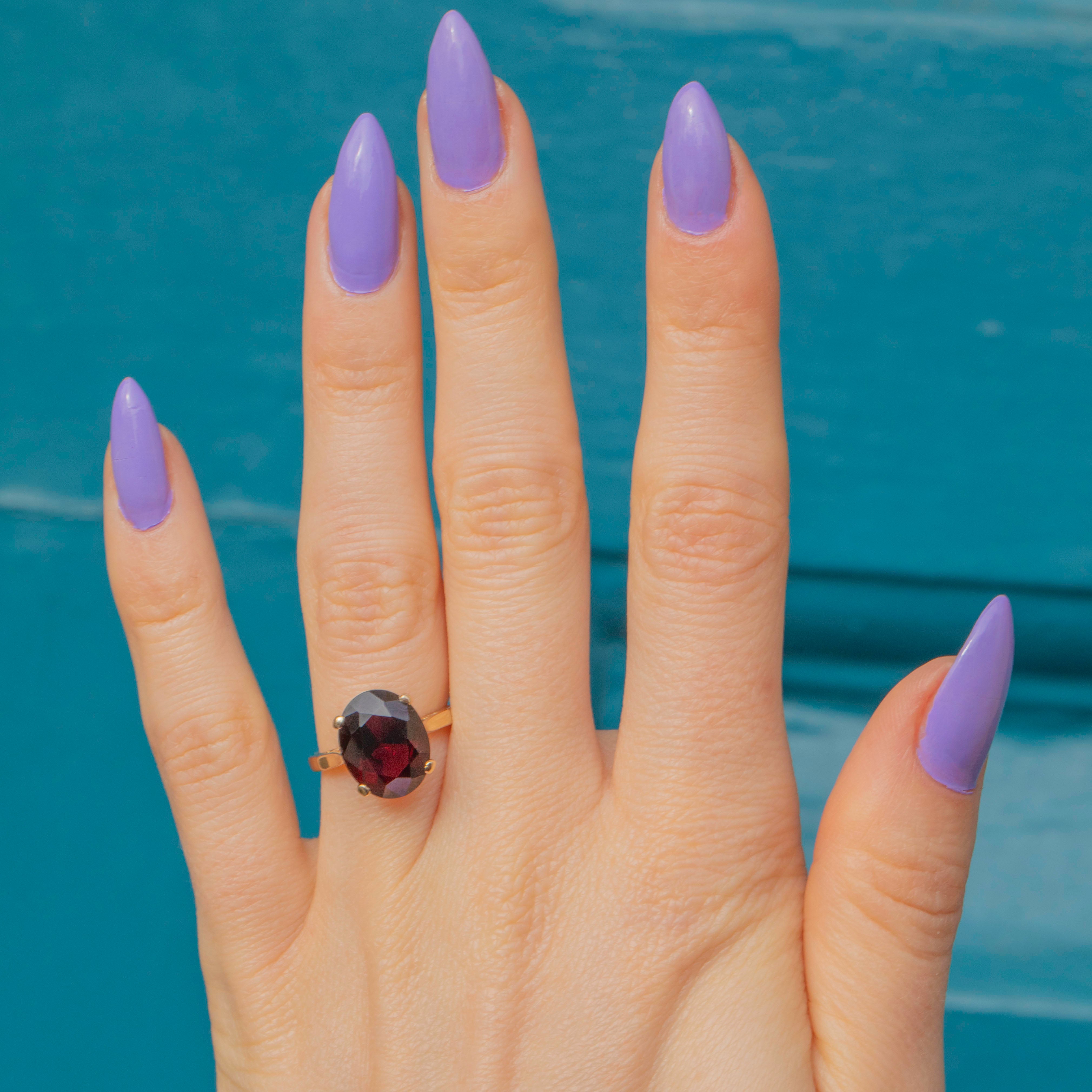Perfect as a statement piece or for everyday wear, this ring showcases the classic appeal of Garnet paired with a simple yet refined Gold setting.