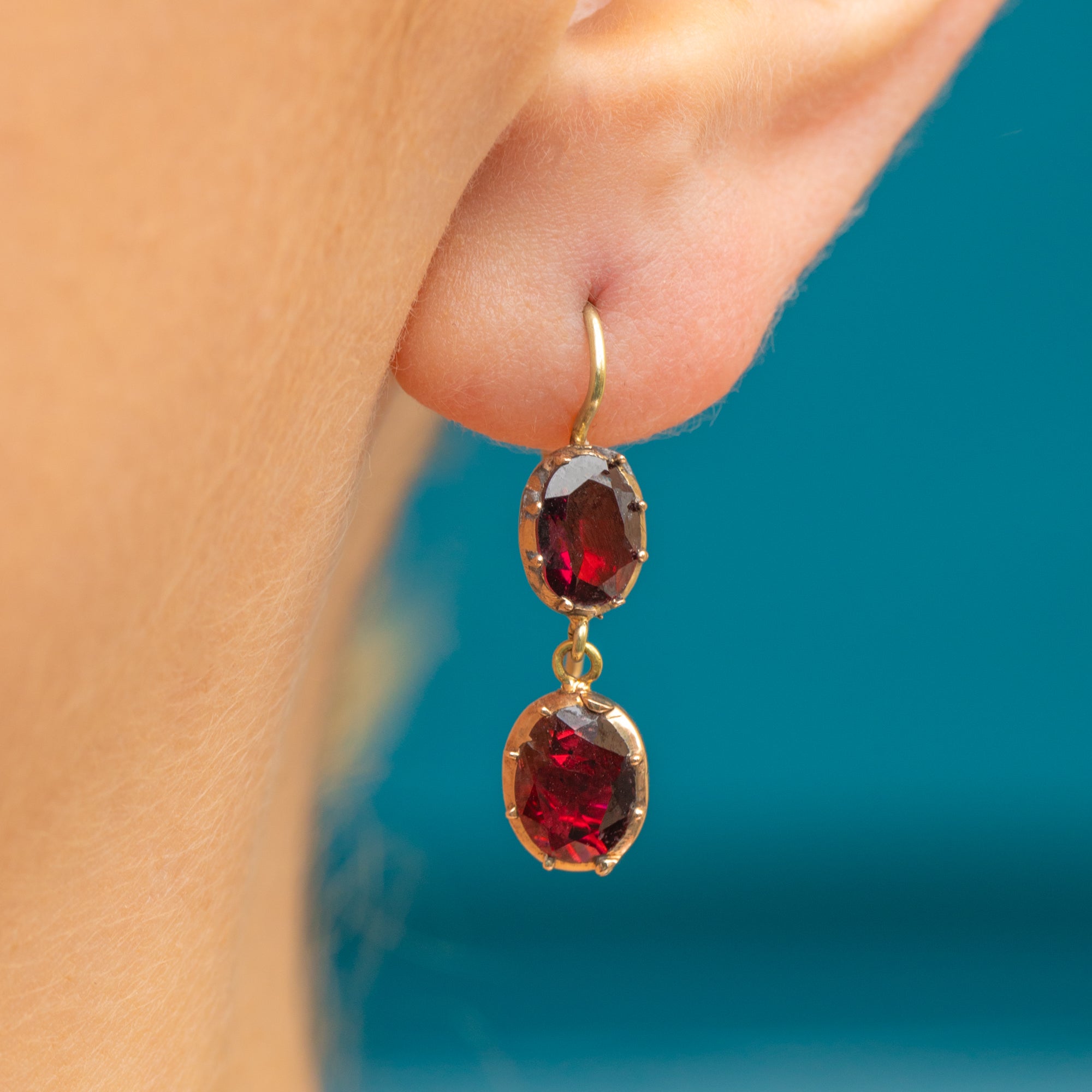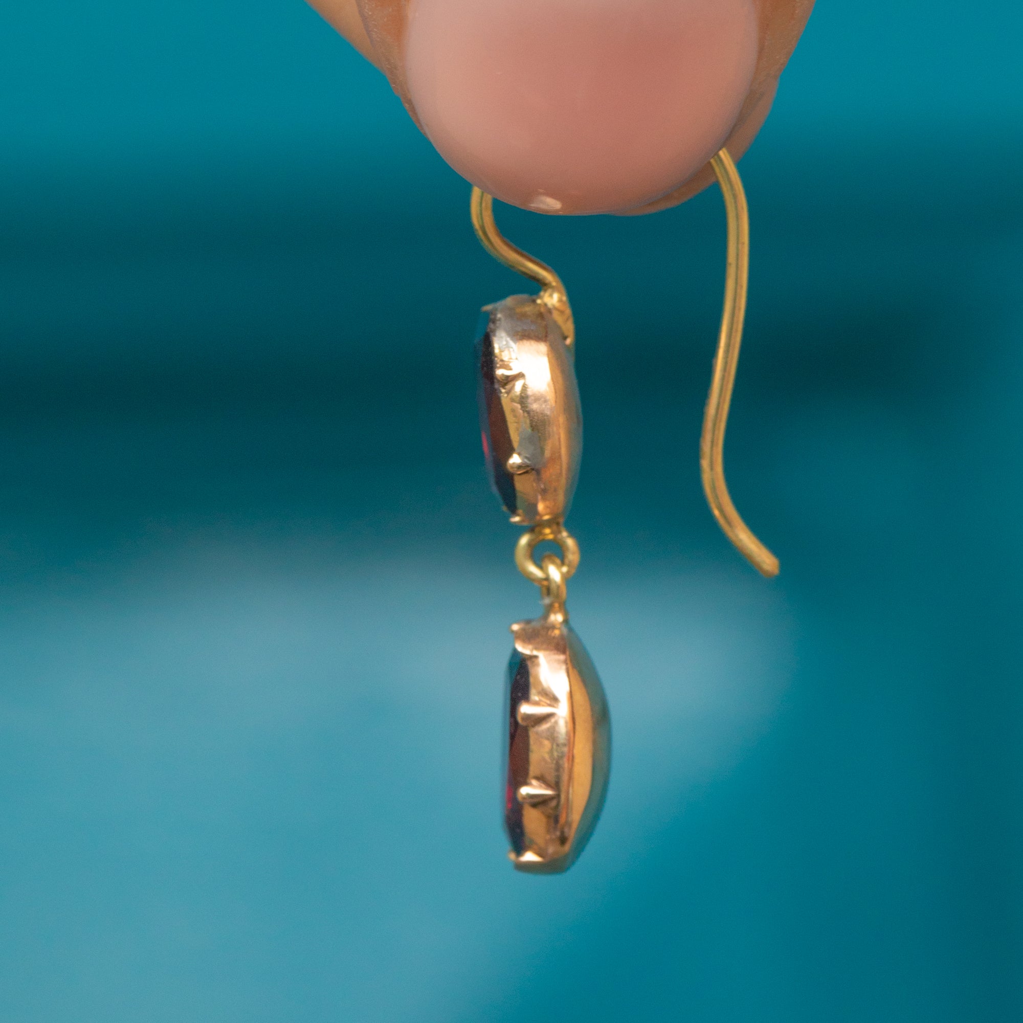 9ct Gold Georgian Flat-Cut Garnet Drop Earrings, 15ct Hooks